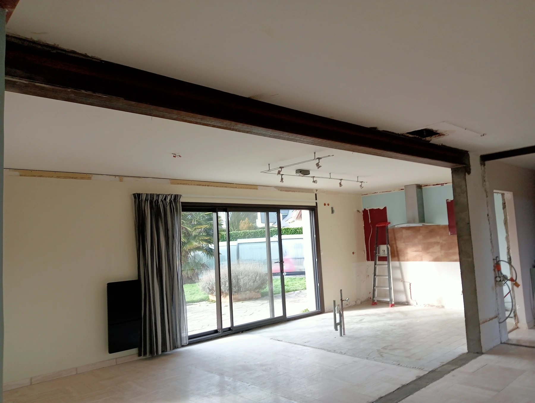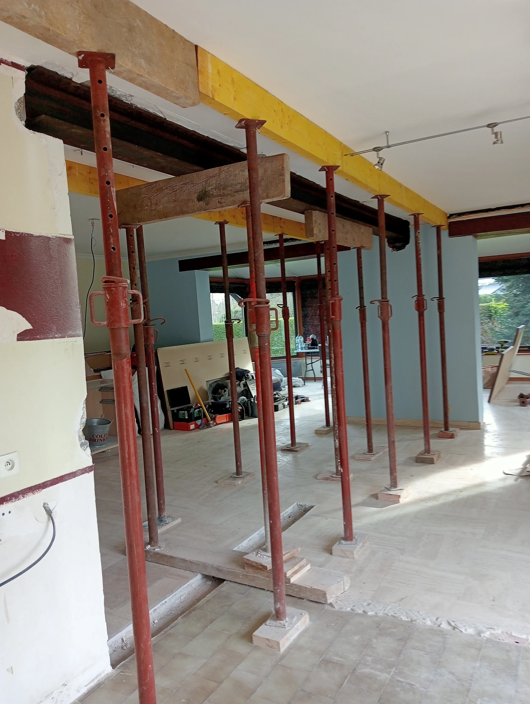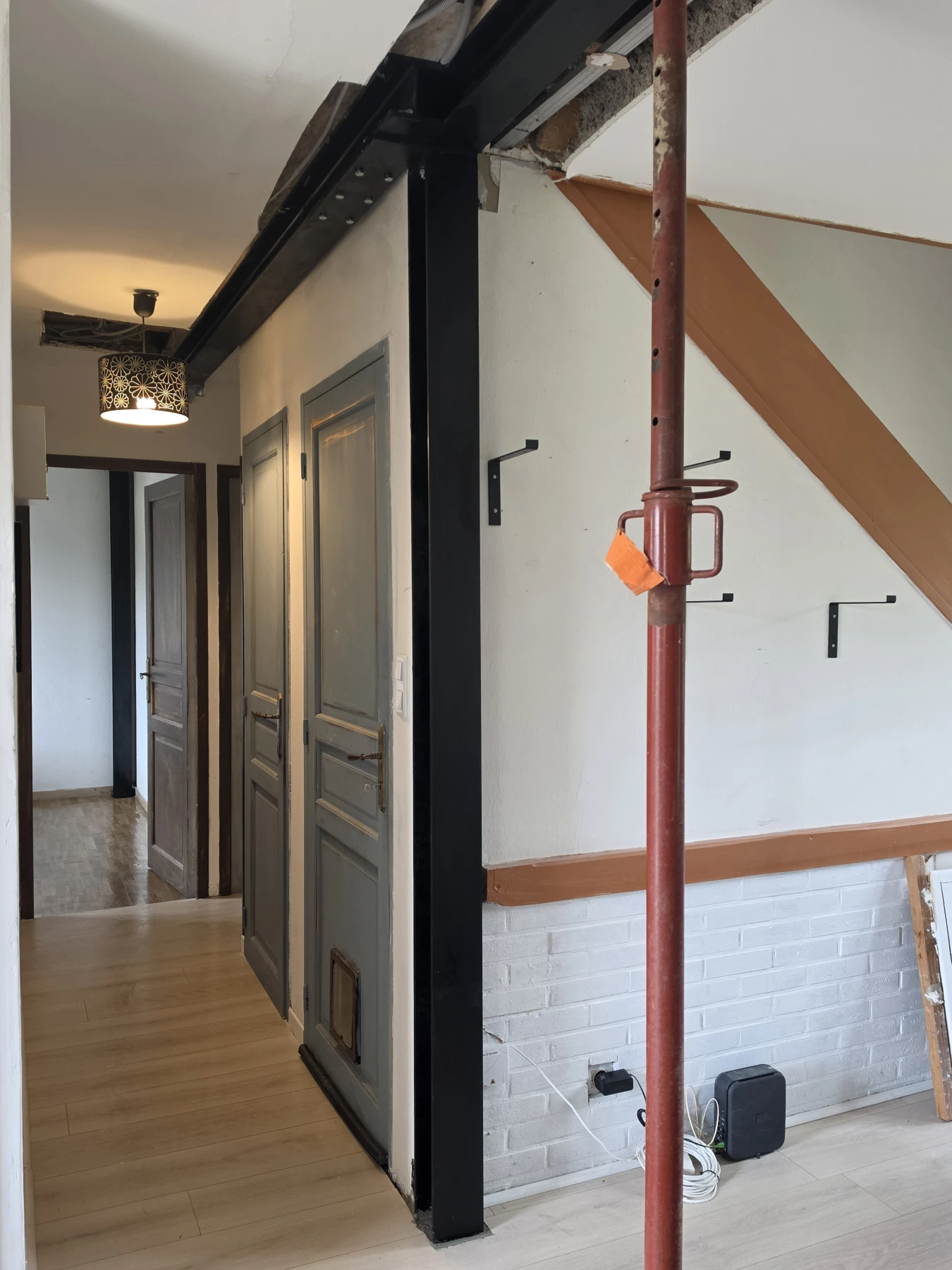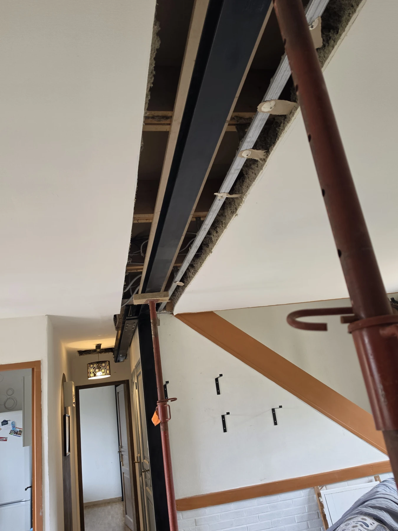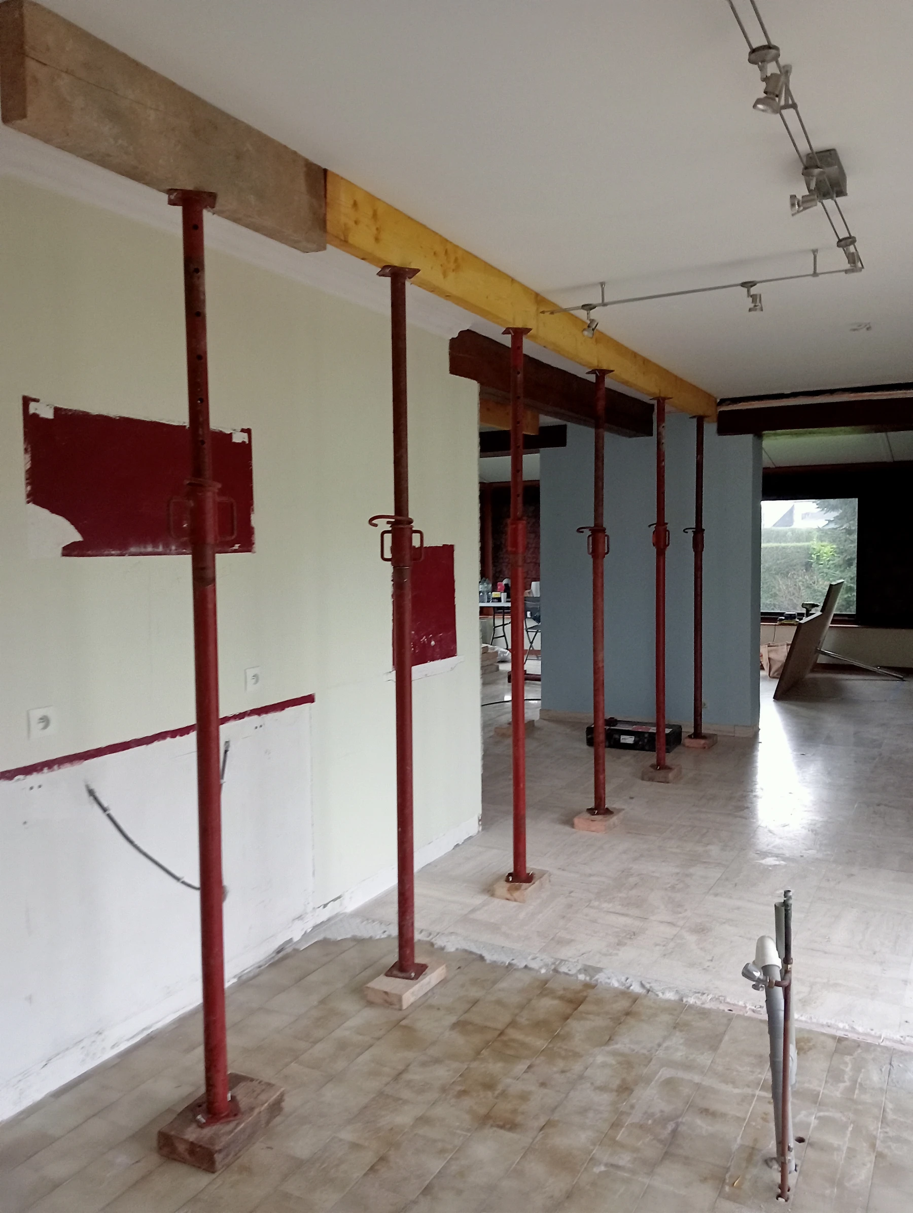 Dépose d'une poutre en bois dans un conduit de cheminée pour la remplacer par un IPN chantier secteur Auzouville l'éneval 76760