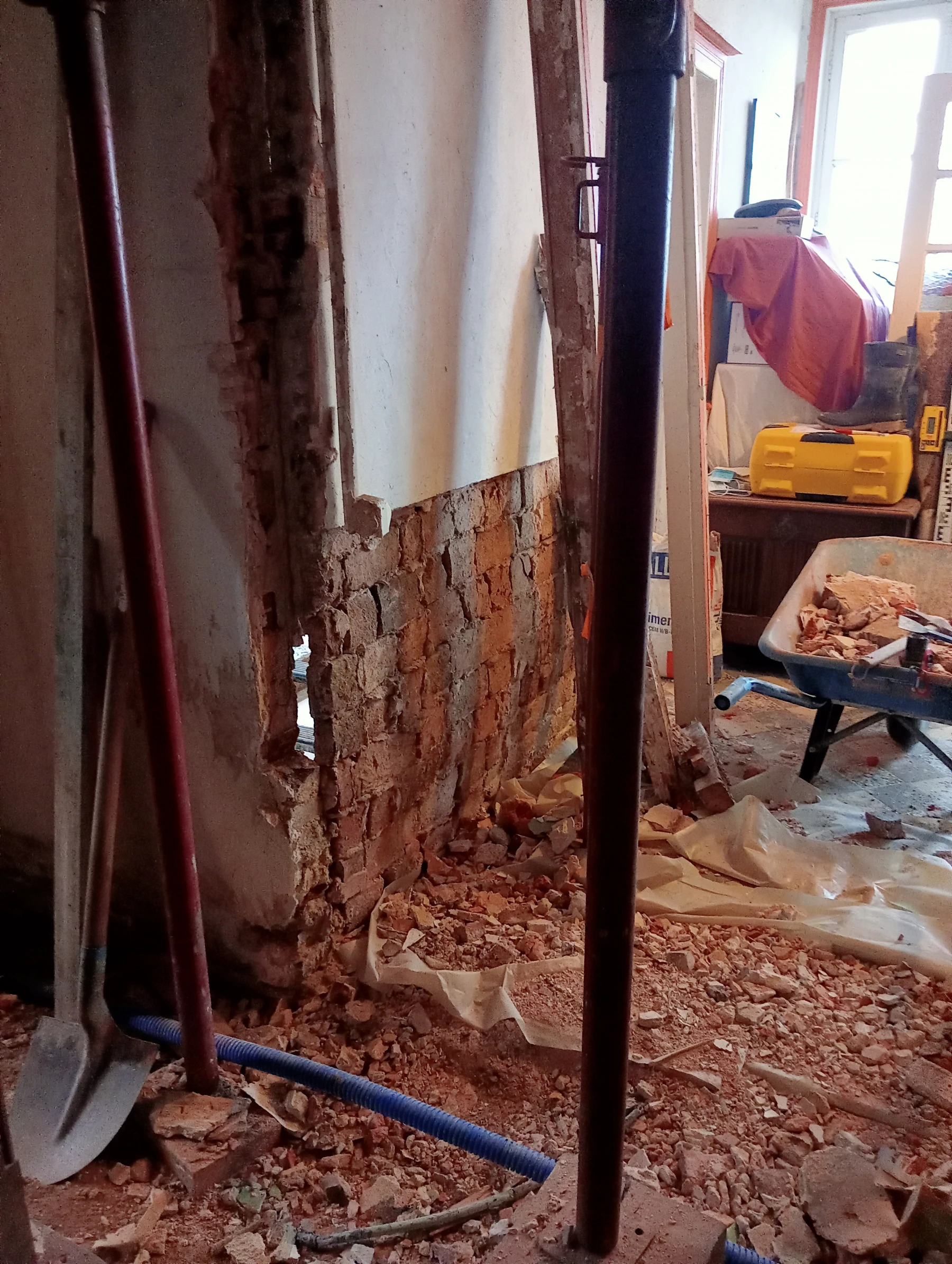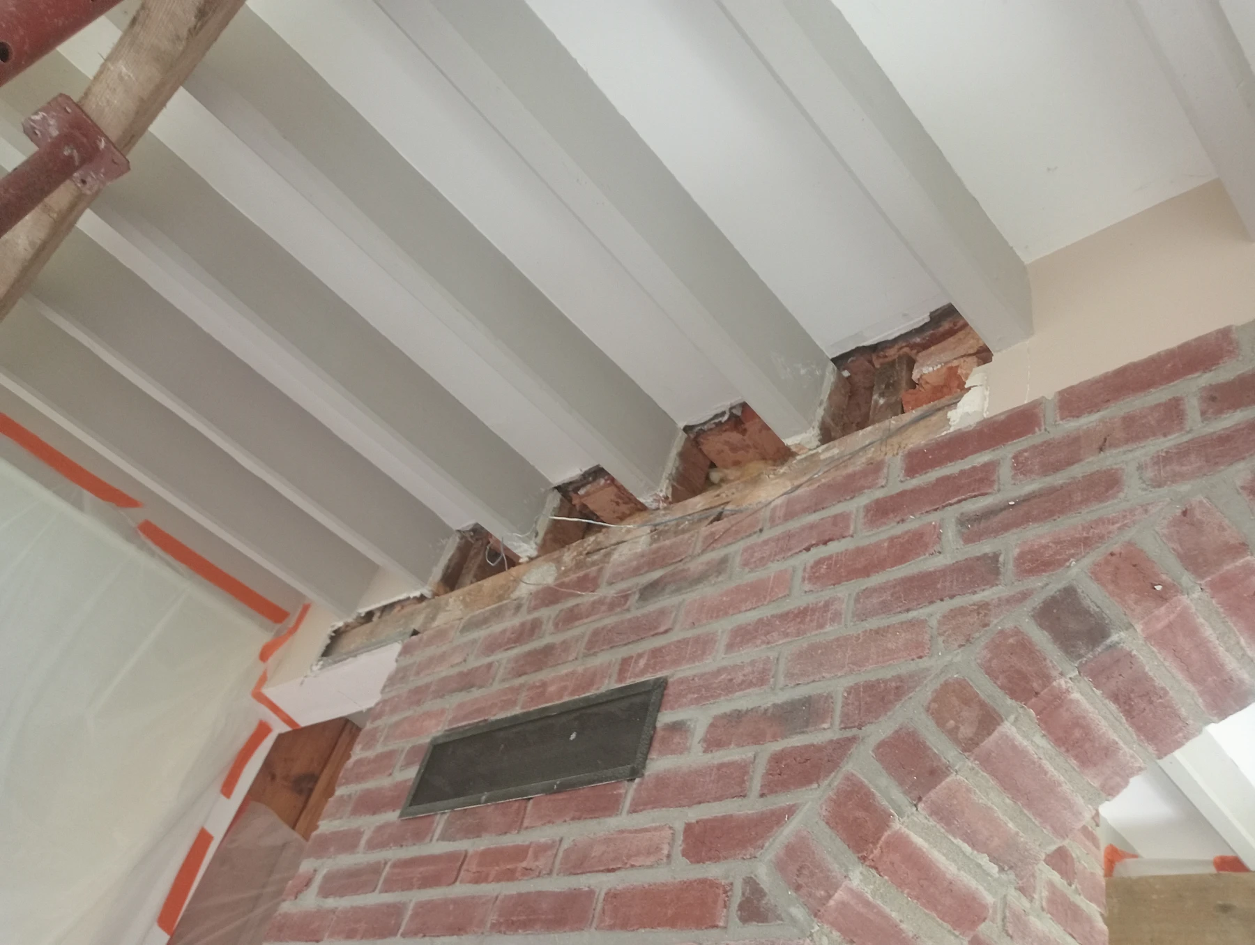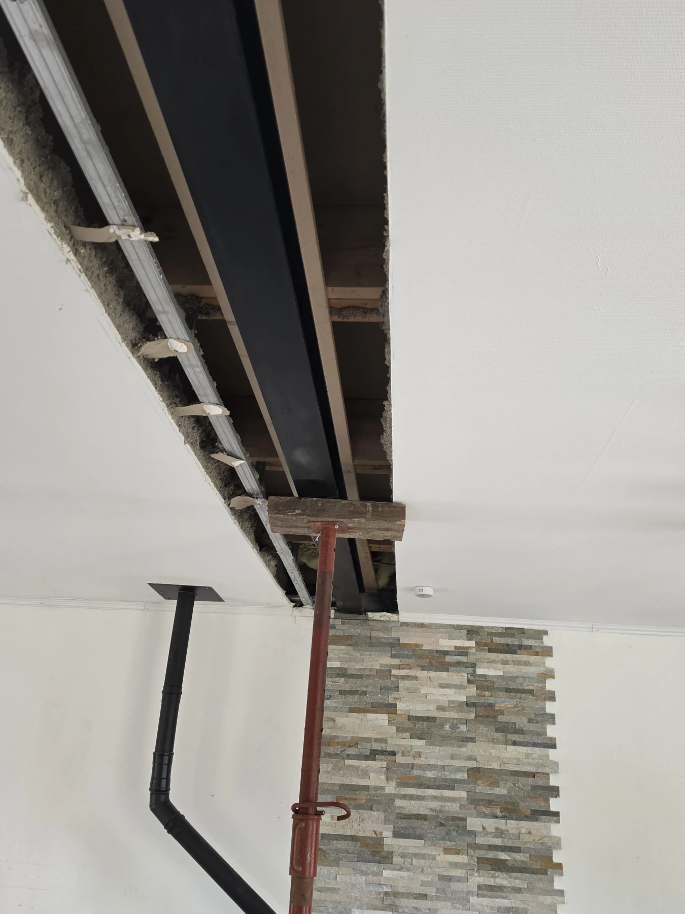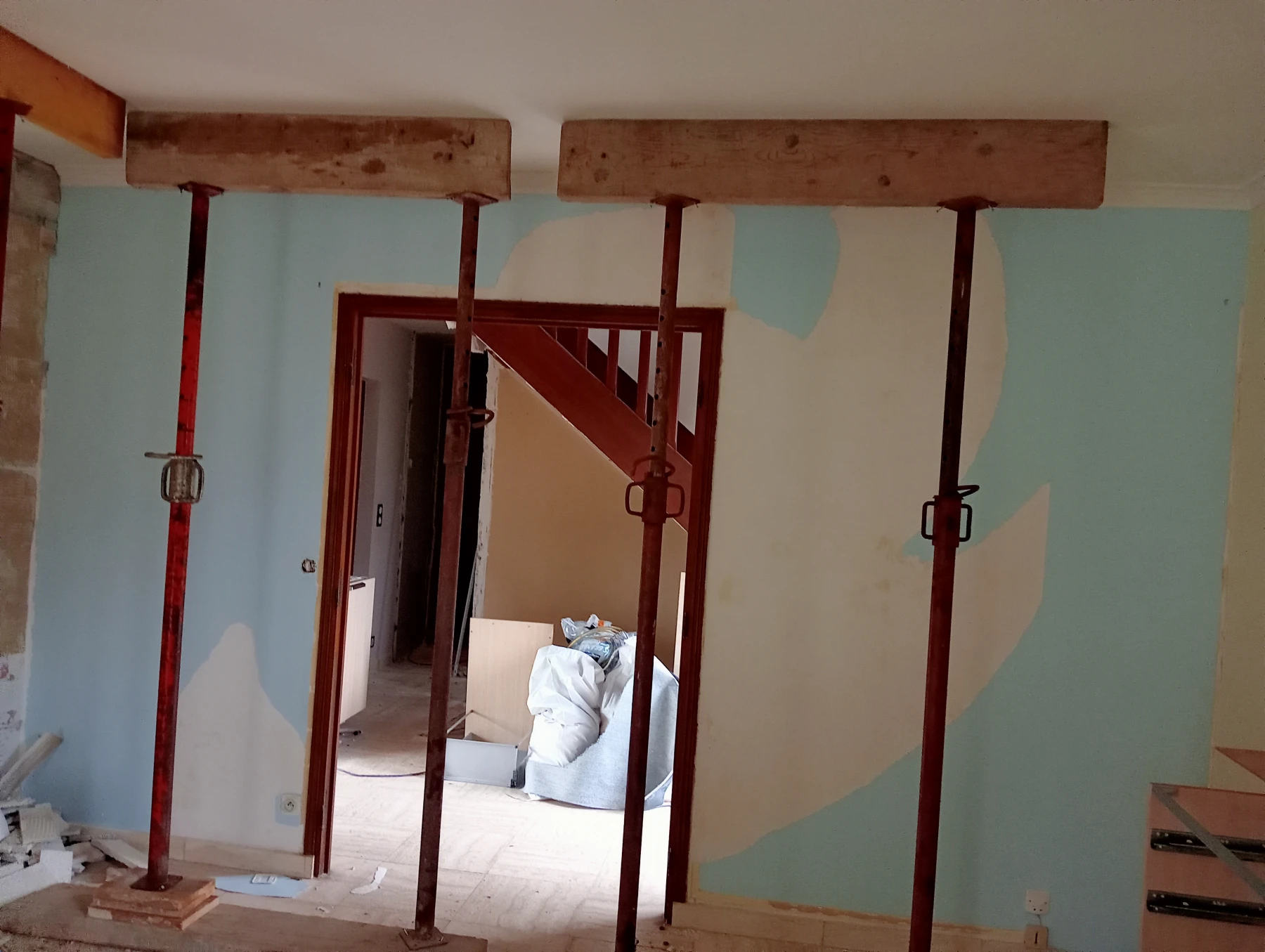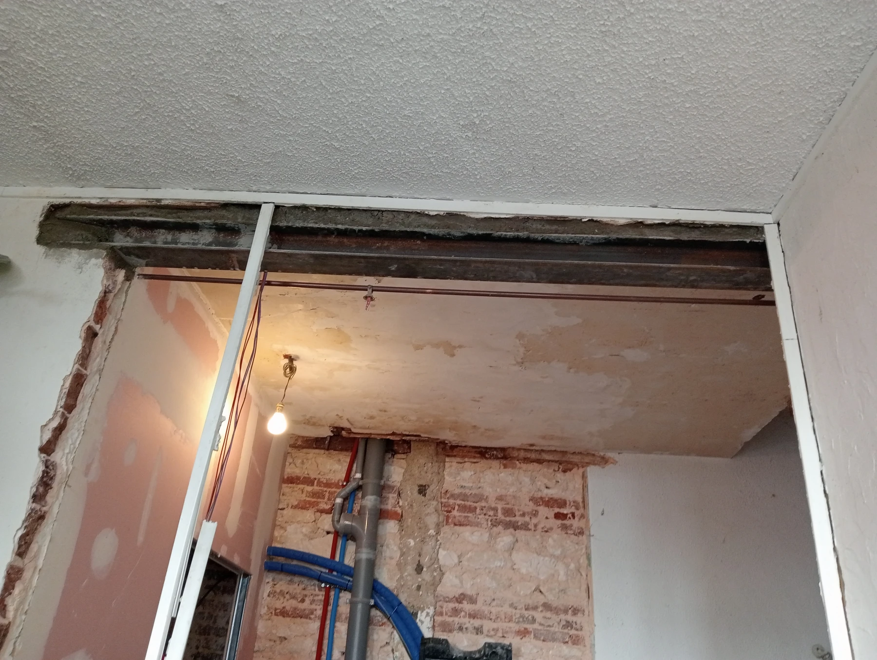 Dépose d'une poutre en bois dans un conduit de cheminée pour la remplacer par un IPN chantier secteur Auzouville l'éneval 76760