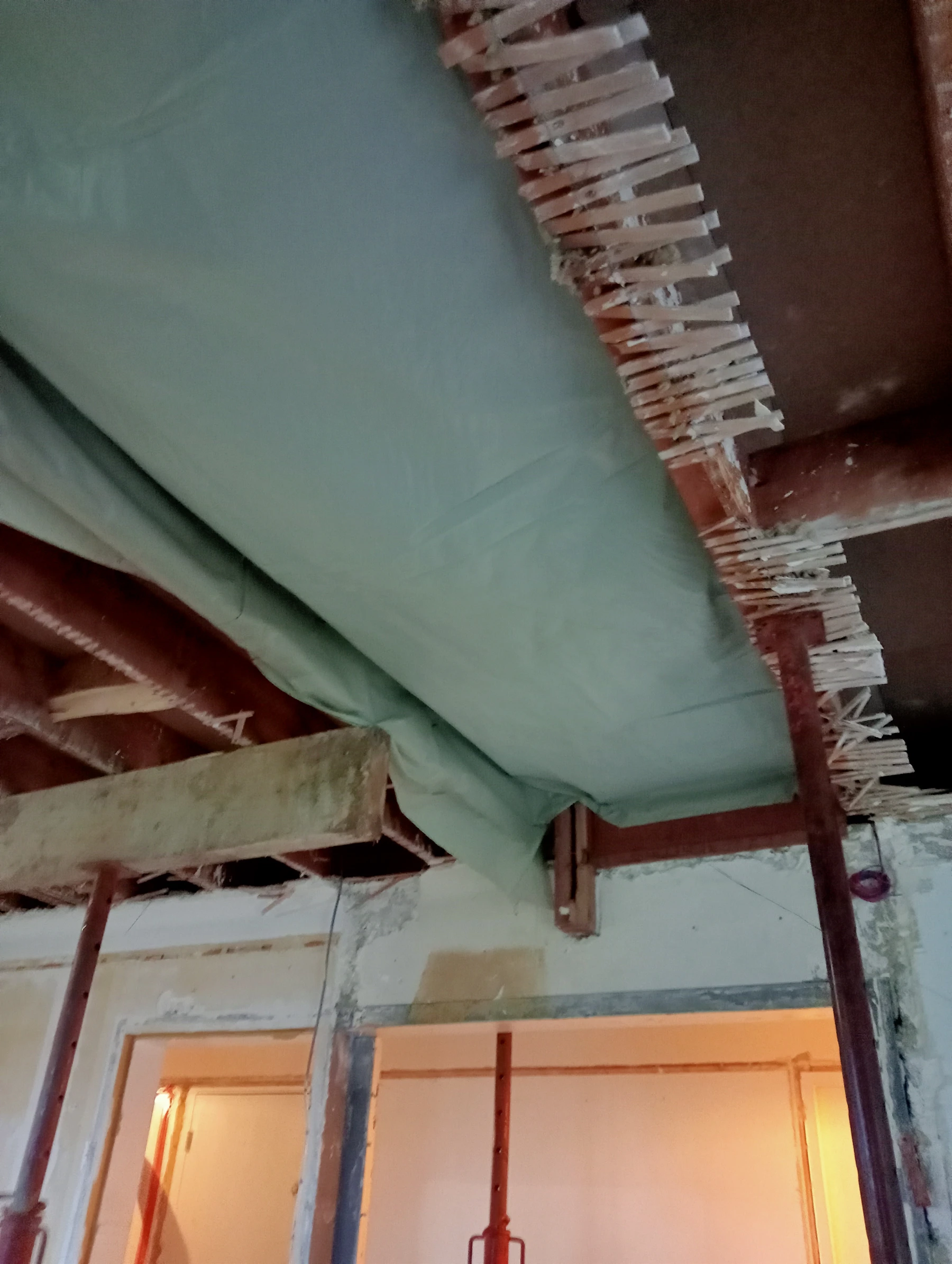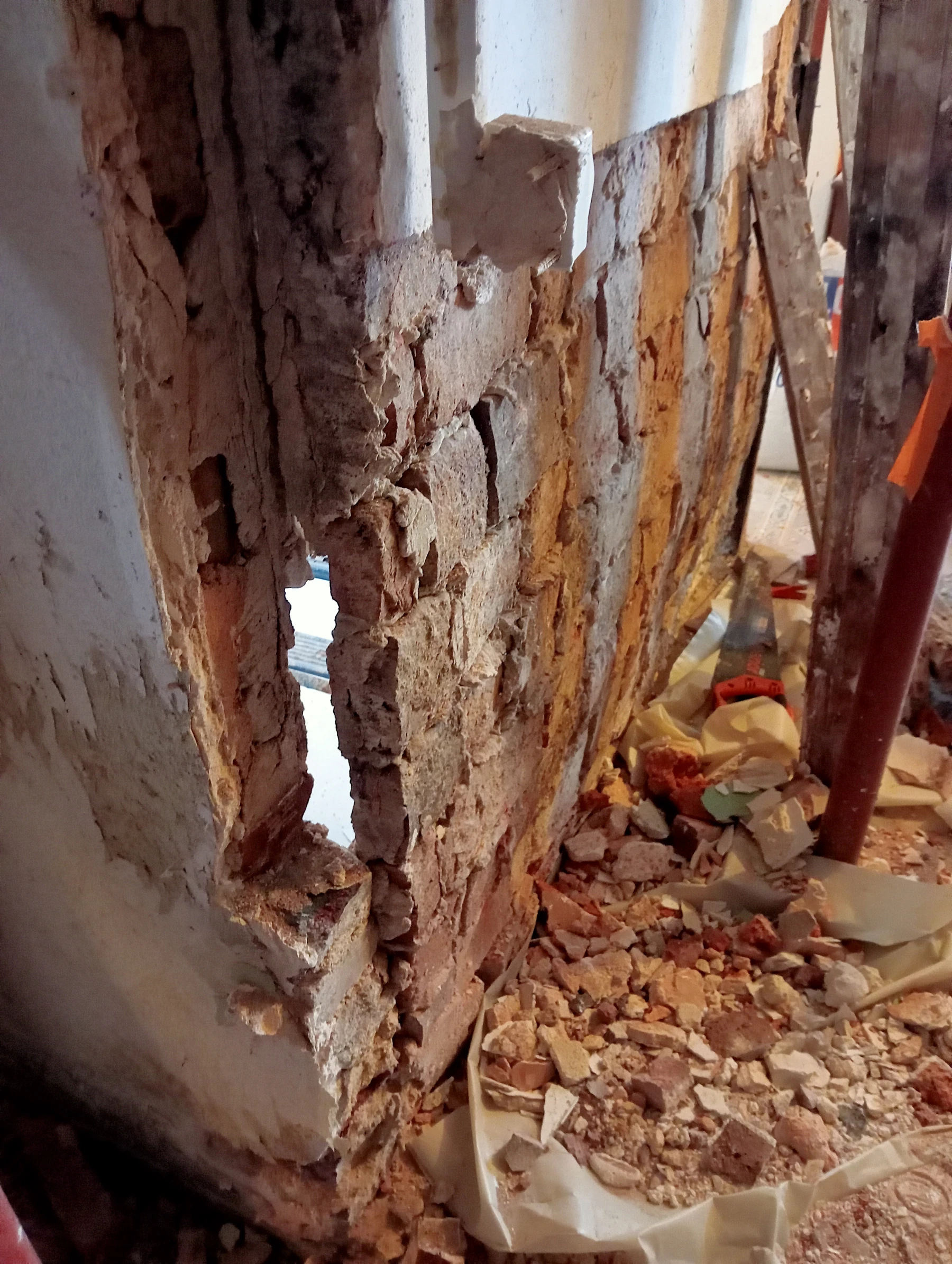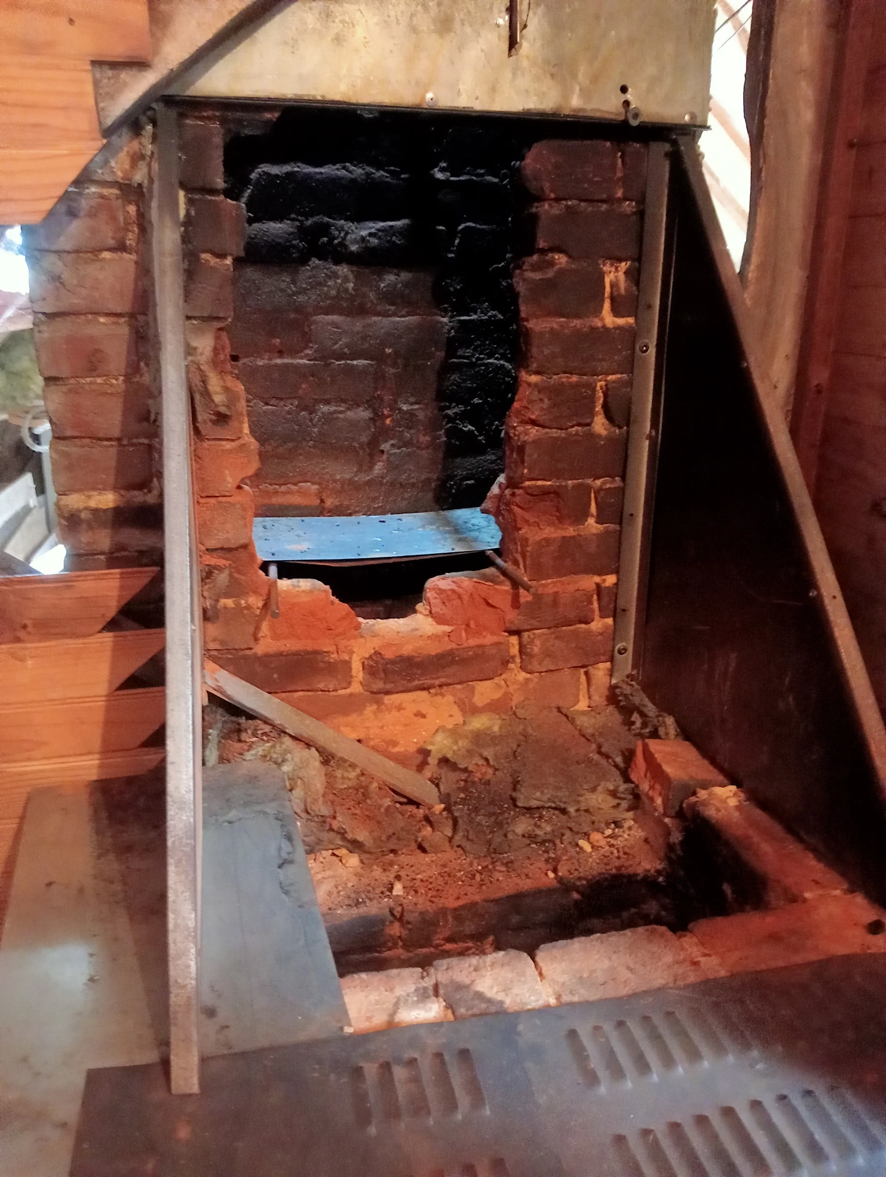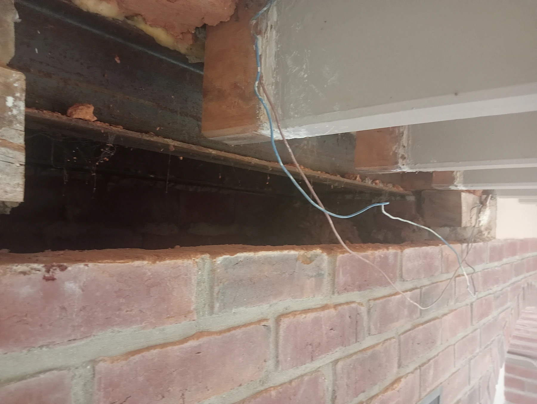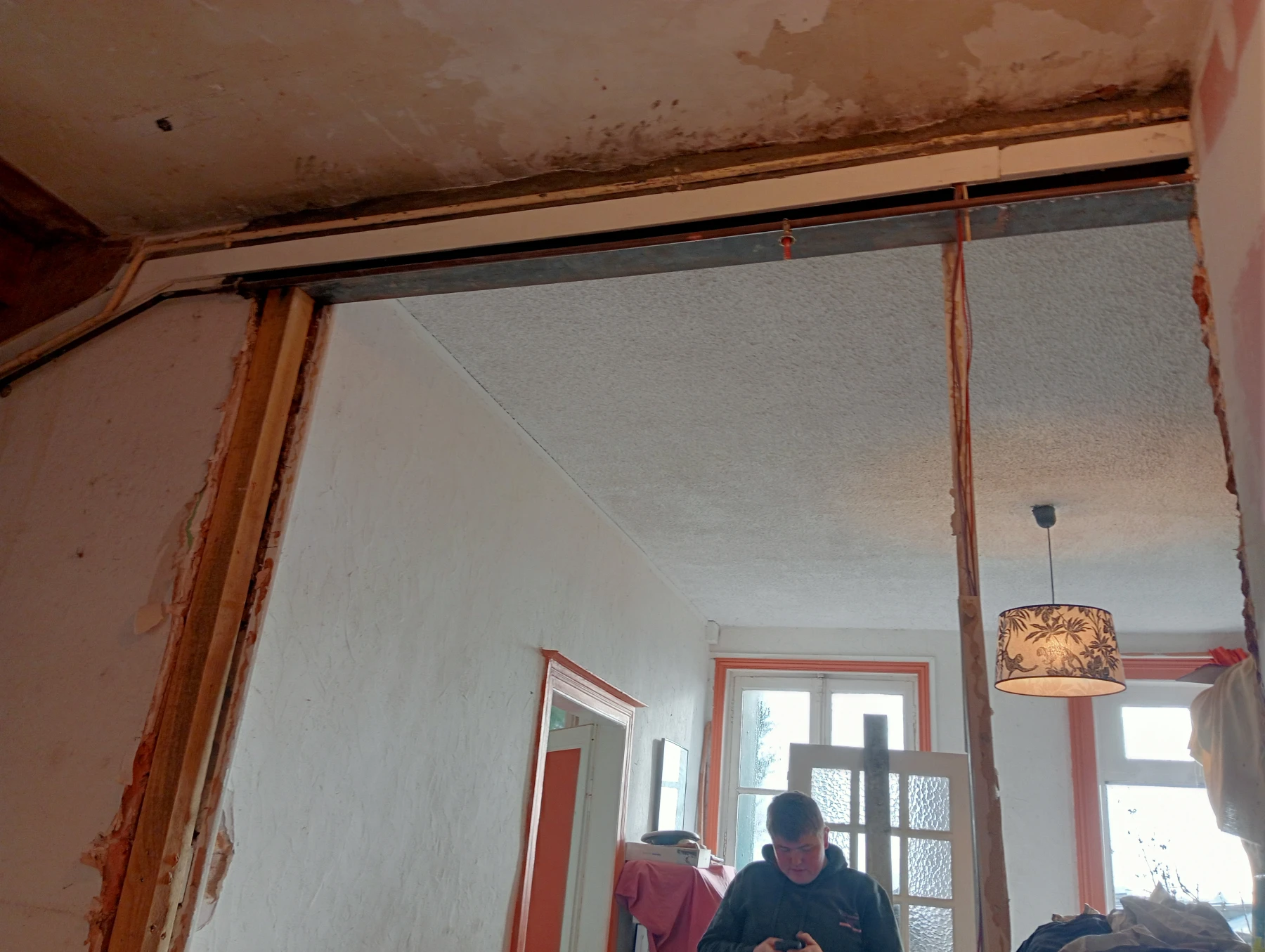 Dépose d'une poutre en bois dans un conduit de cheminée pour la remplacer par un IPN chantier secteur Auzouville l'éneval 76760