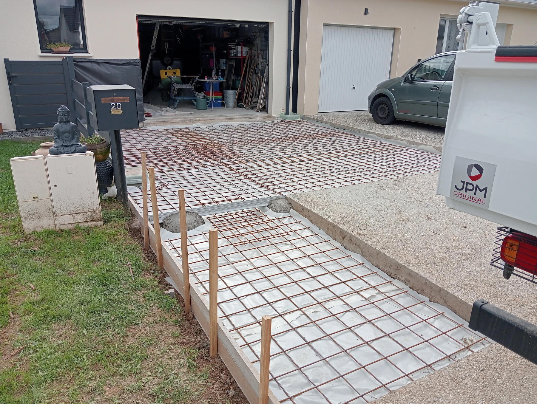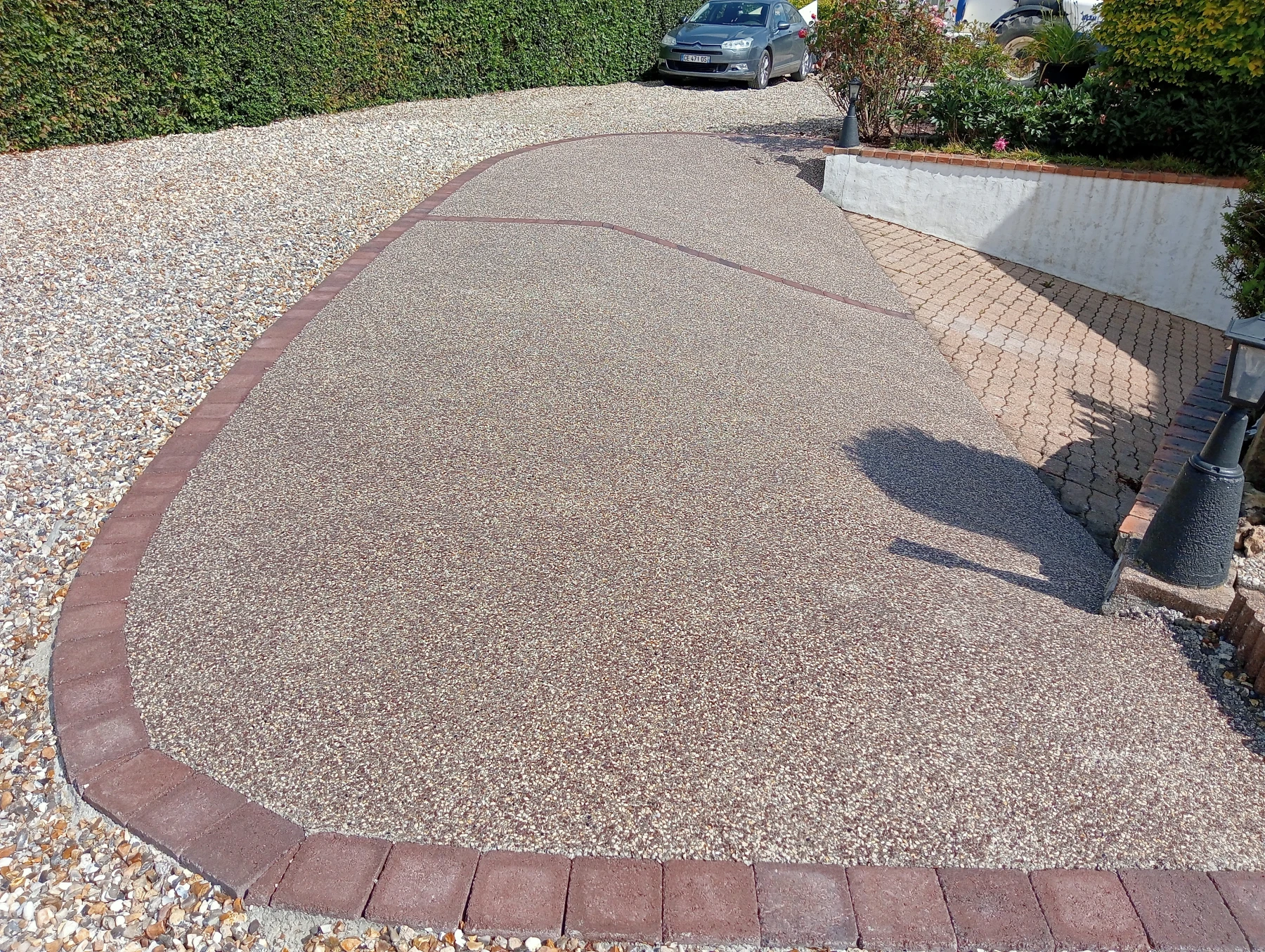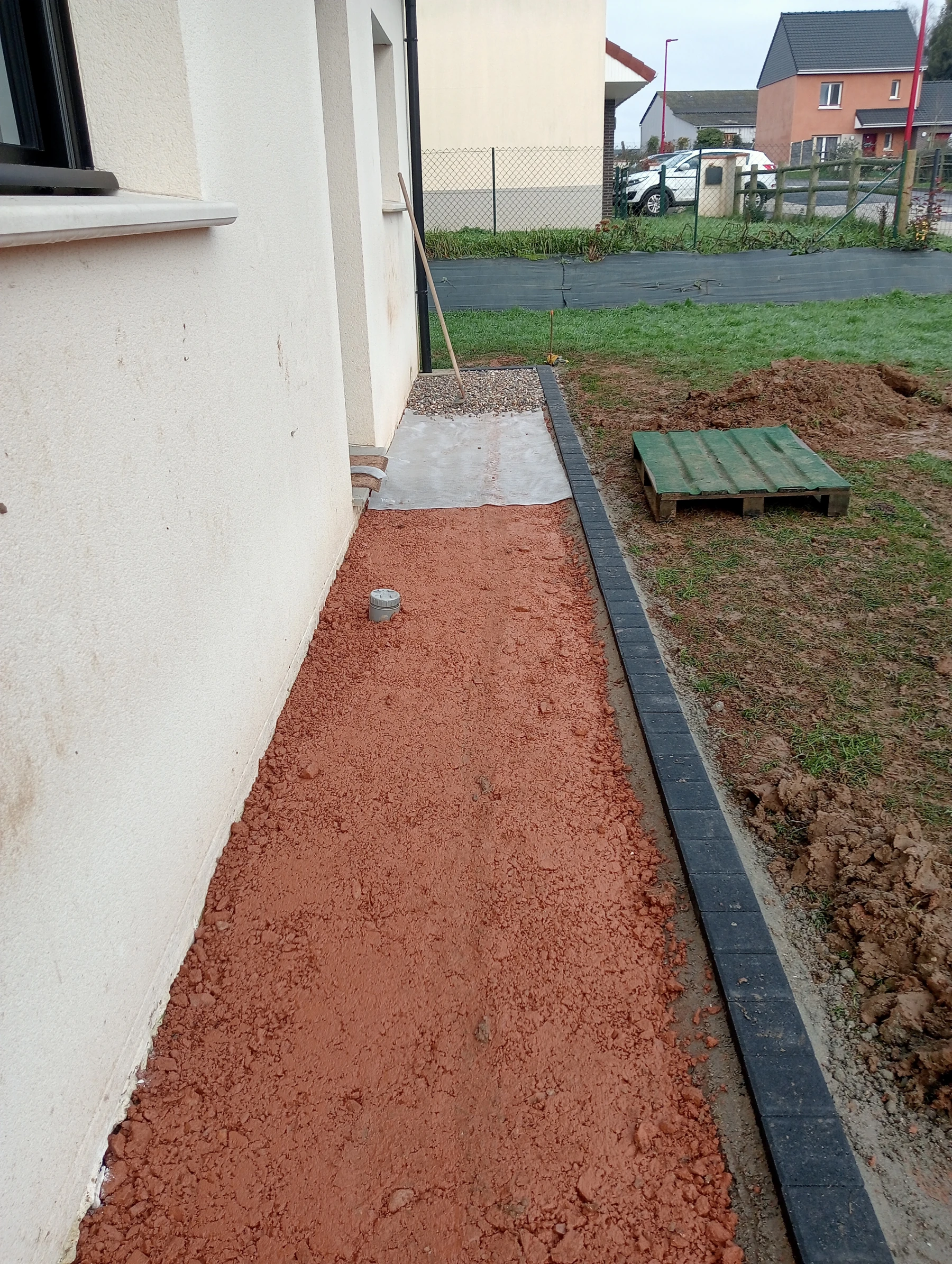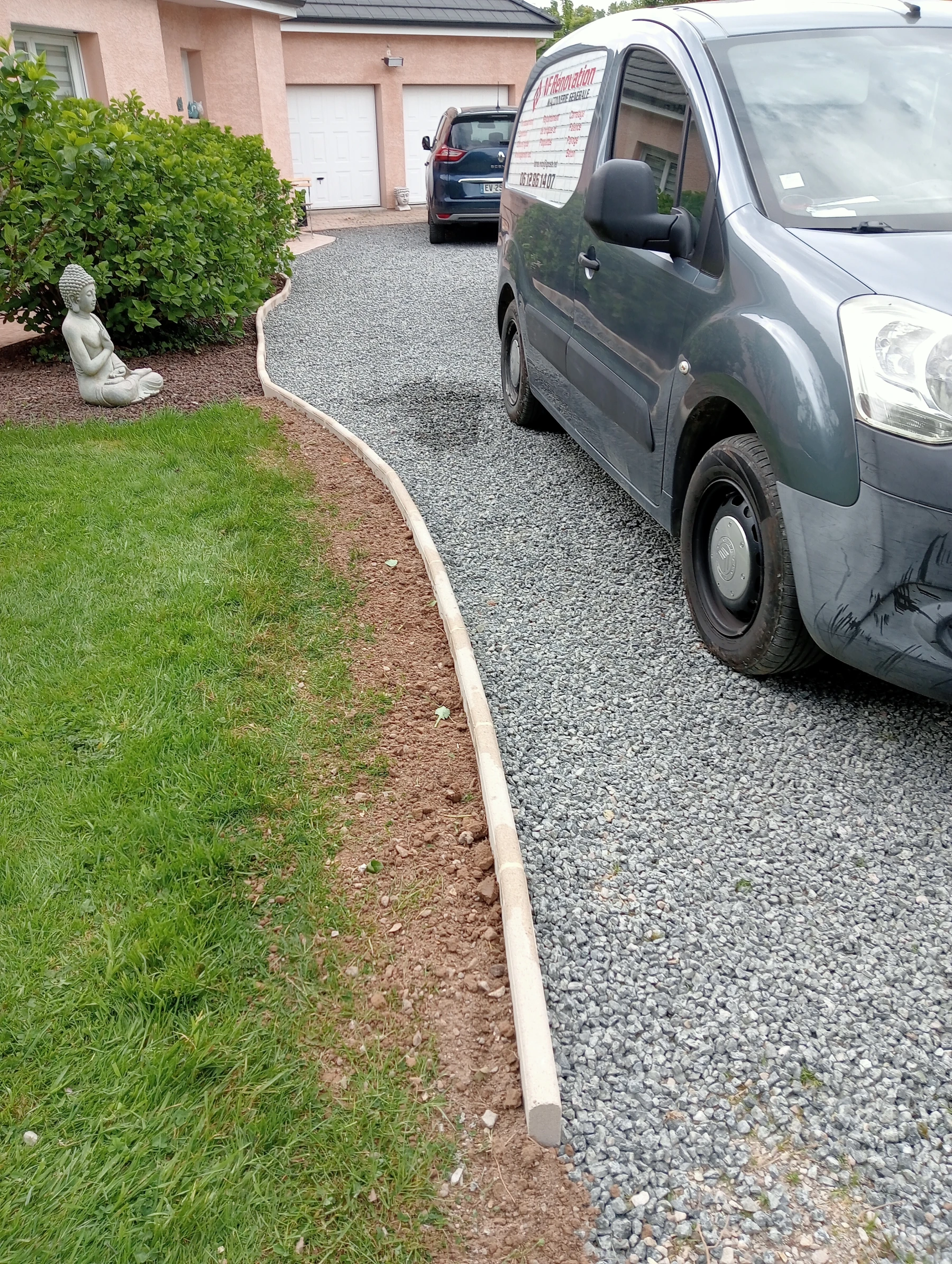 Aménagement en bordure ton pierre pour allée de garage chantier secteur Auzouville l'esneval 76760
