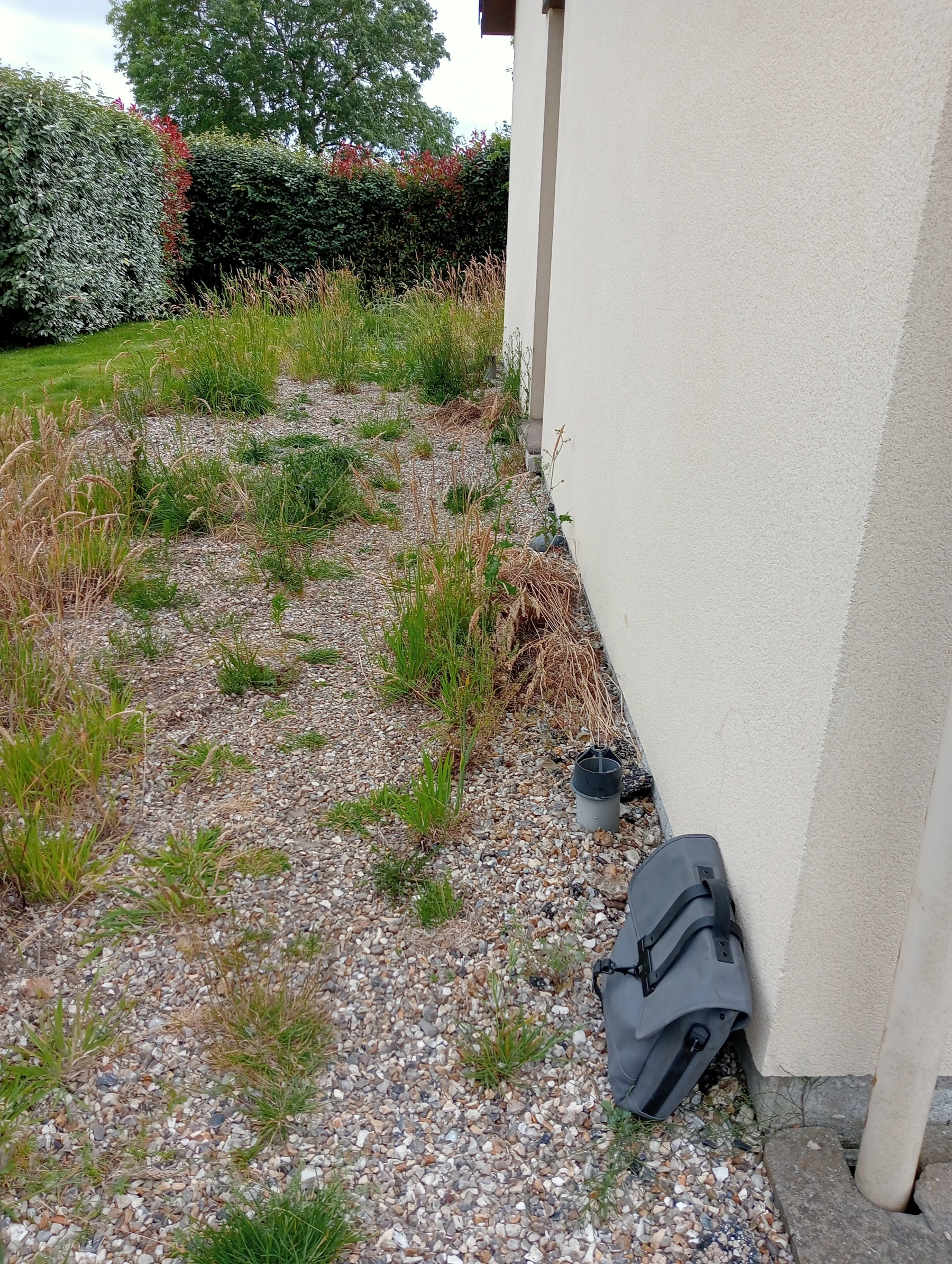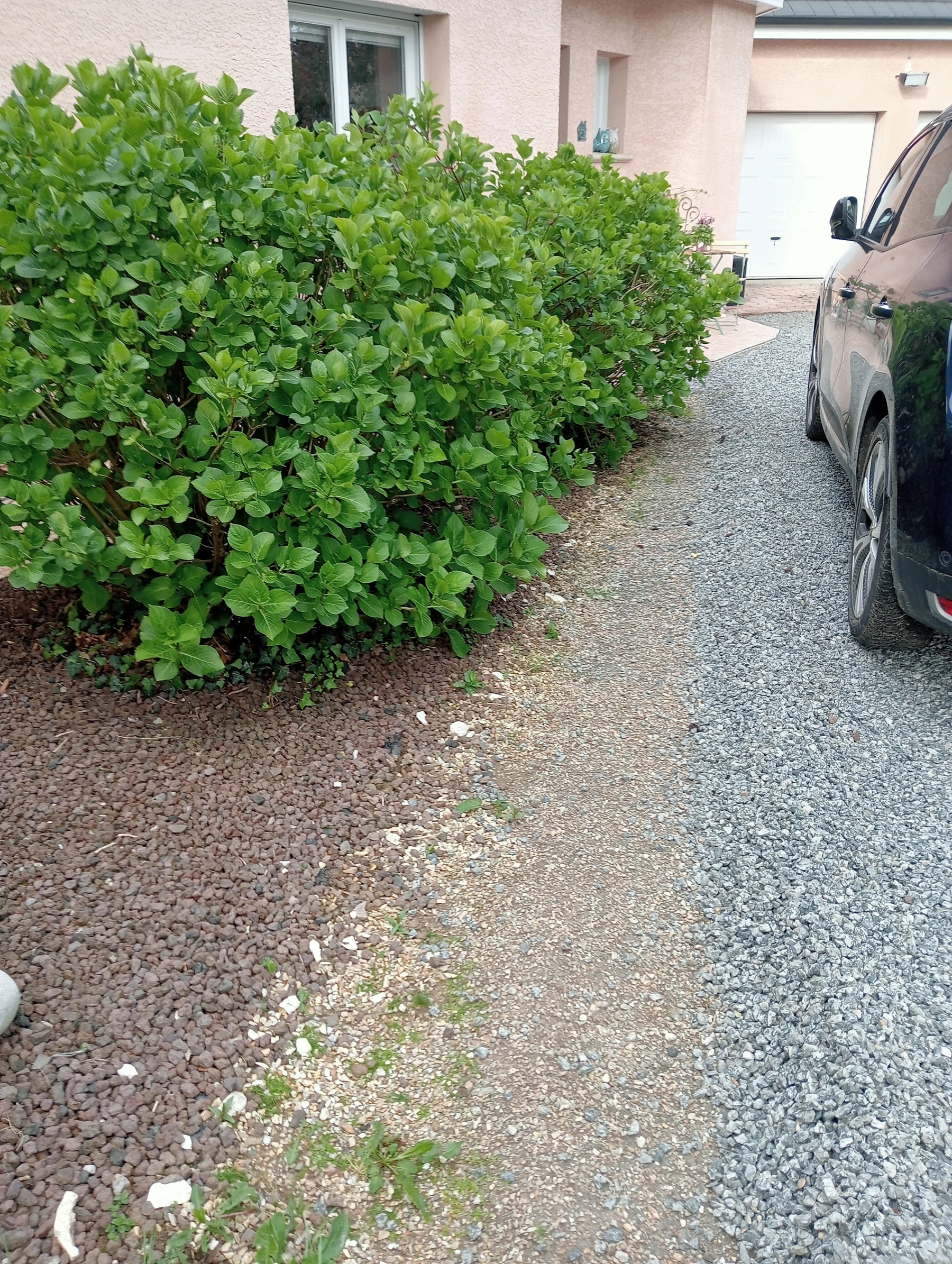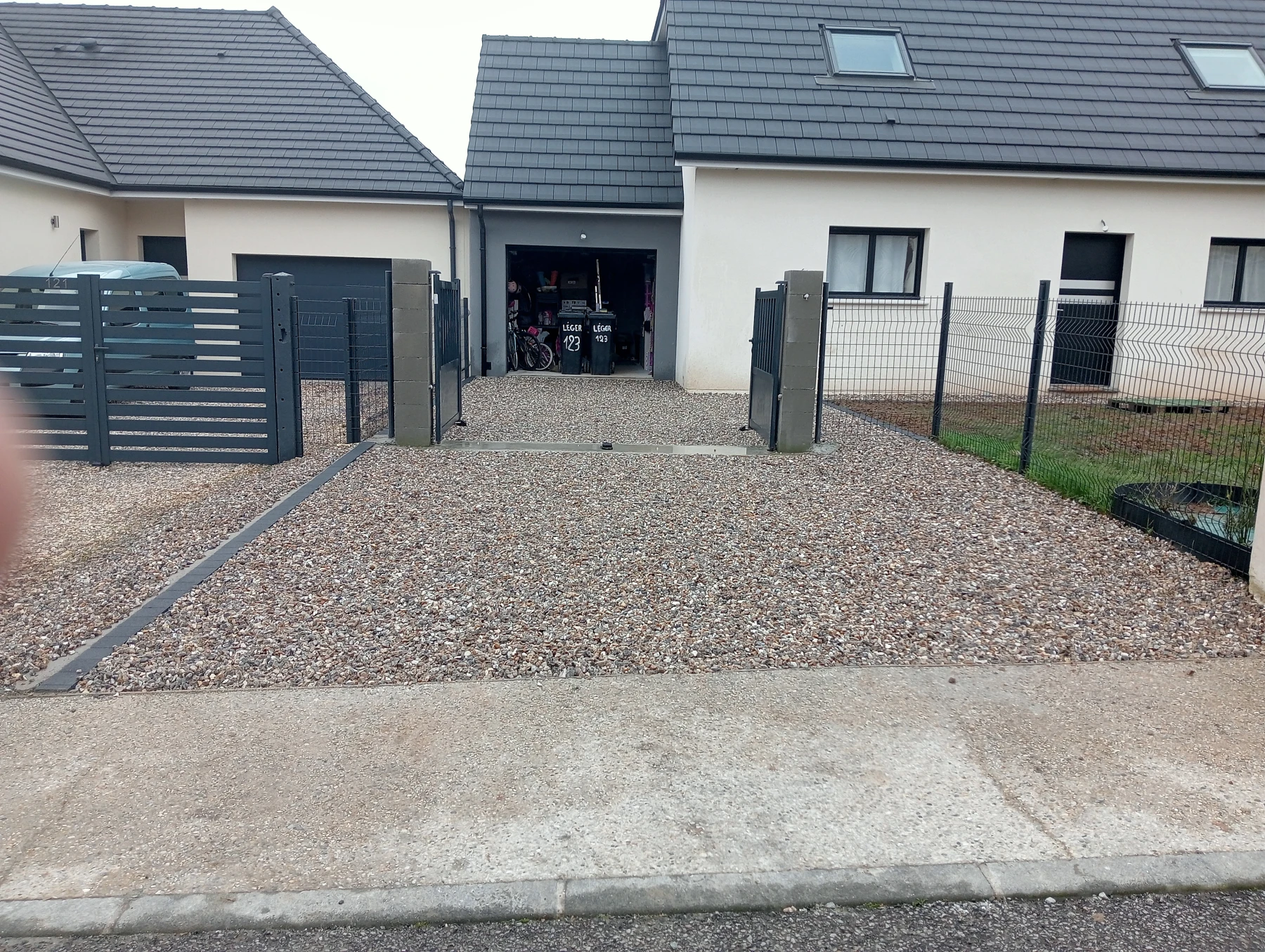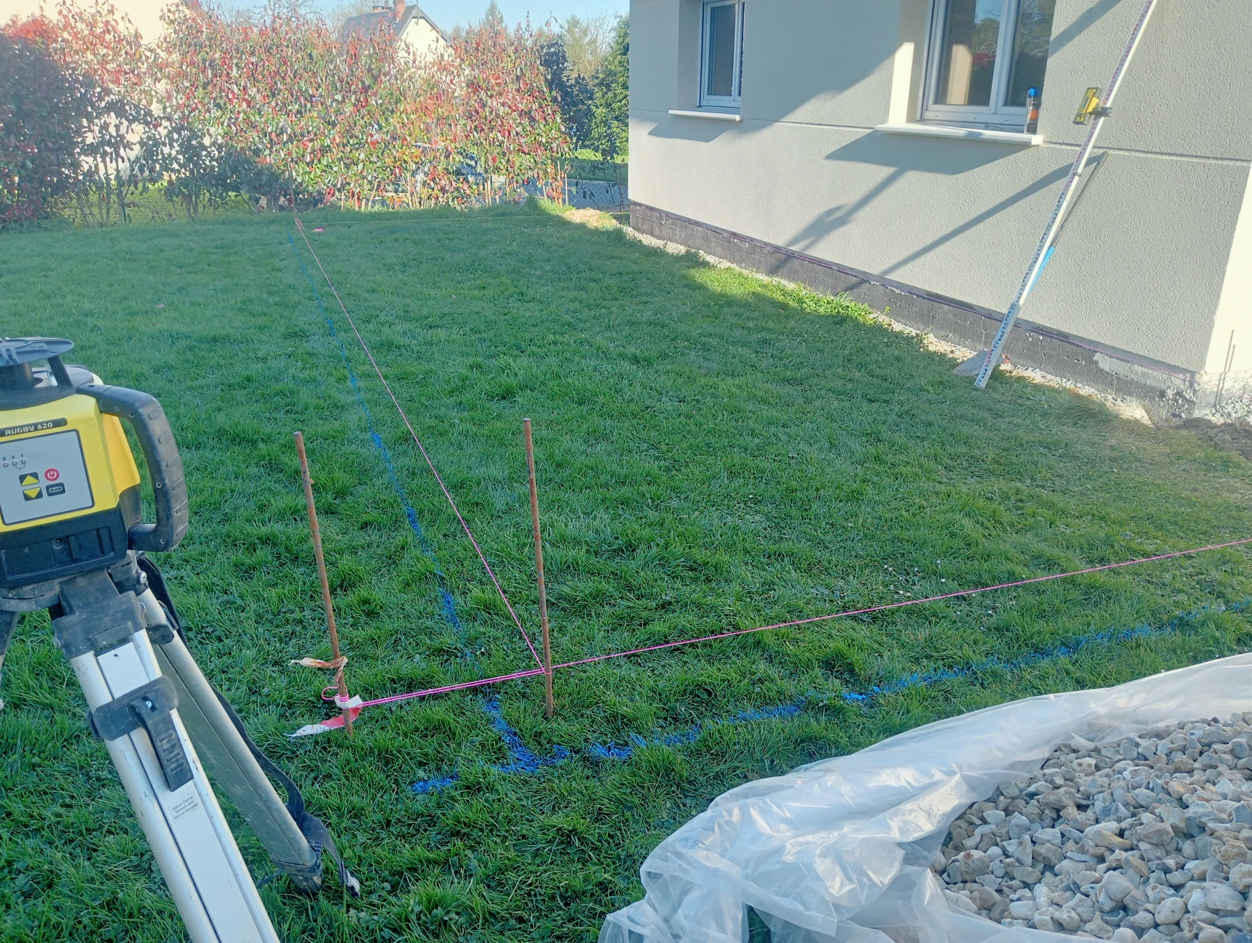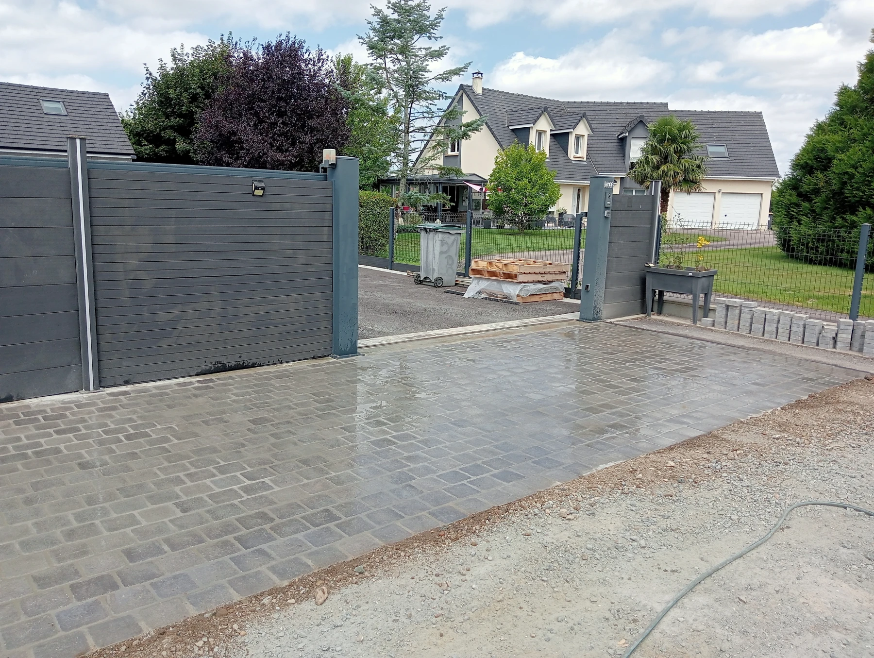 Travaux d'aménagement en gravier gris bleu chantier à Anceaumeville 76