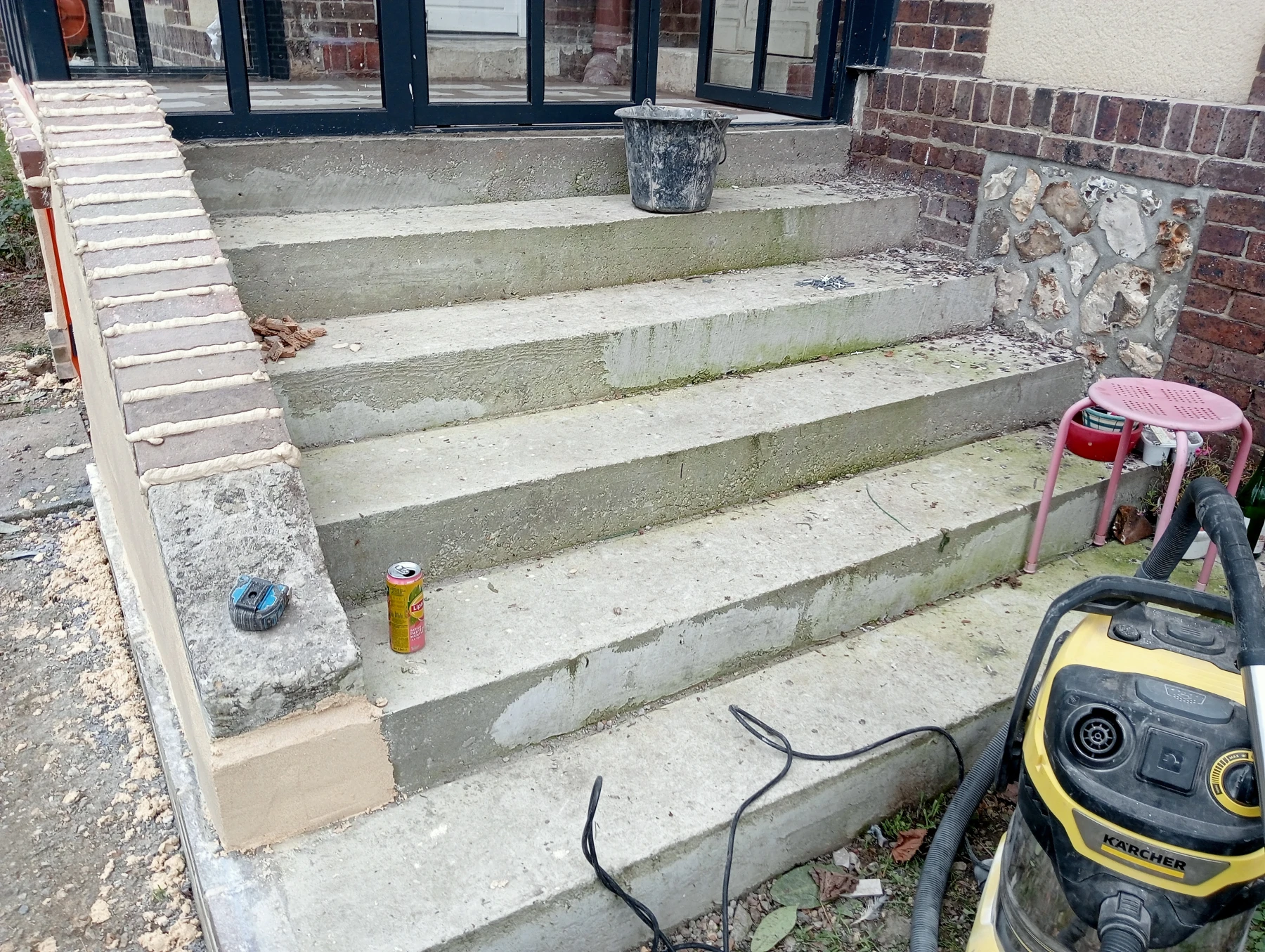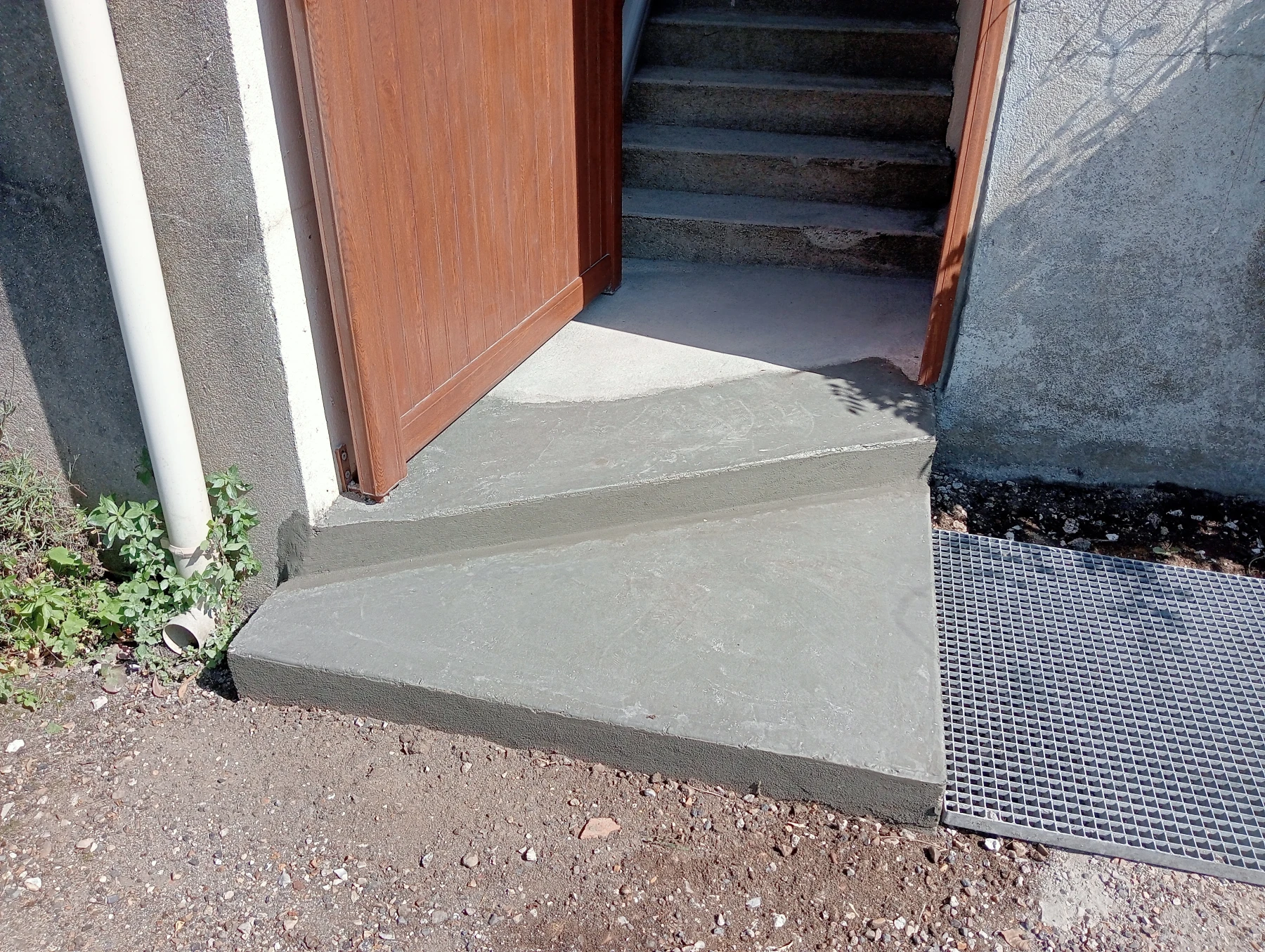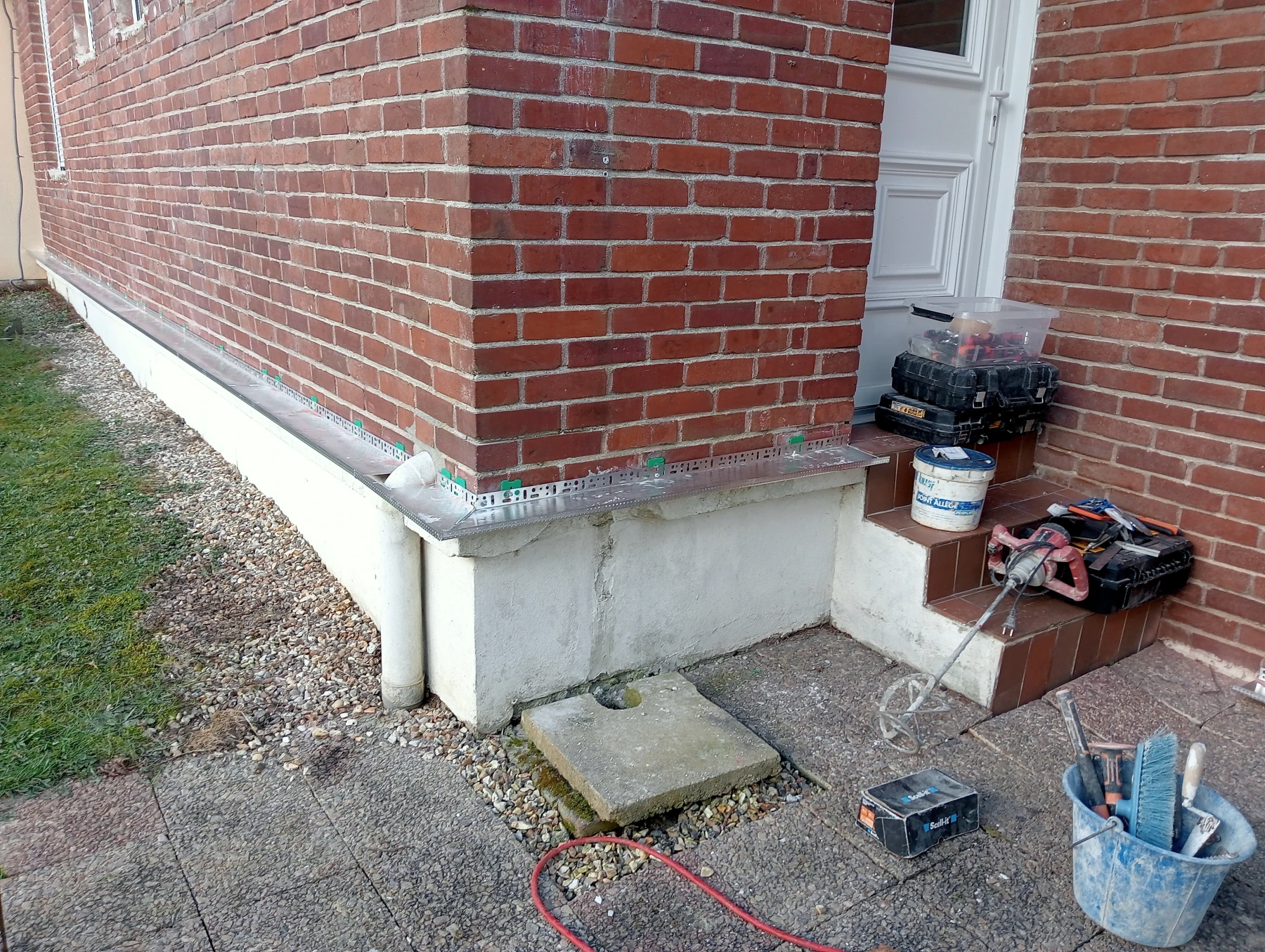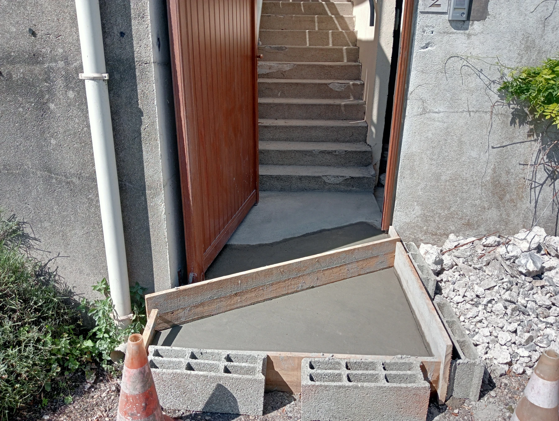 Travaux de rénovation sur entrée de maison en béton