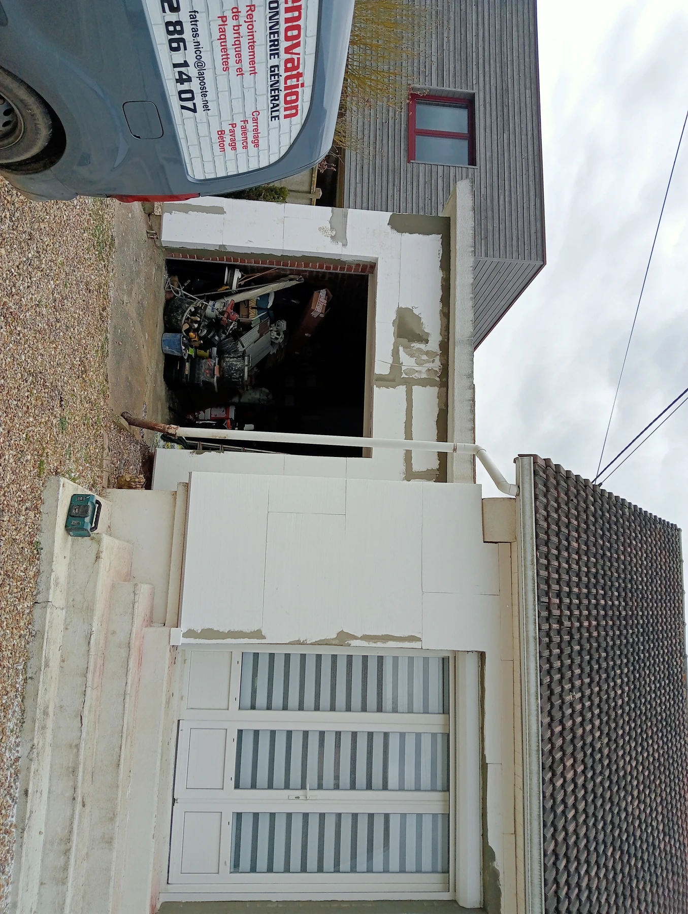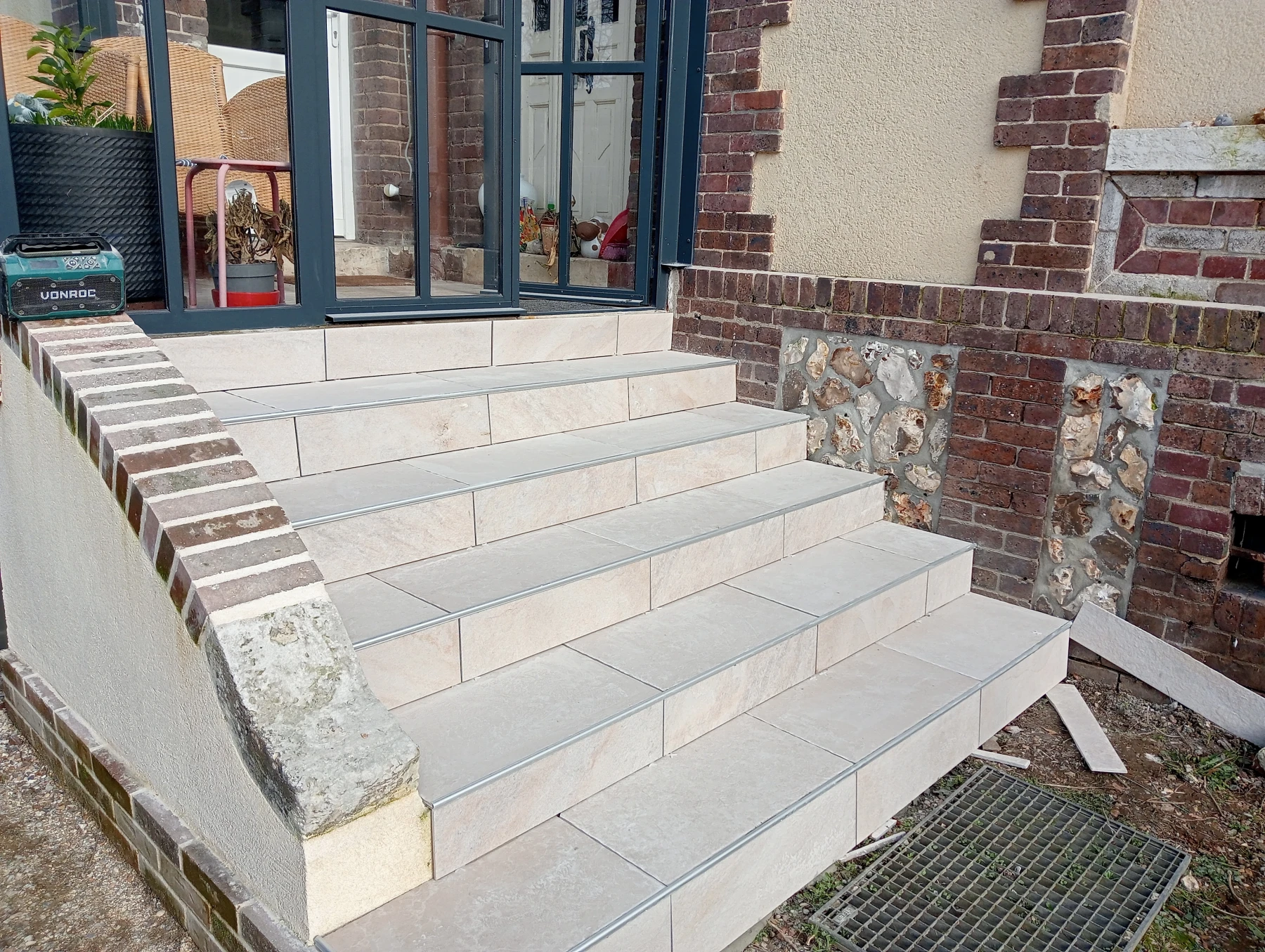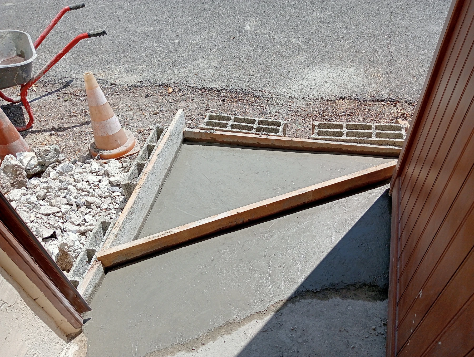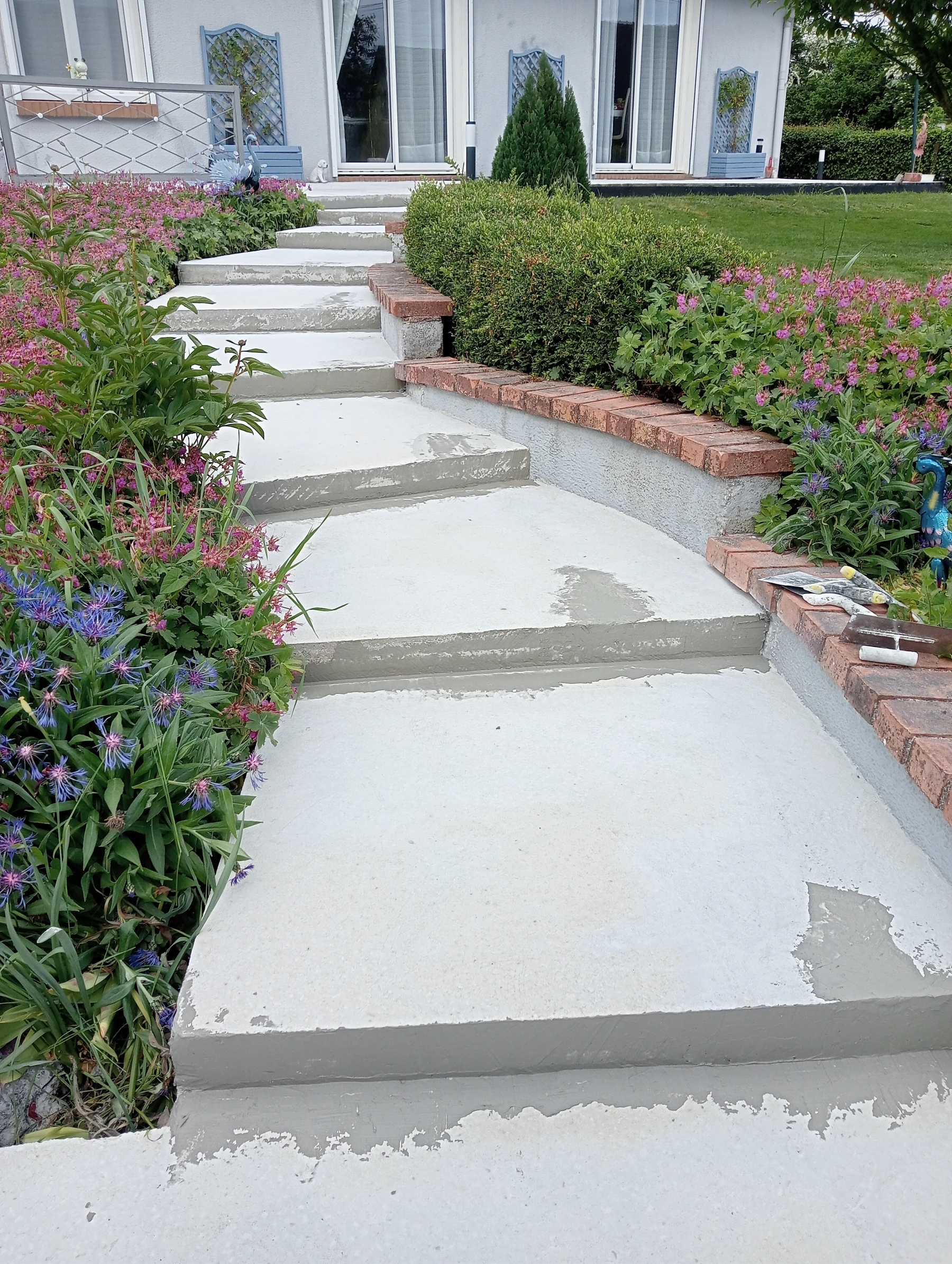 Travaux de rénovation sur entrée de maison en béton