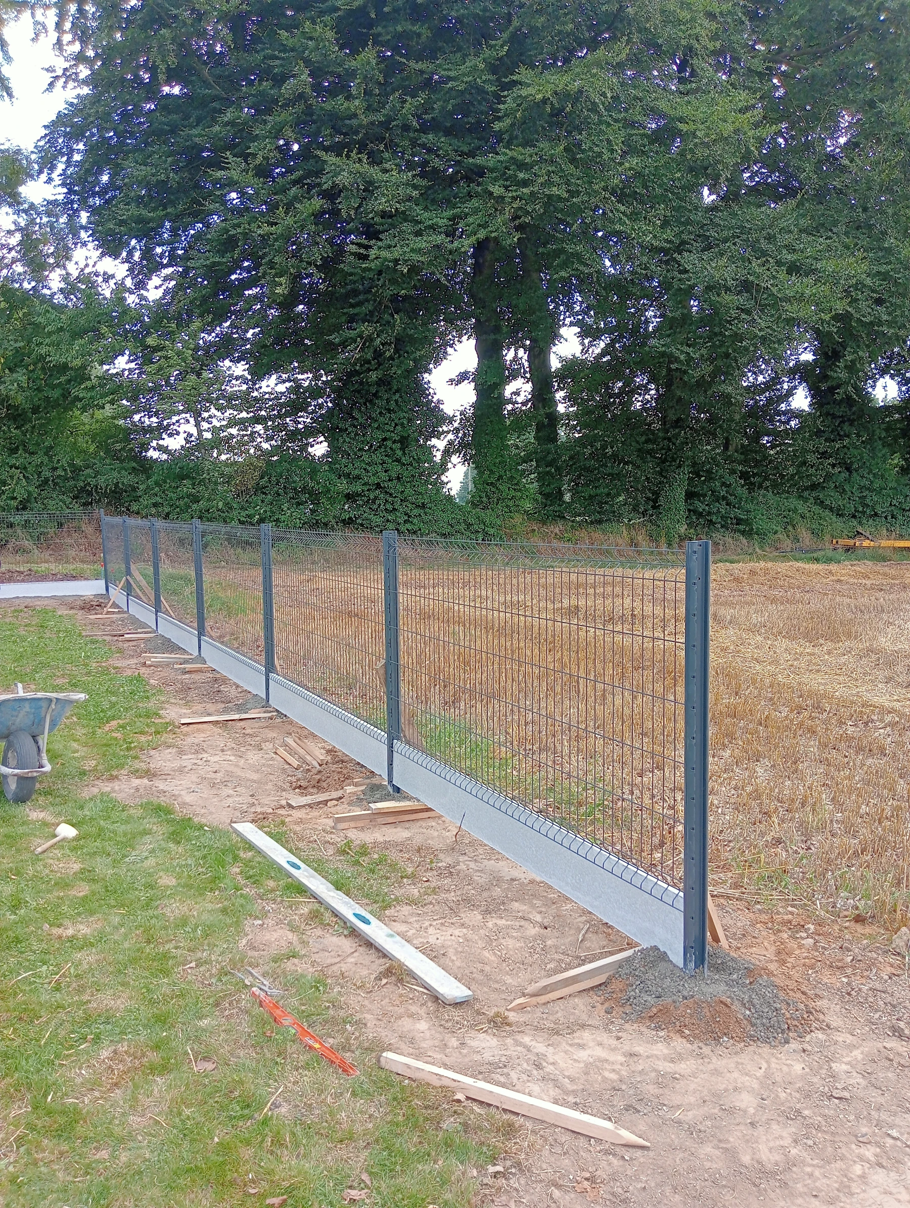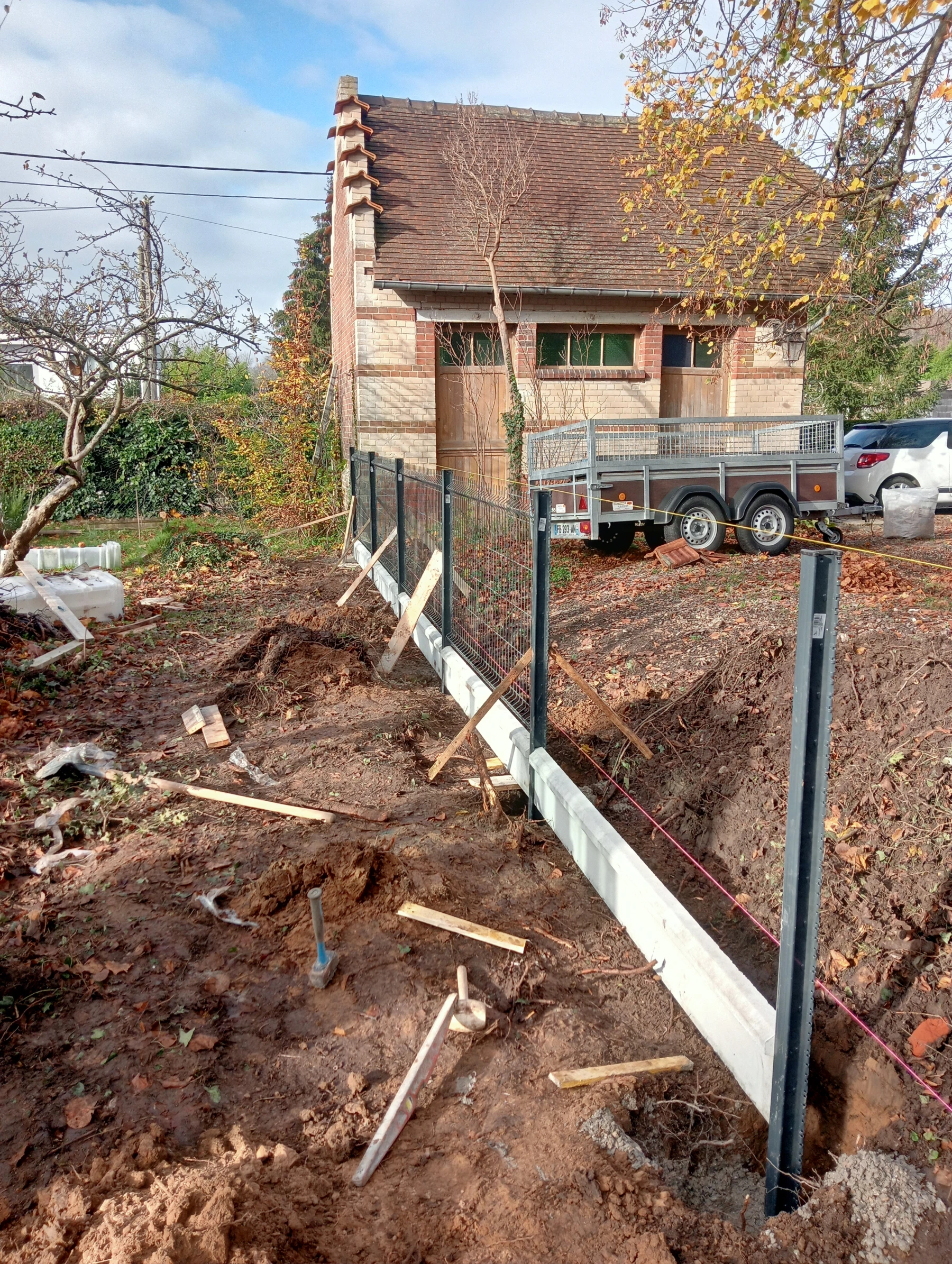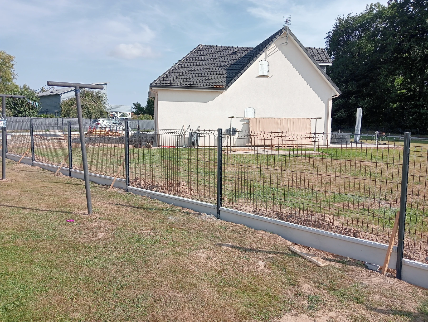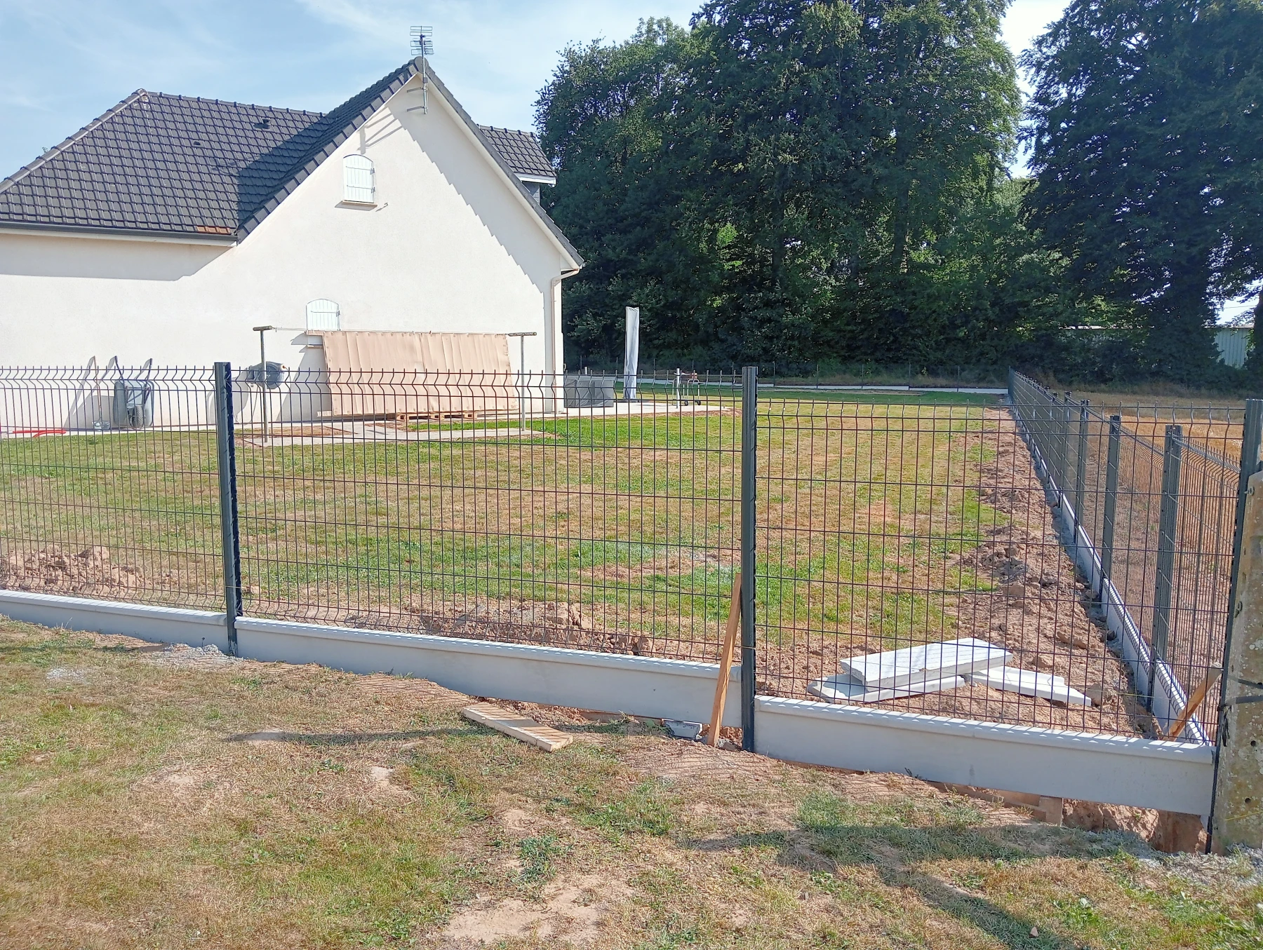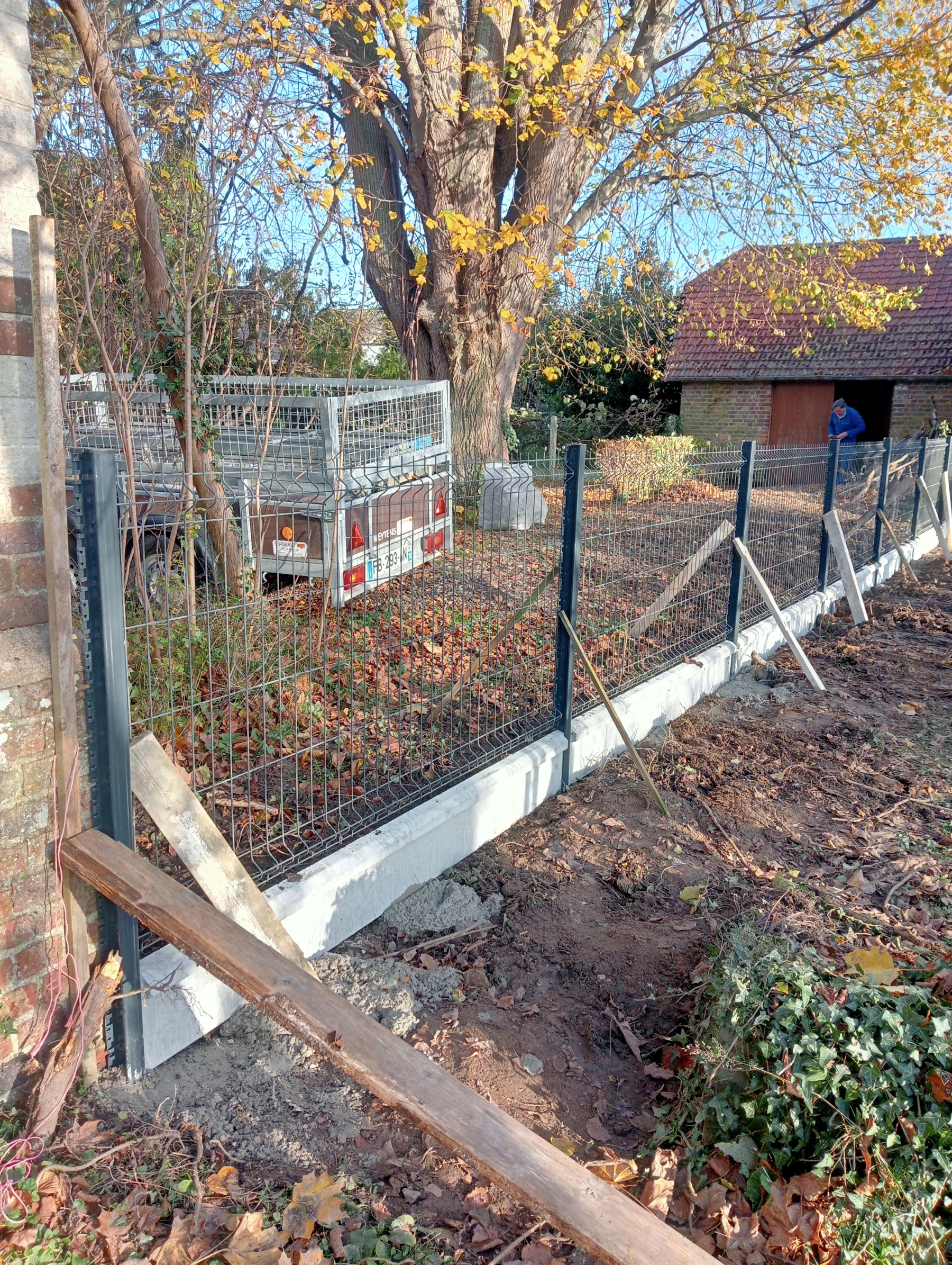 Pose d'une cloture rigide avec soubassement chantier secteur grand couronne