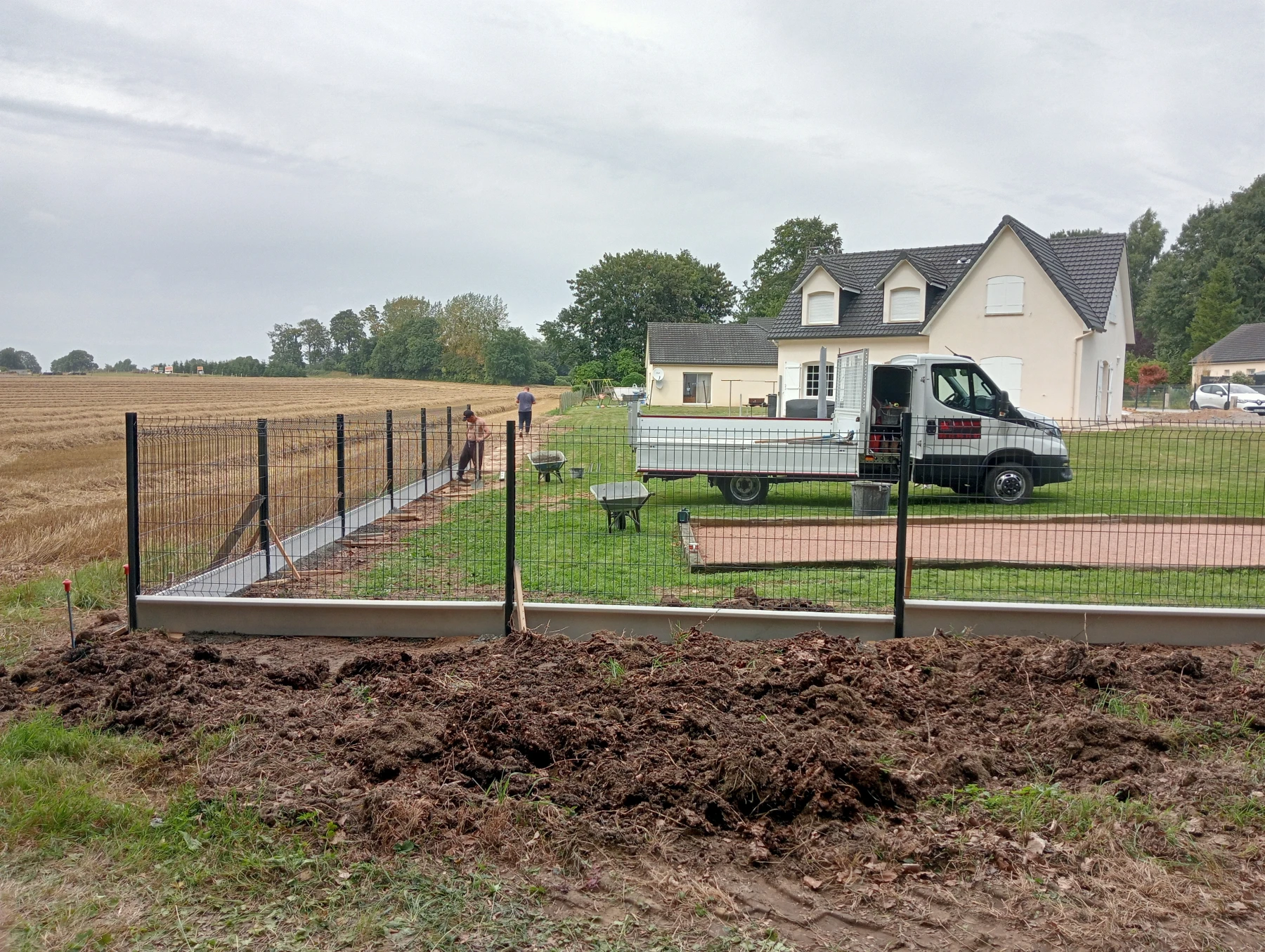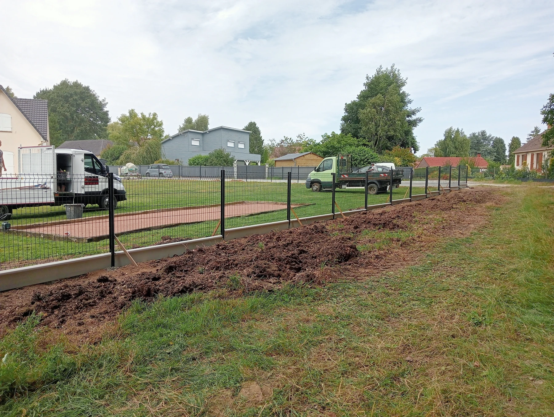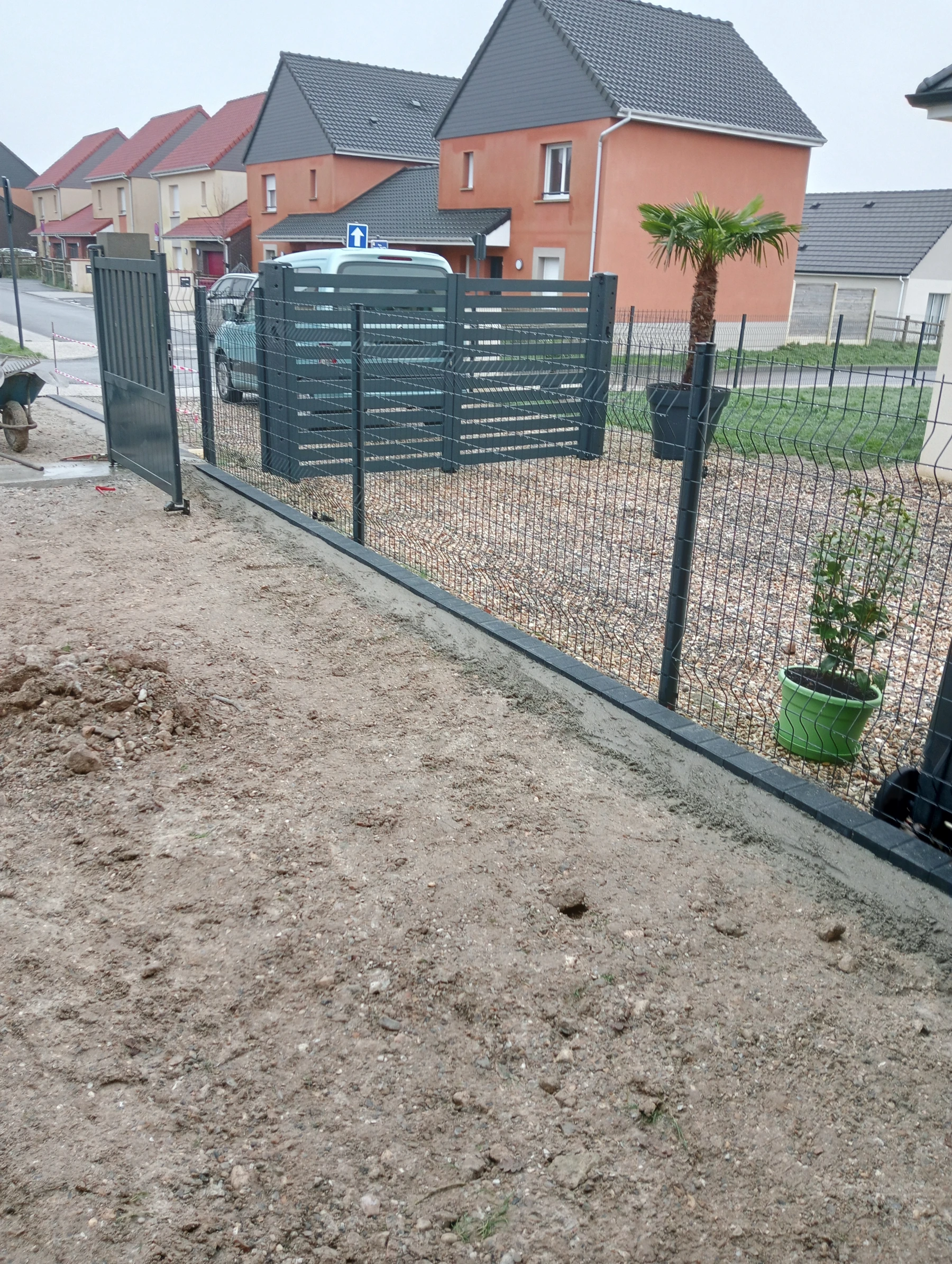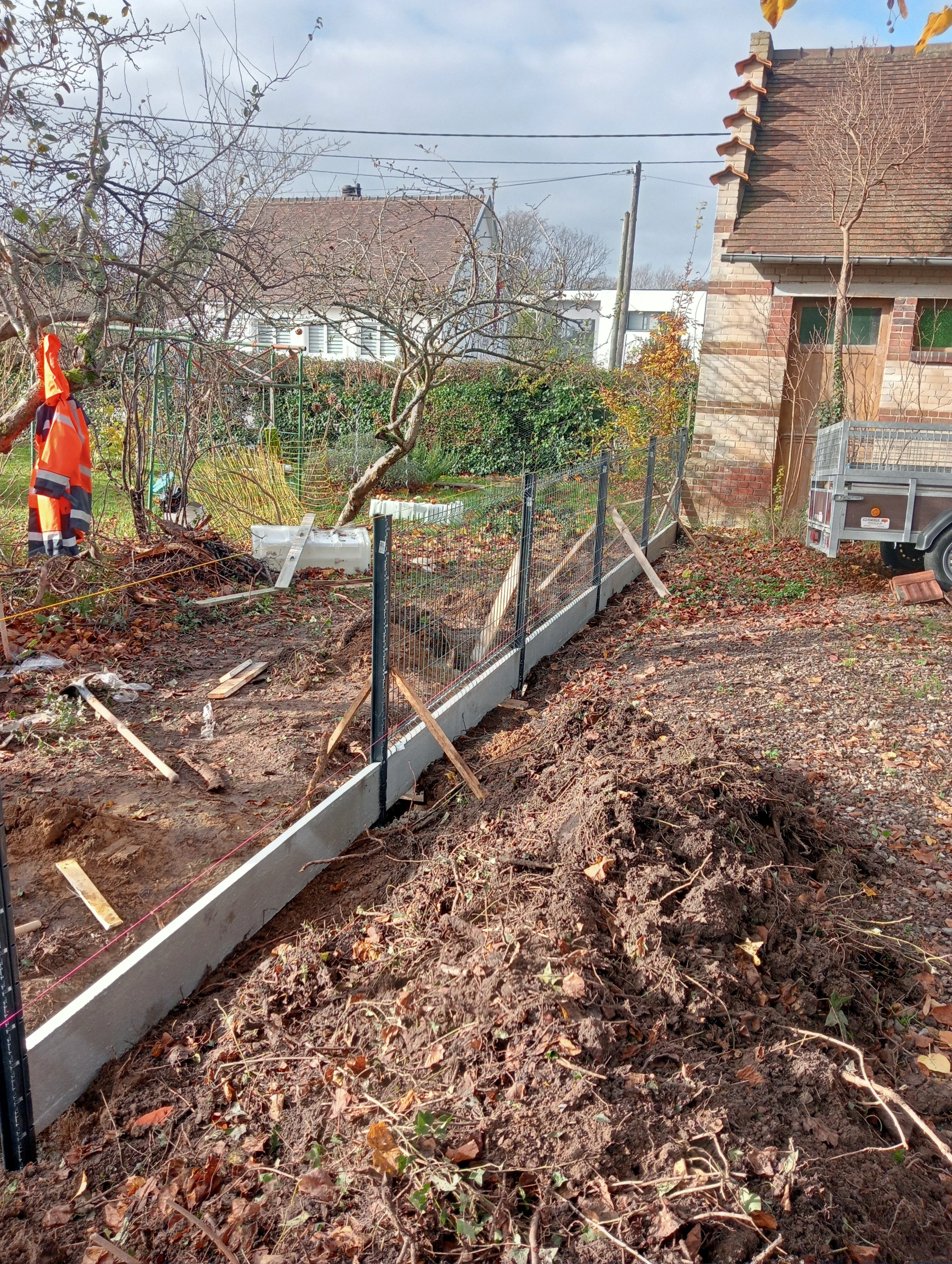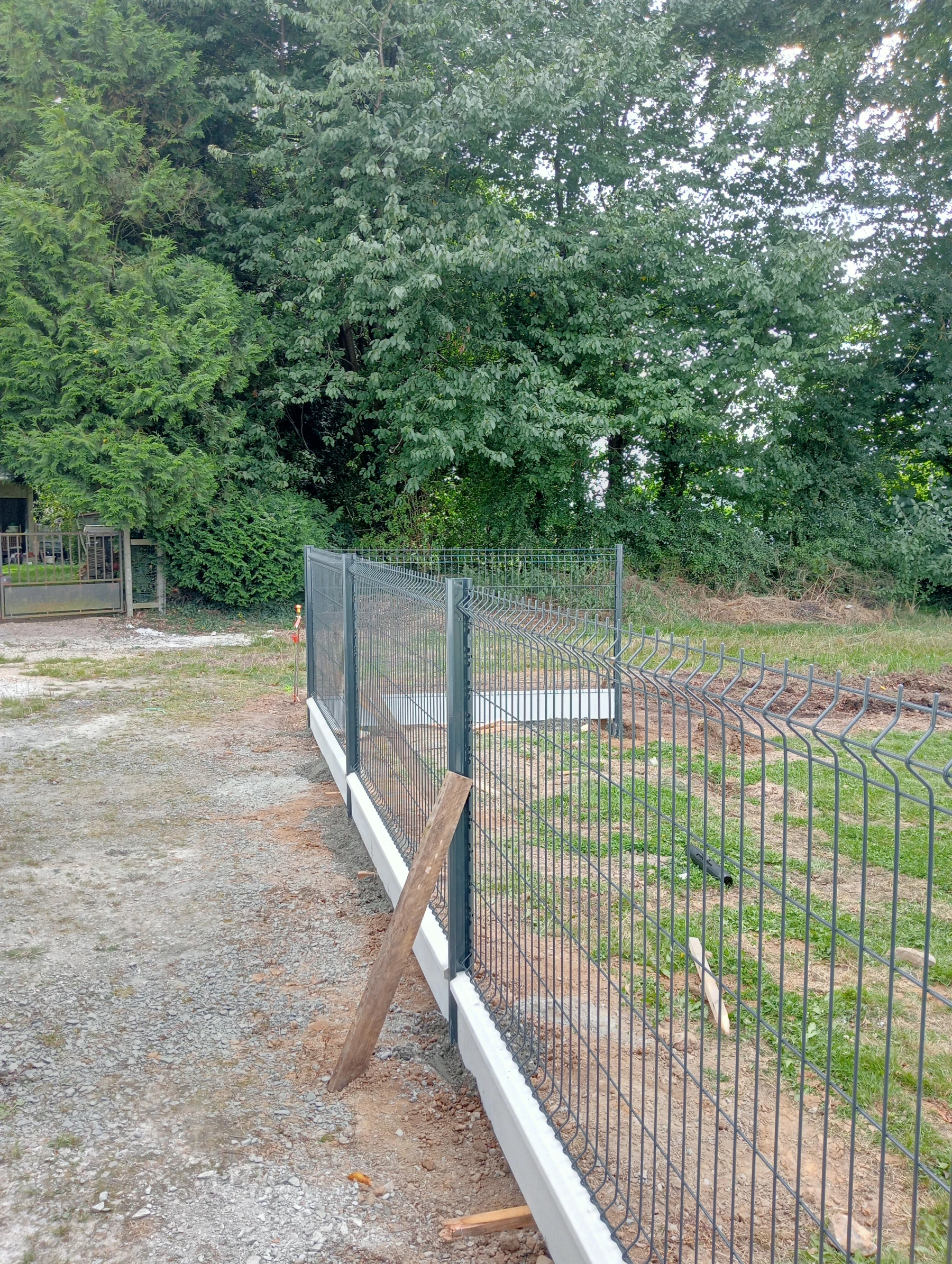 Pose d'une cloture rigide avec soubassement chantier secteur grand couronne