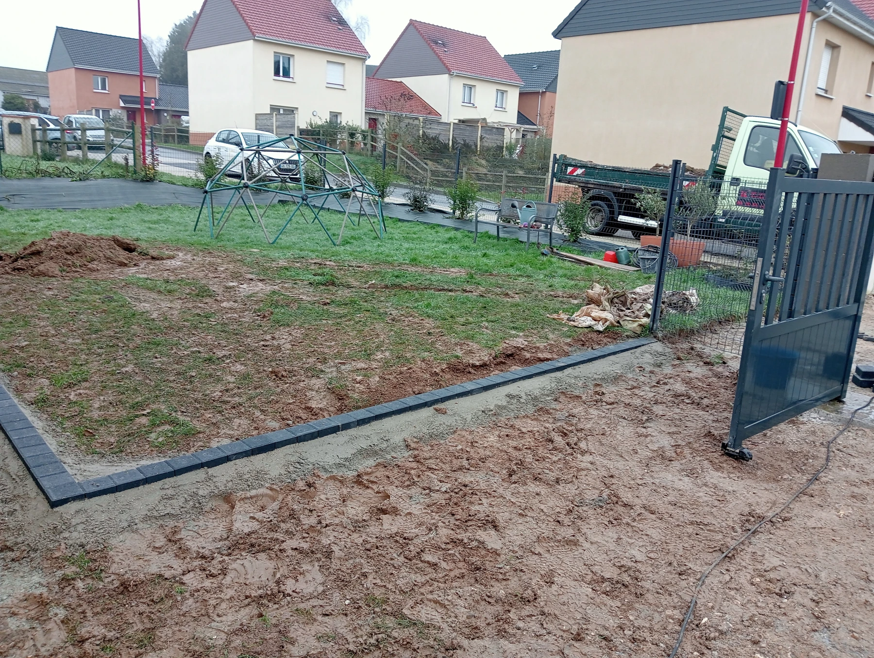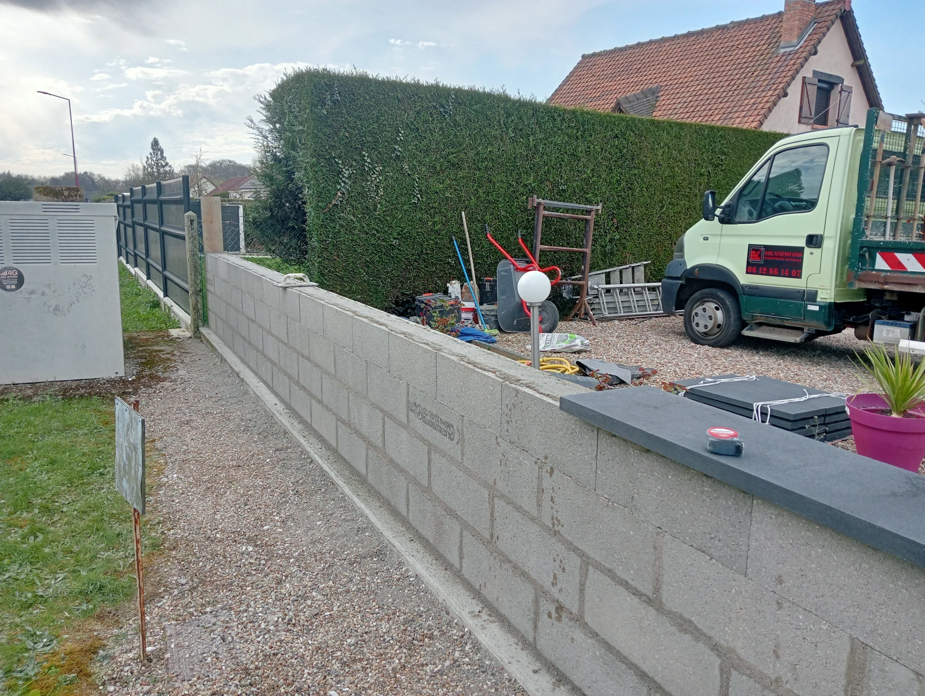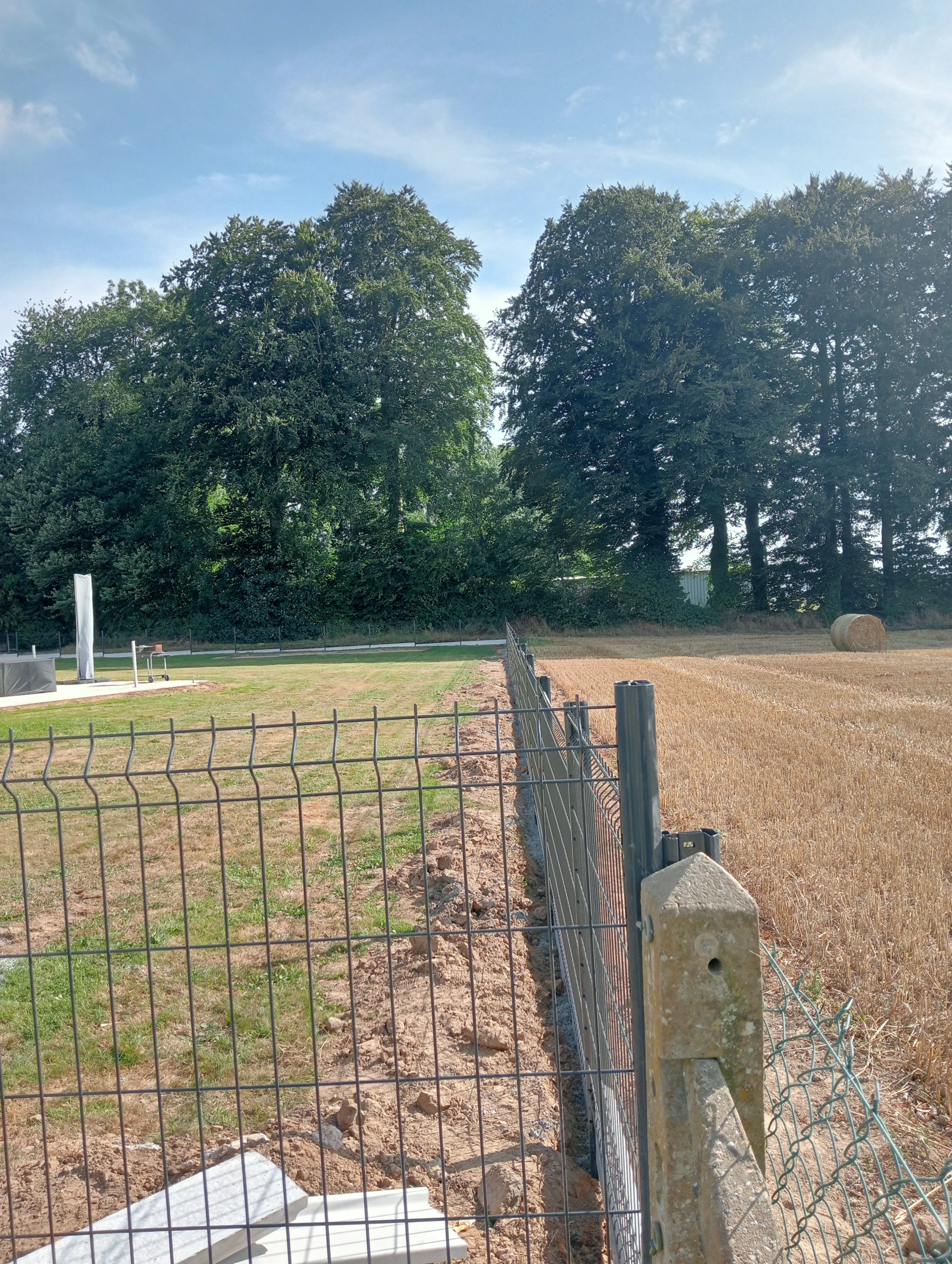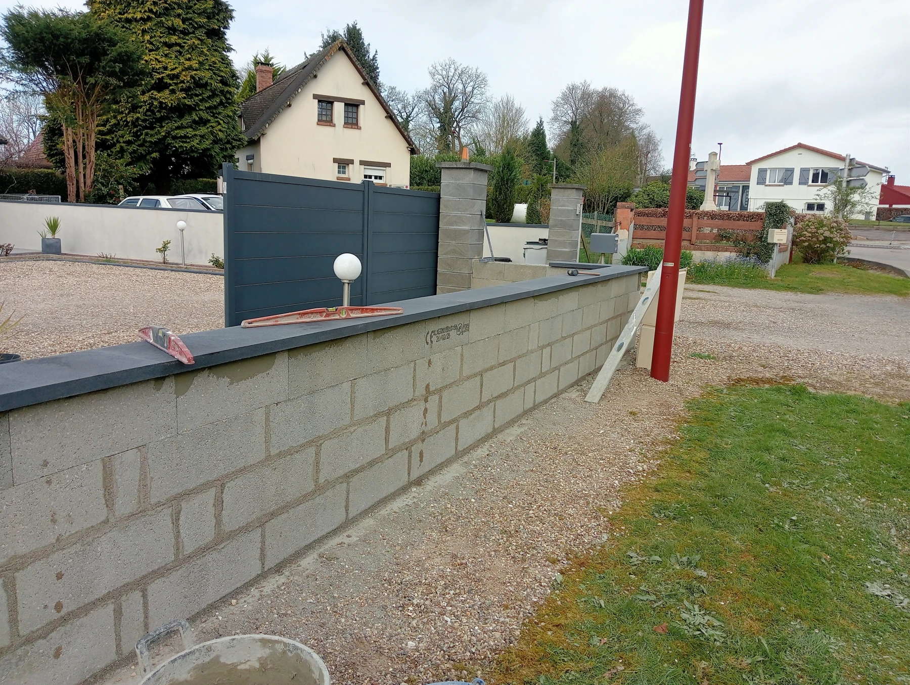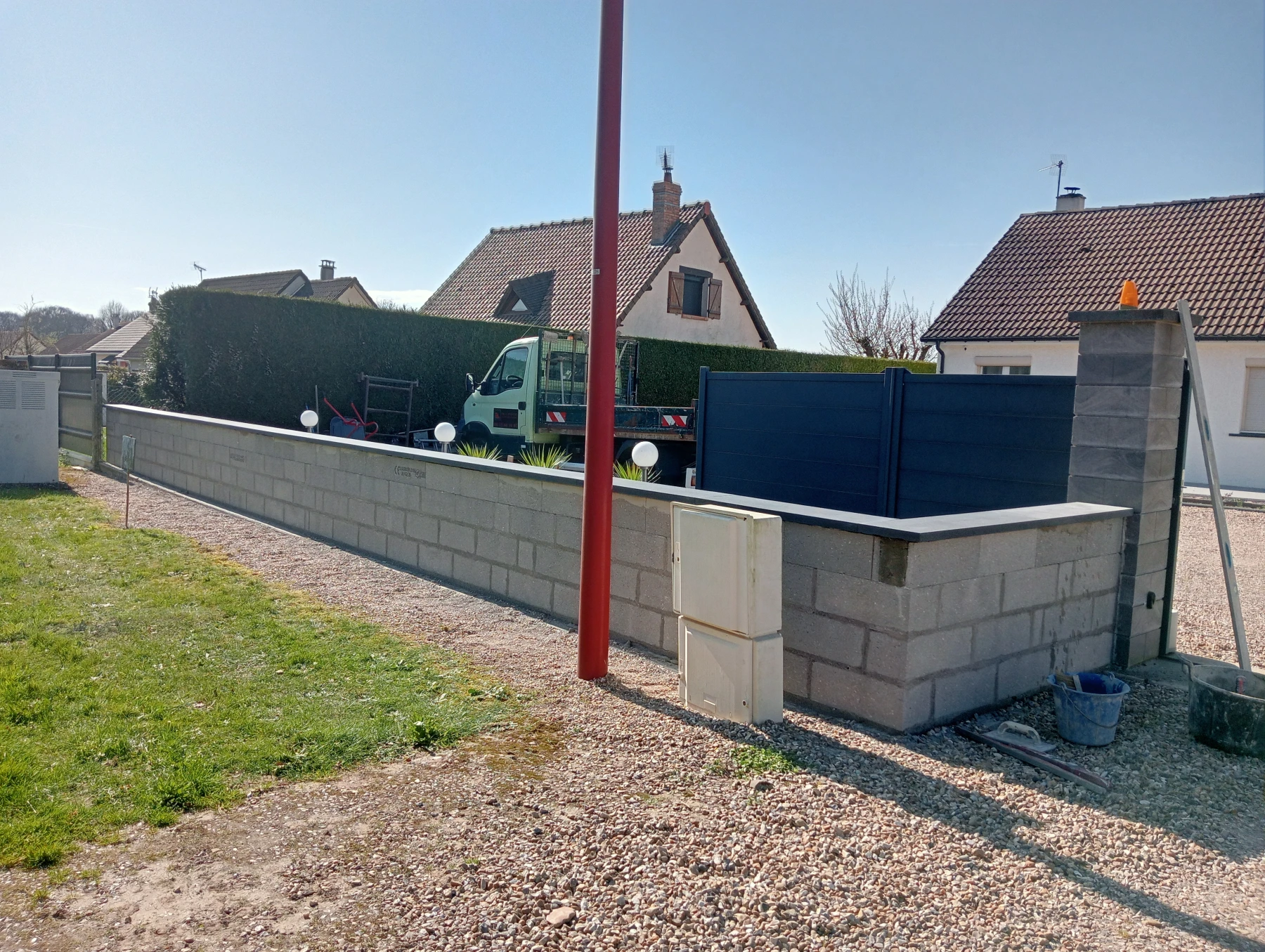 Pose d'une cloture rigide avec soubassement chantier secteur grand couronne