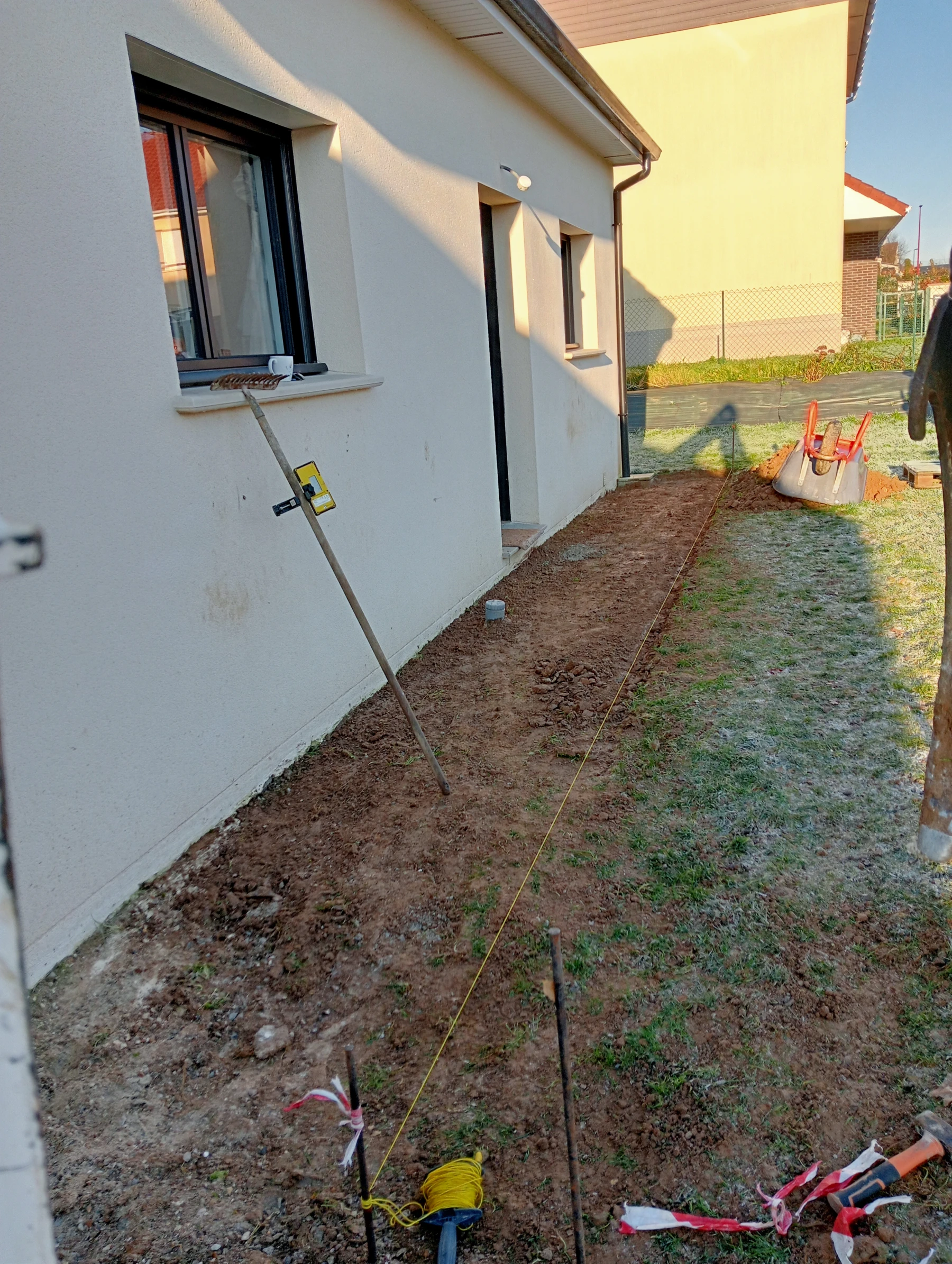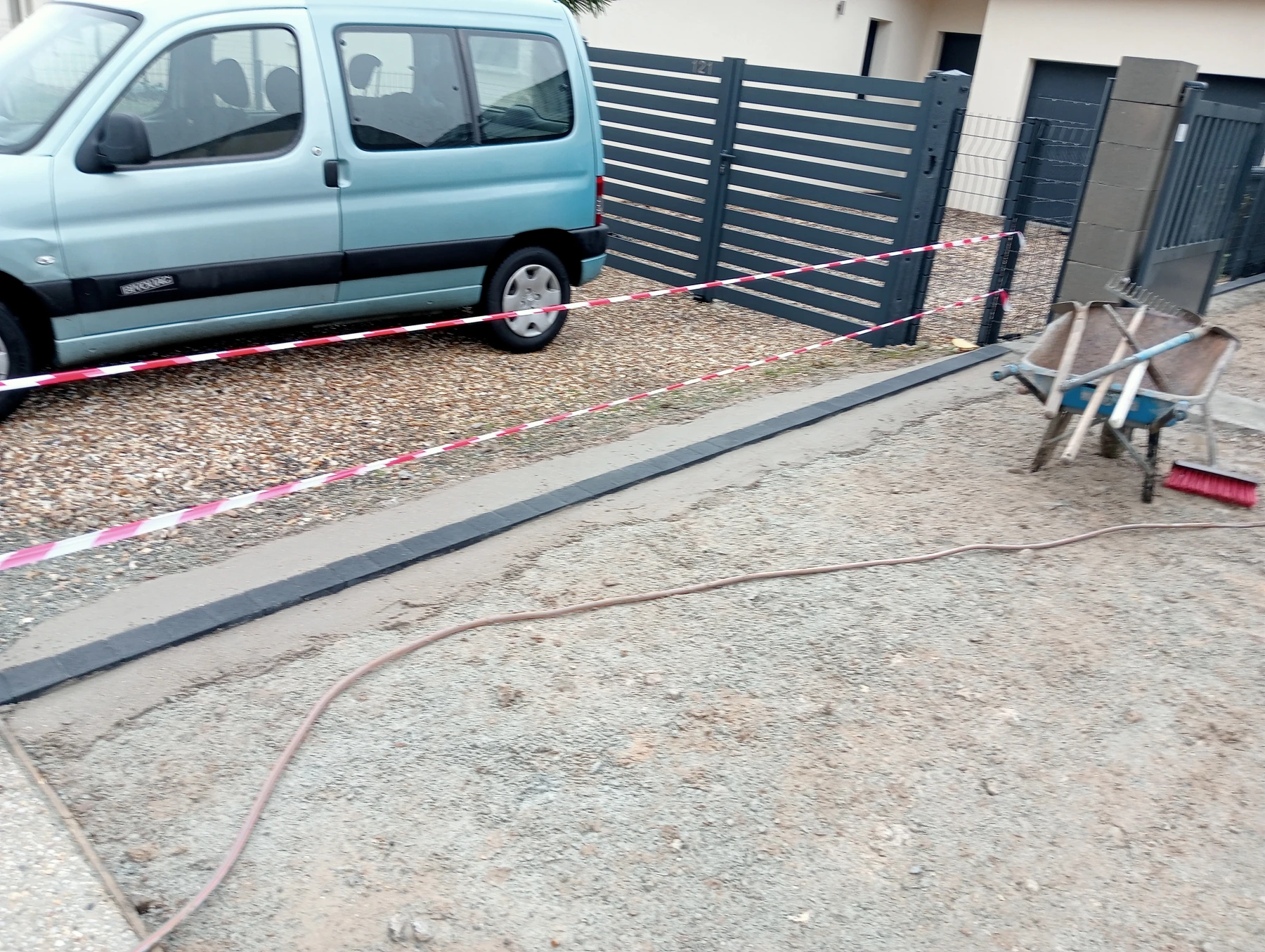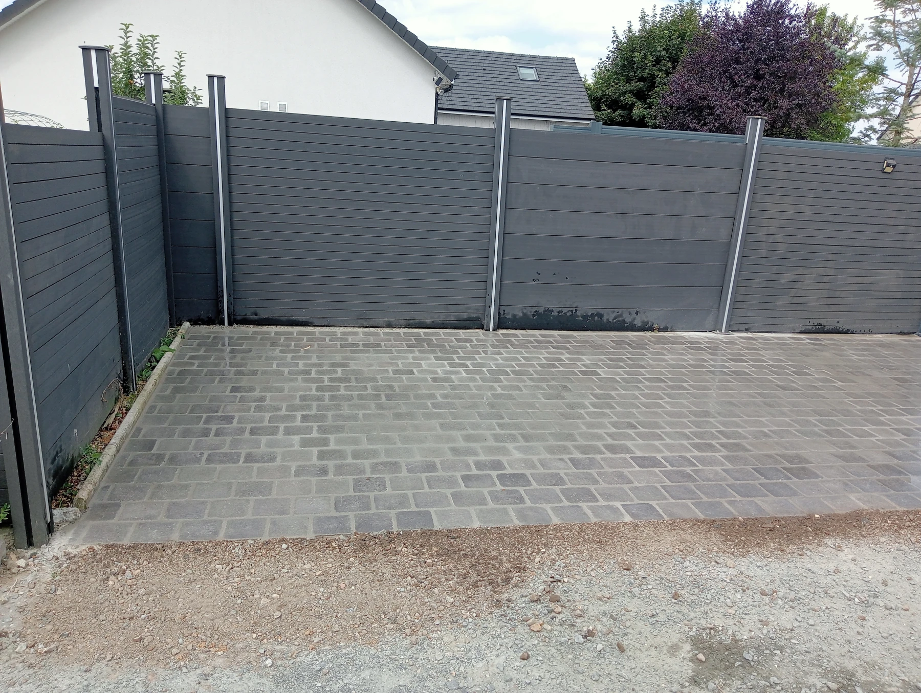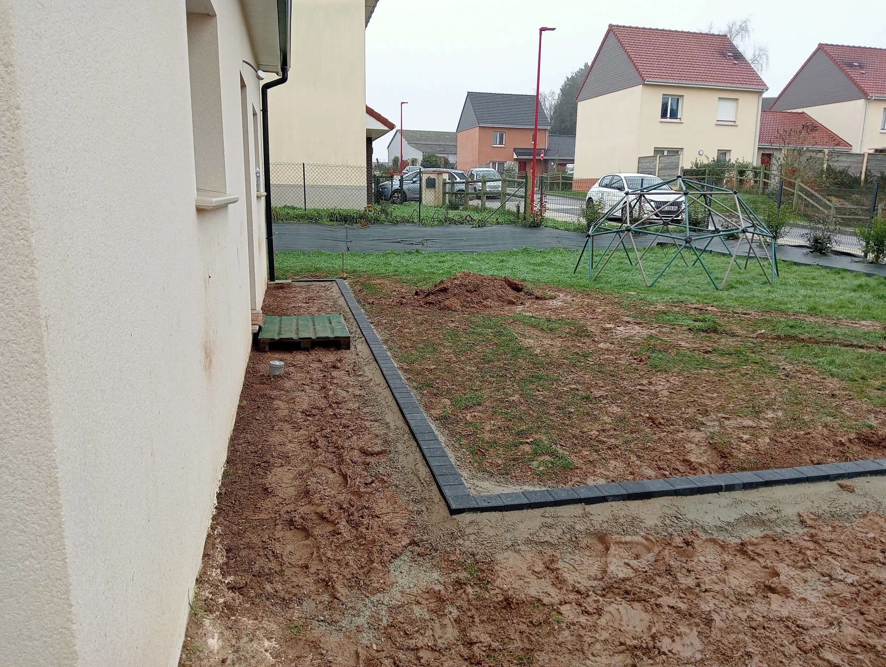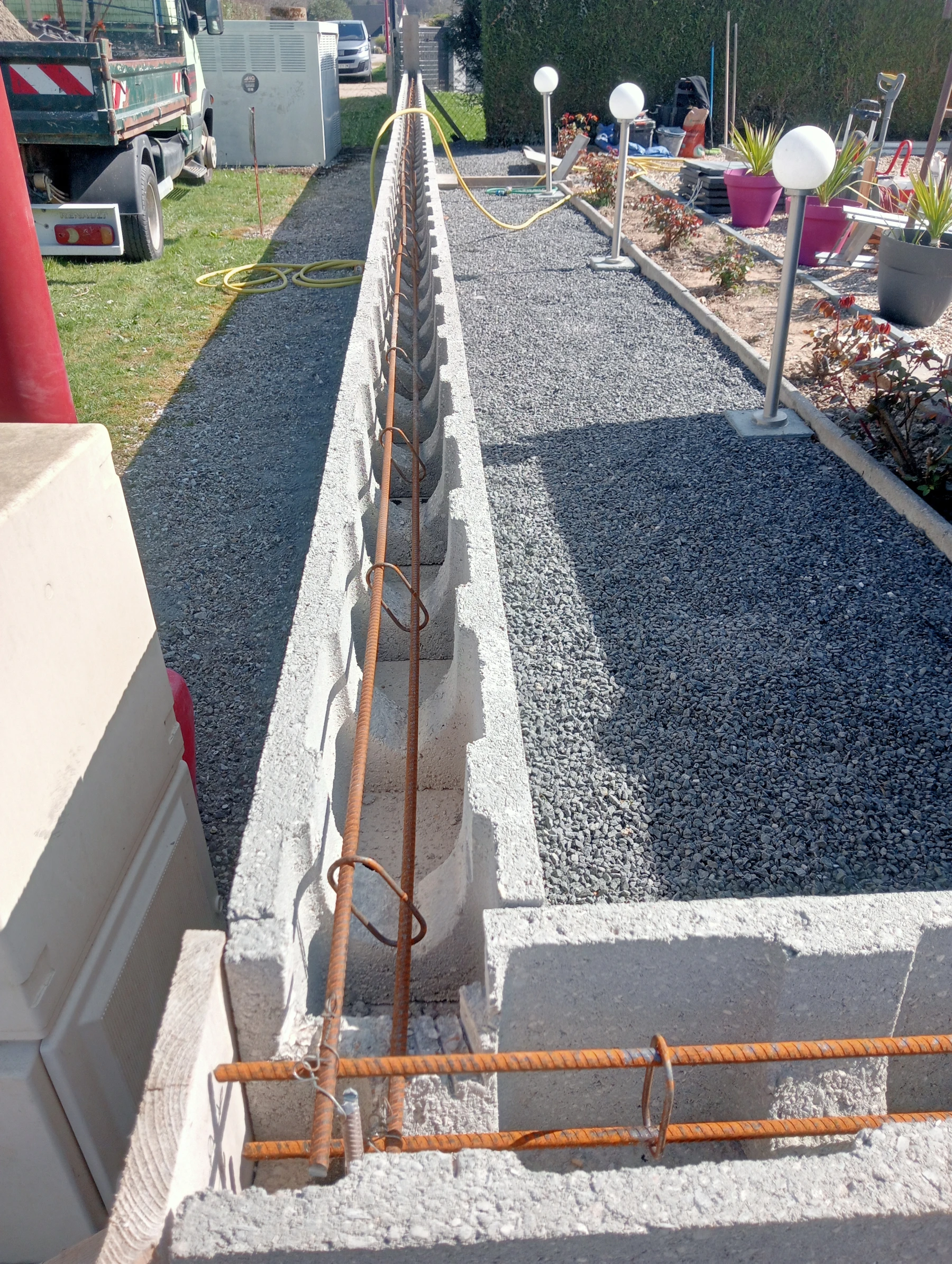 Pose d'une cloture rigide avec soubassement chantier secteur grand couronne