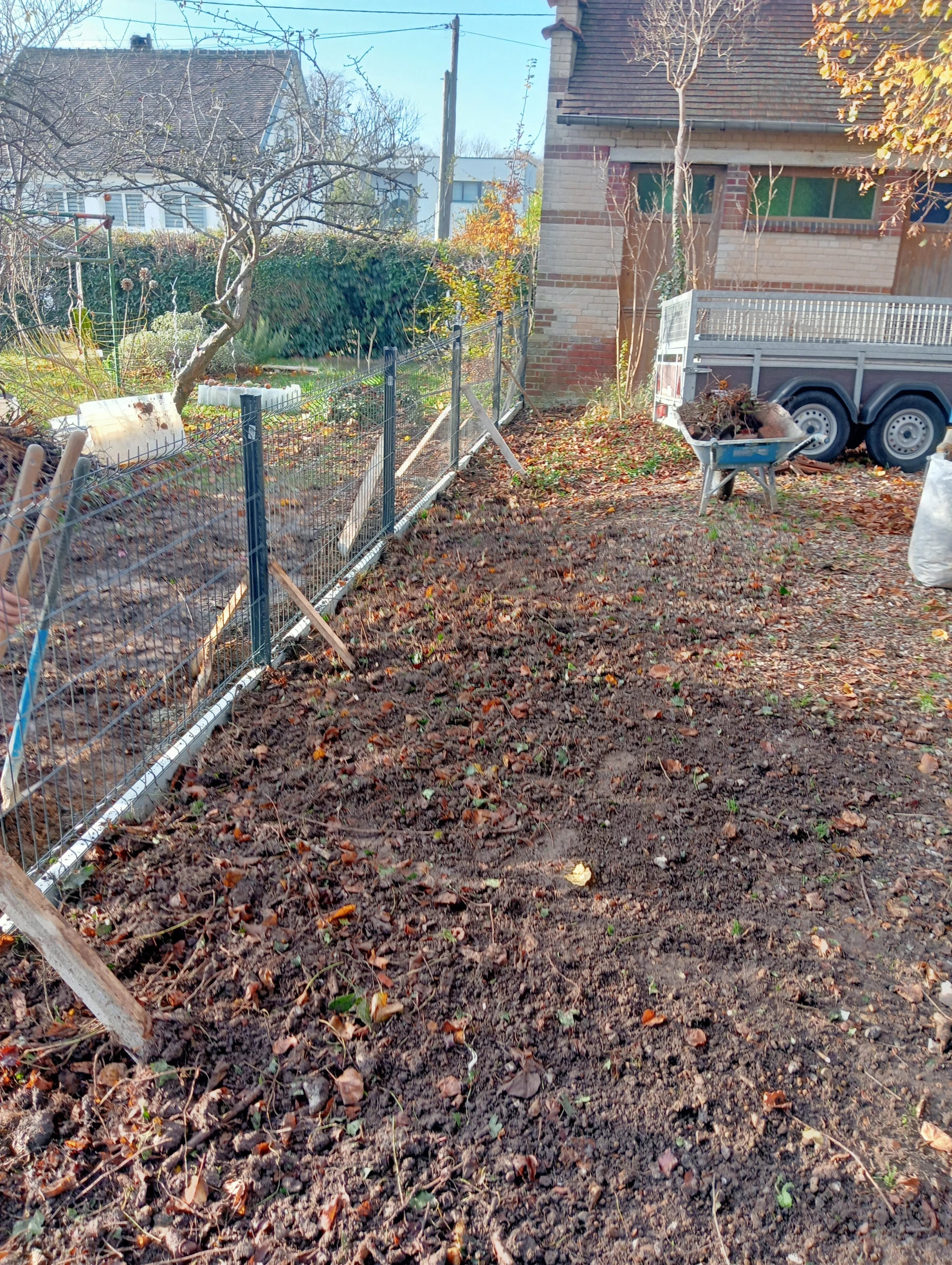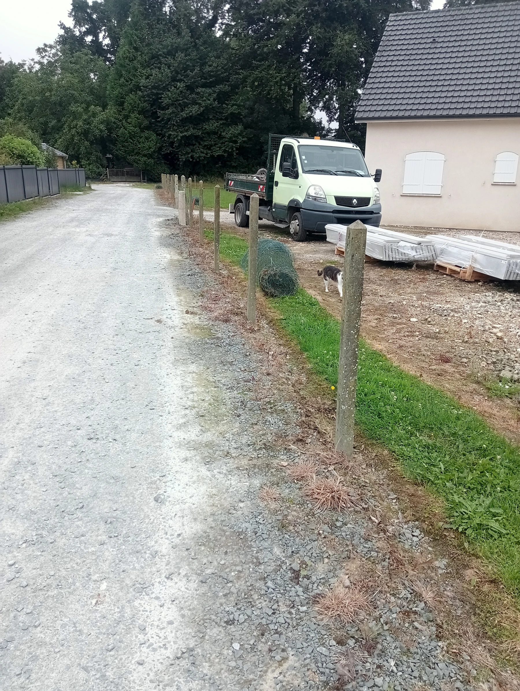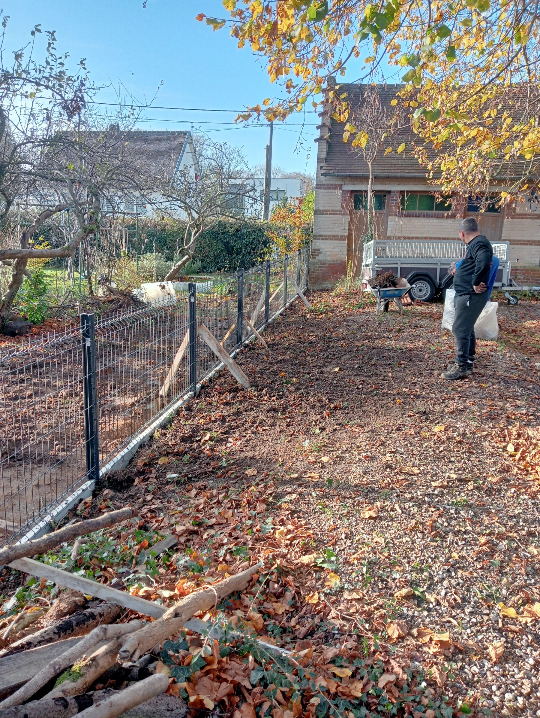 Travaux d'aménagement extérieure et enlèvement de l'ancienne cloture avec mise en place d'une nouvelle colture rigide chantier secteur auzouville l'esneval 76760