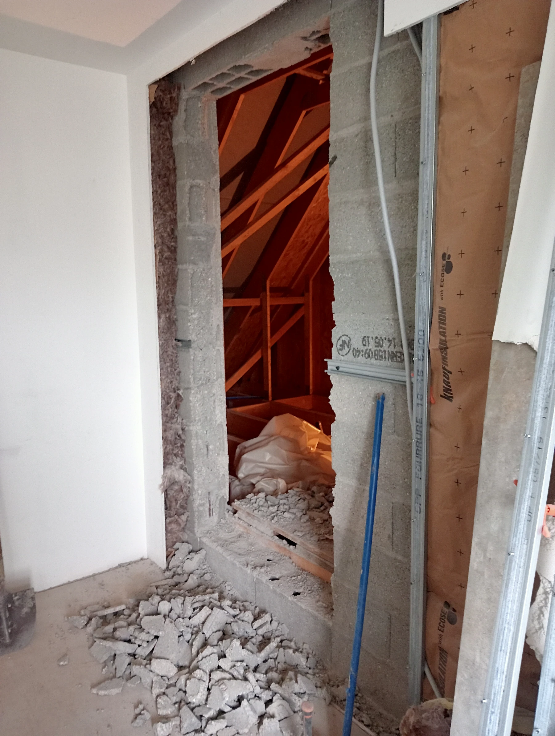 Ouverture dans un pignon pour accéder au grenier chantier roumarre