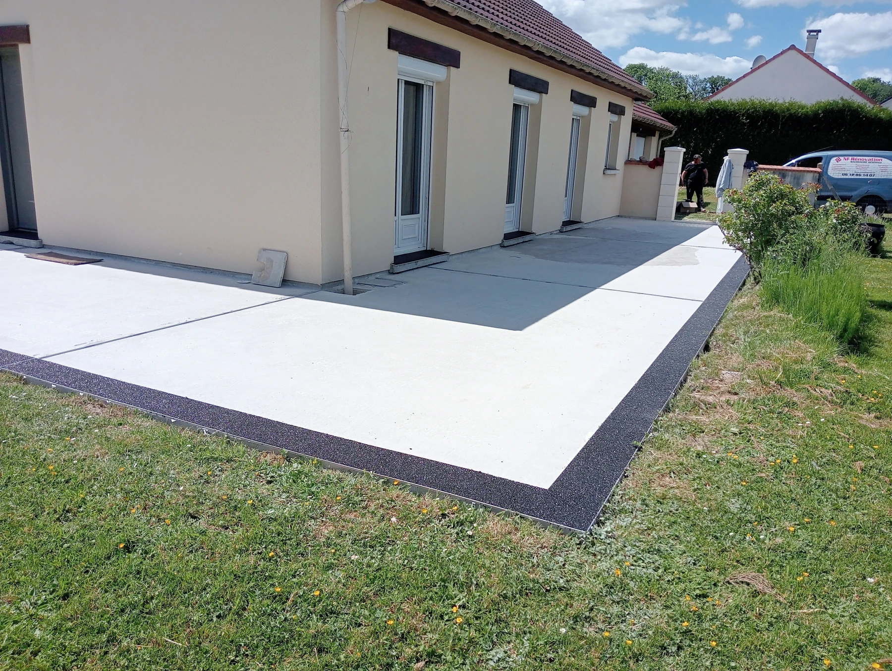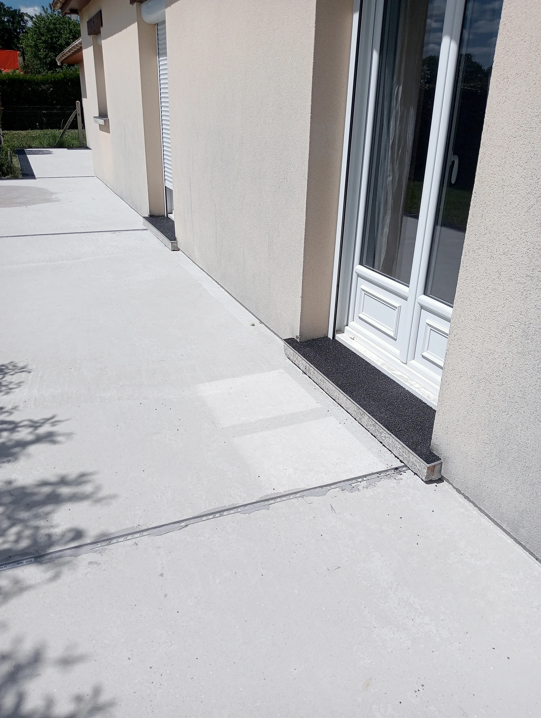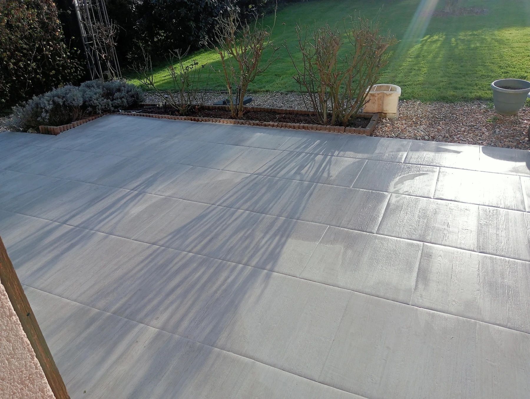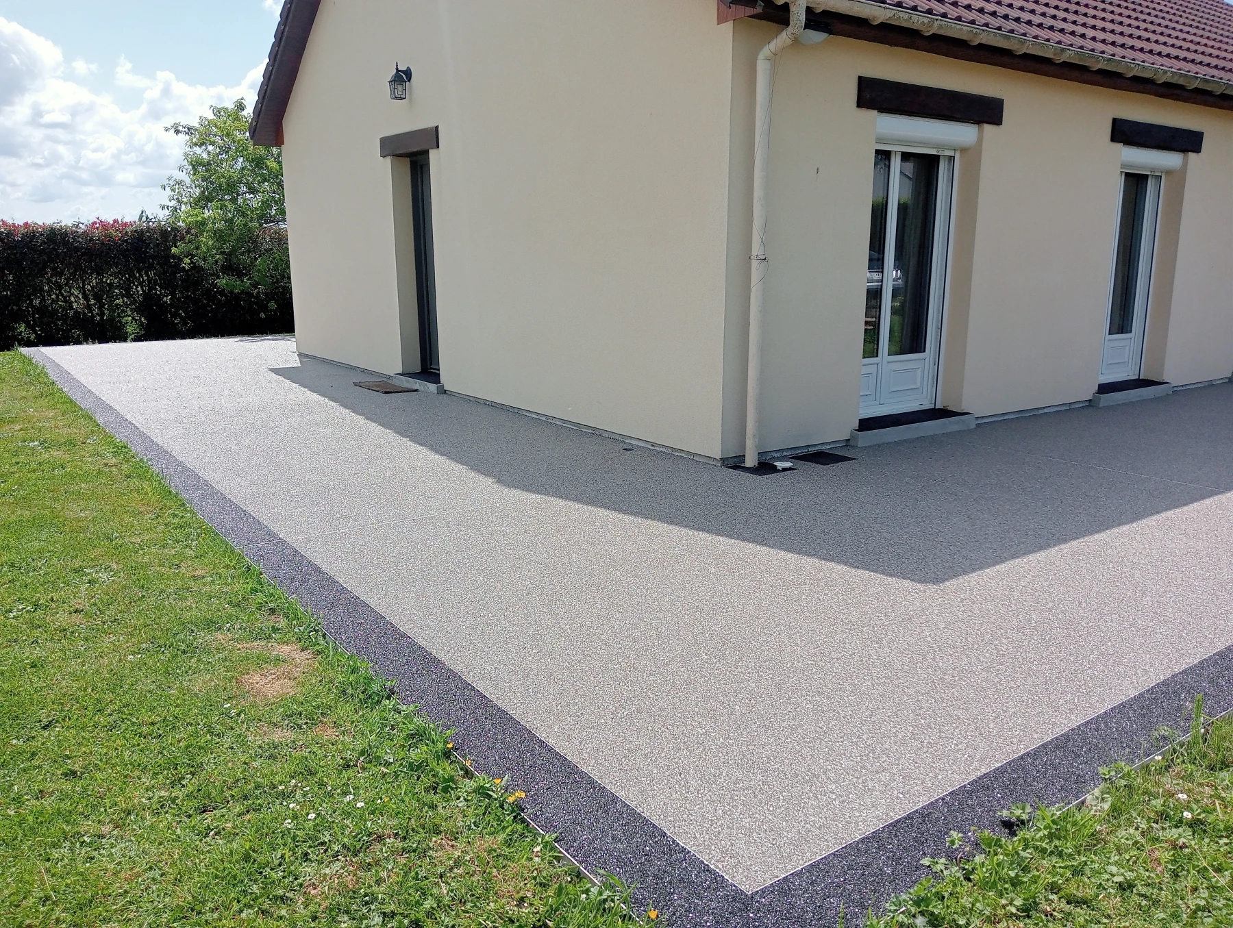 travaux de béton désactivé sur une entrée carrossable et terrasse