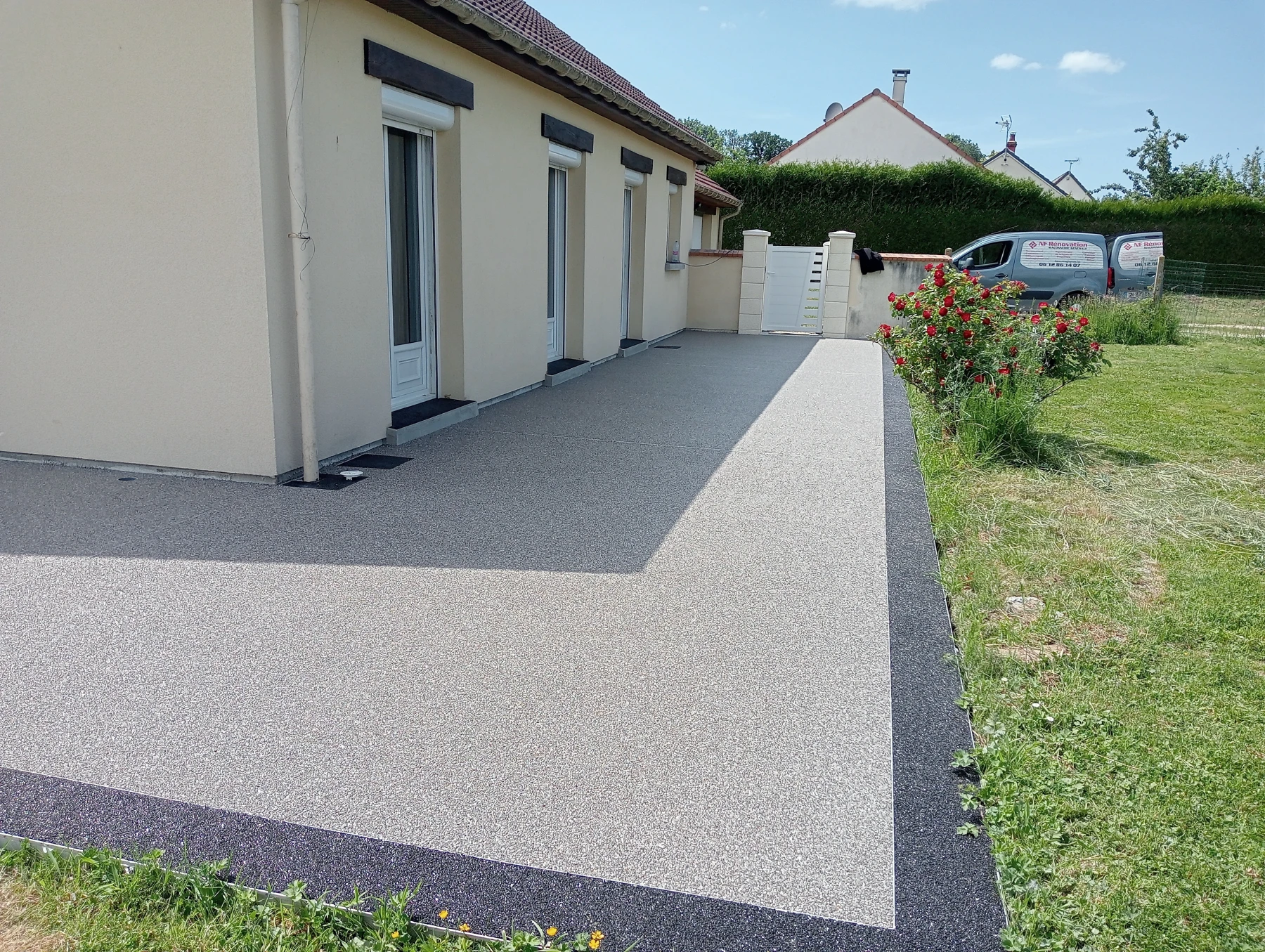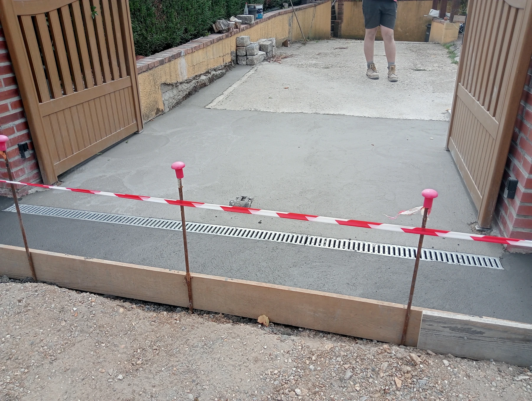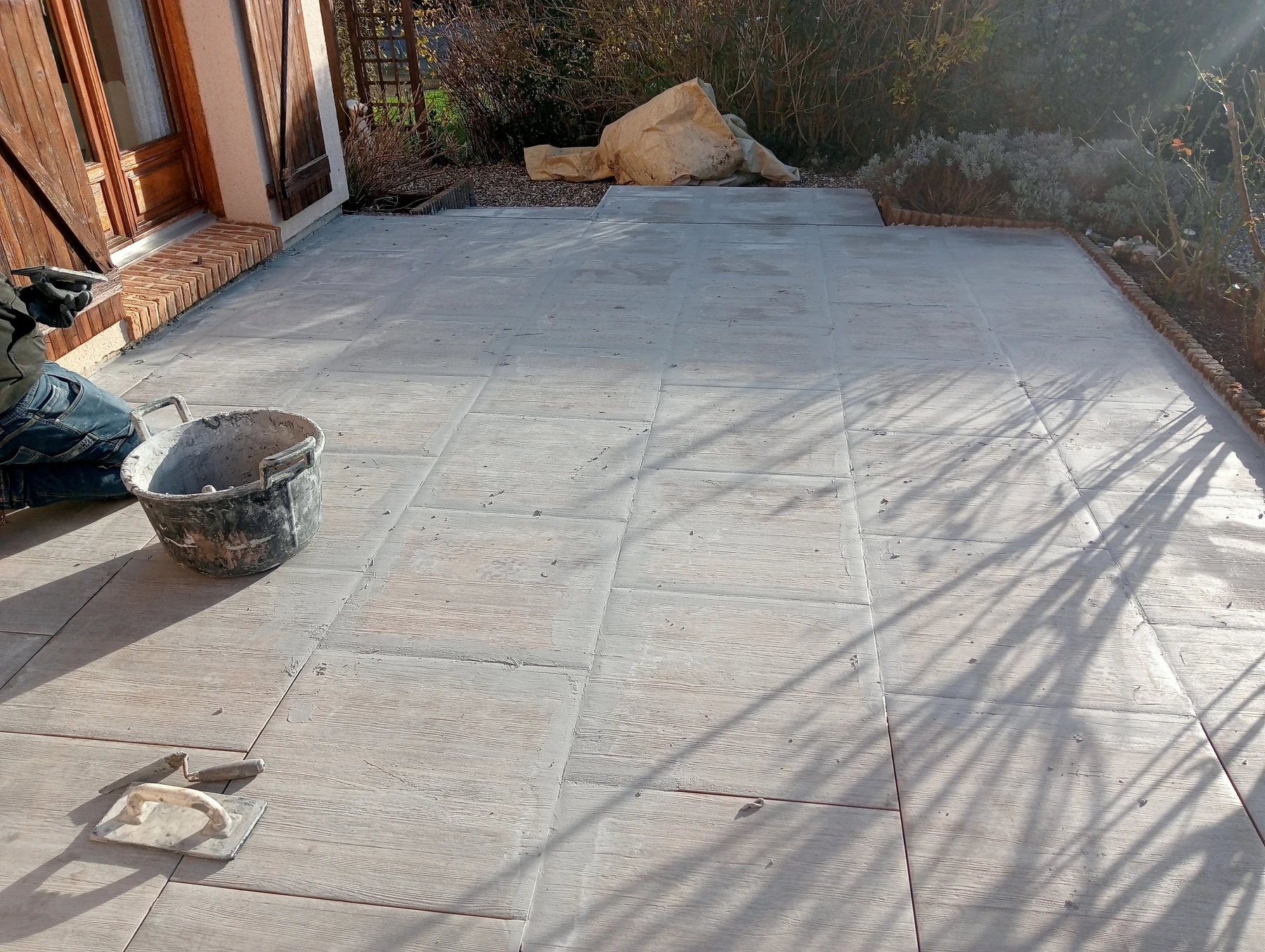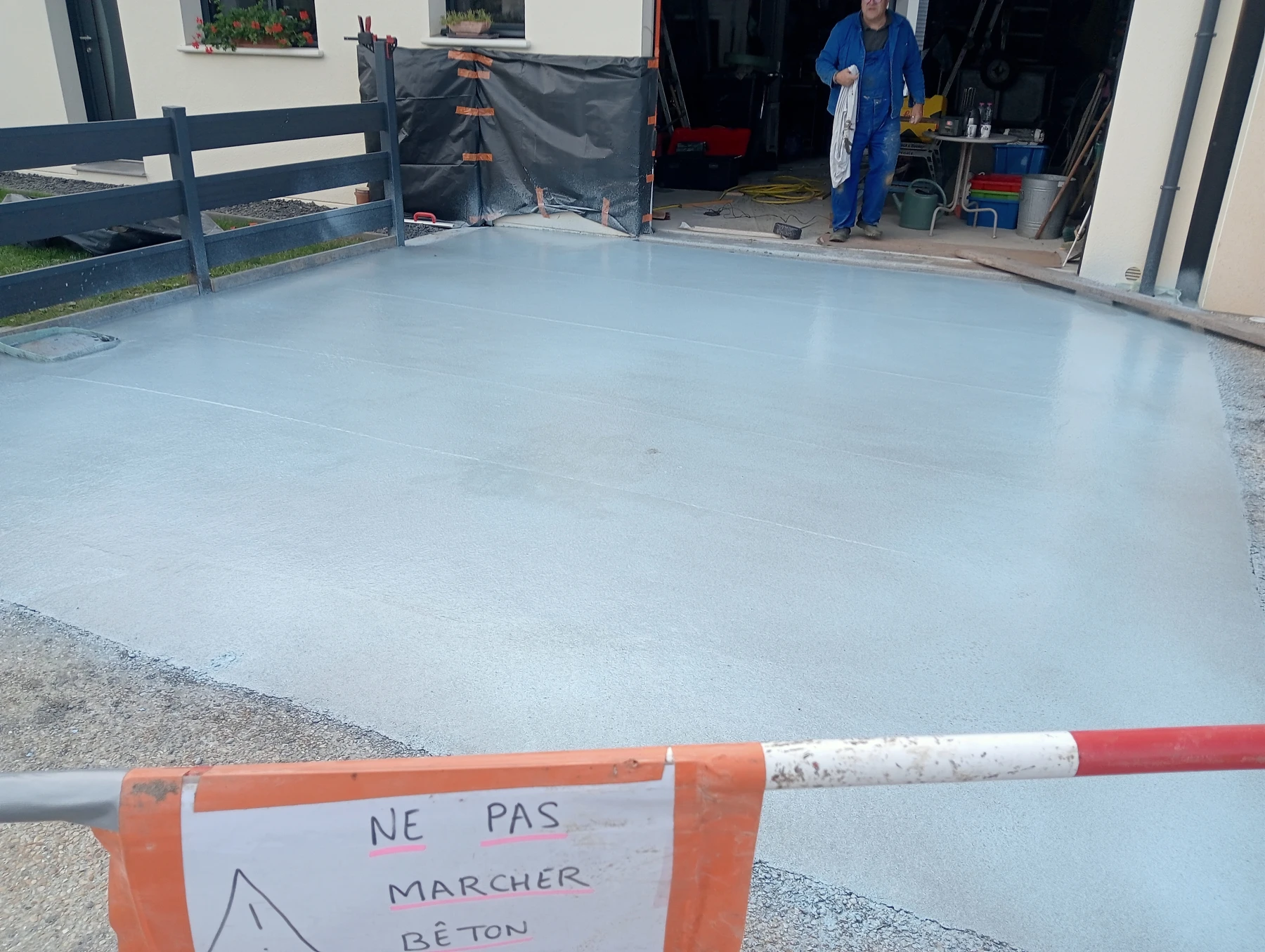 travaux de béton désactivé sur une entrée carrossable et terrasse