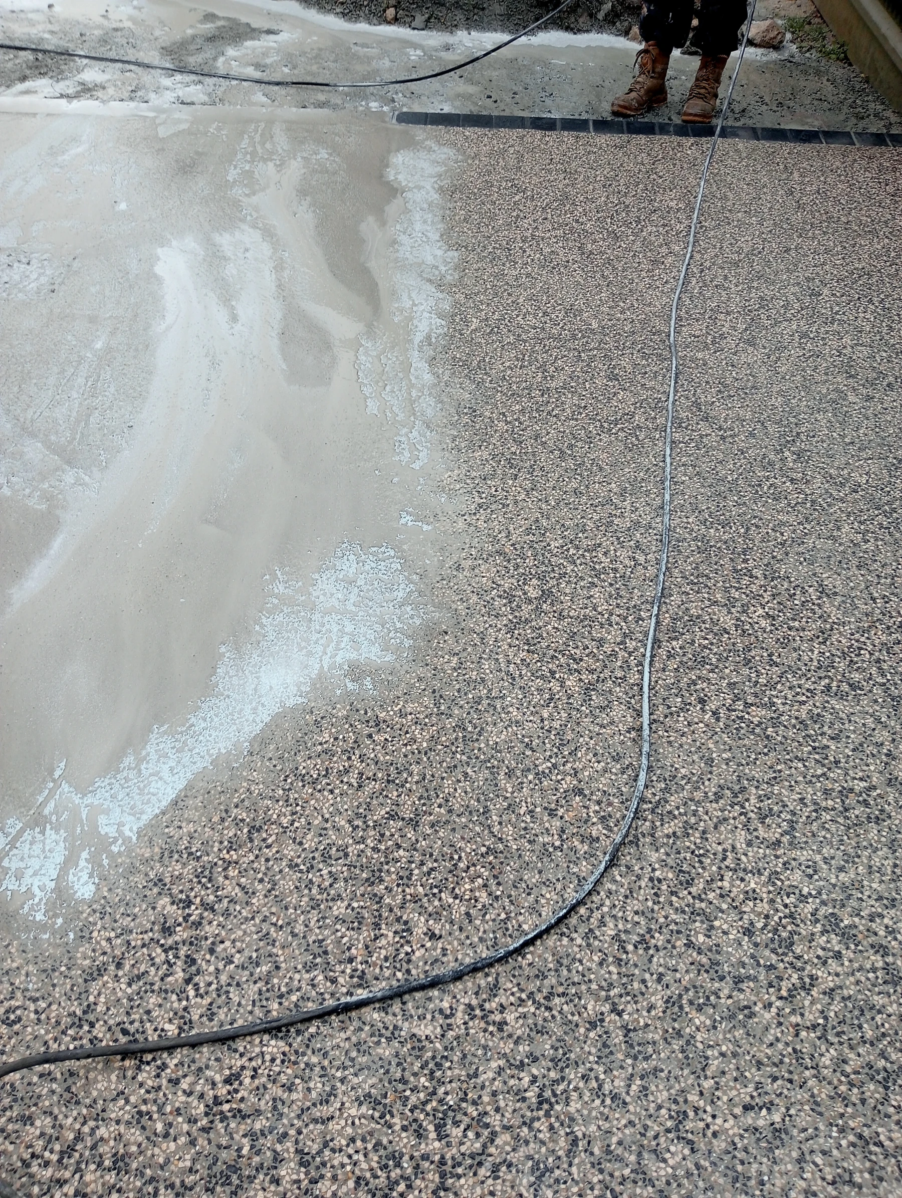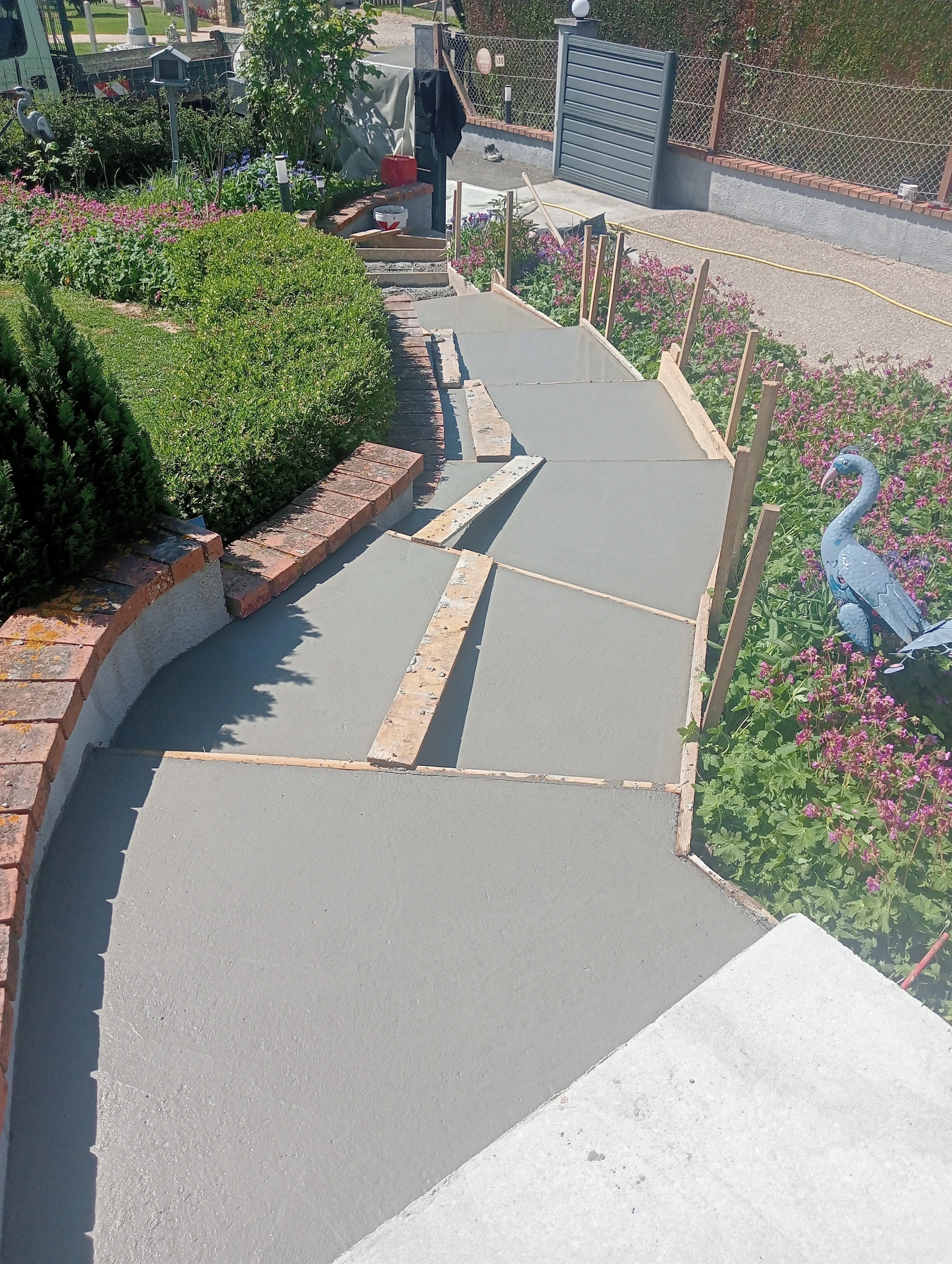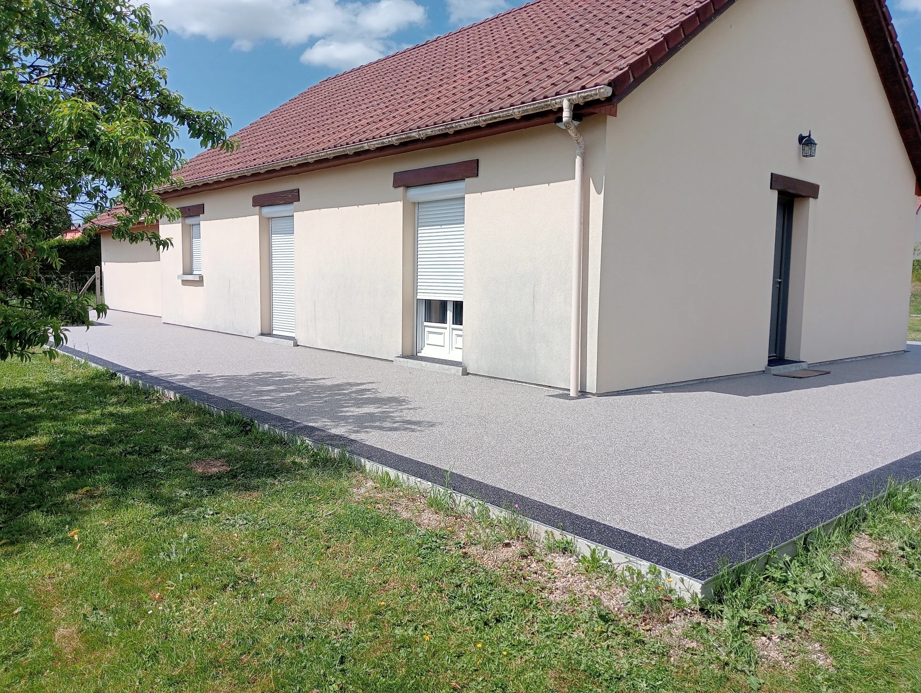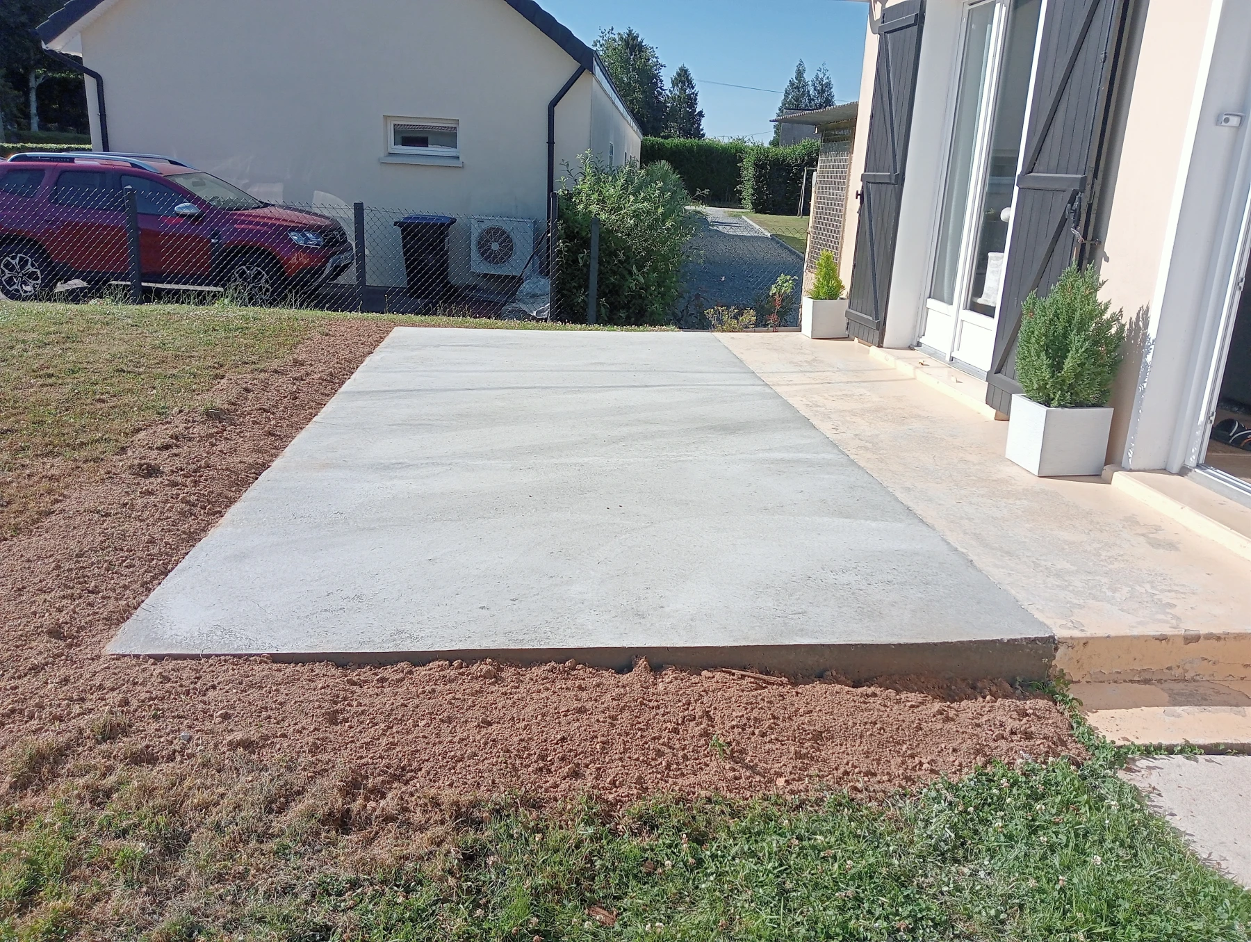 travaux de béton désactivé sur une entrée carrossable et terrasse