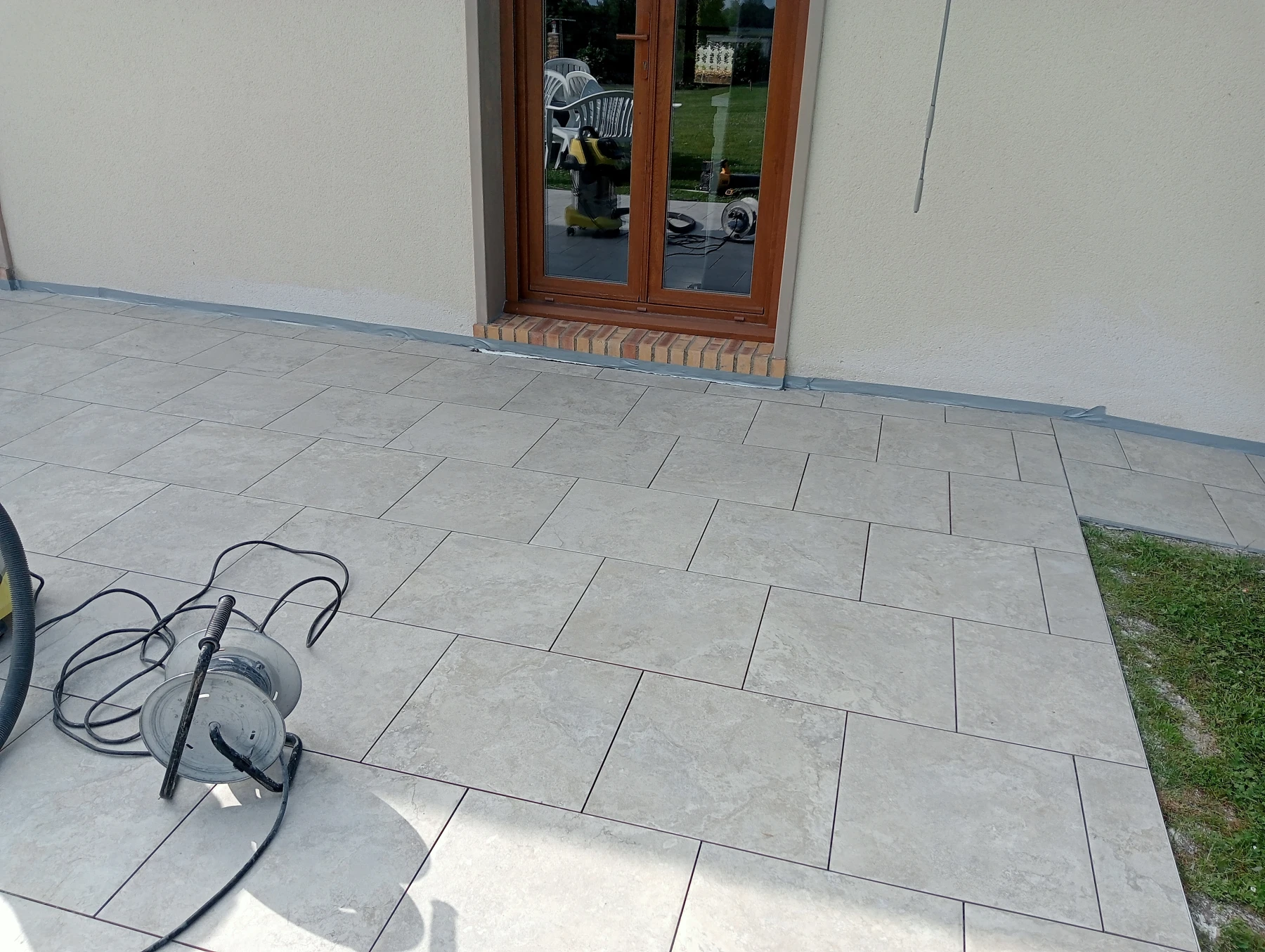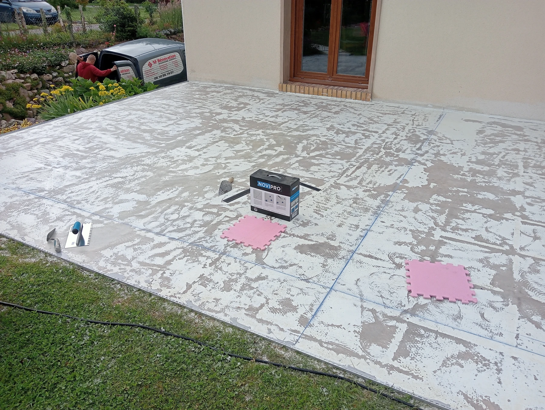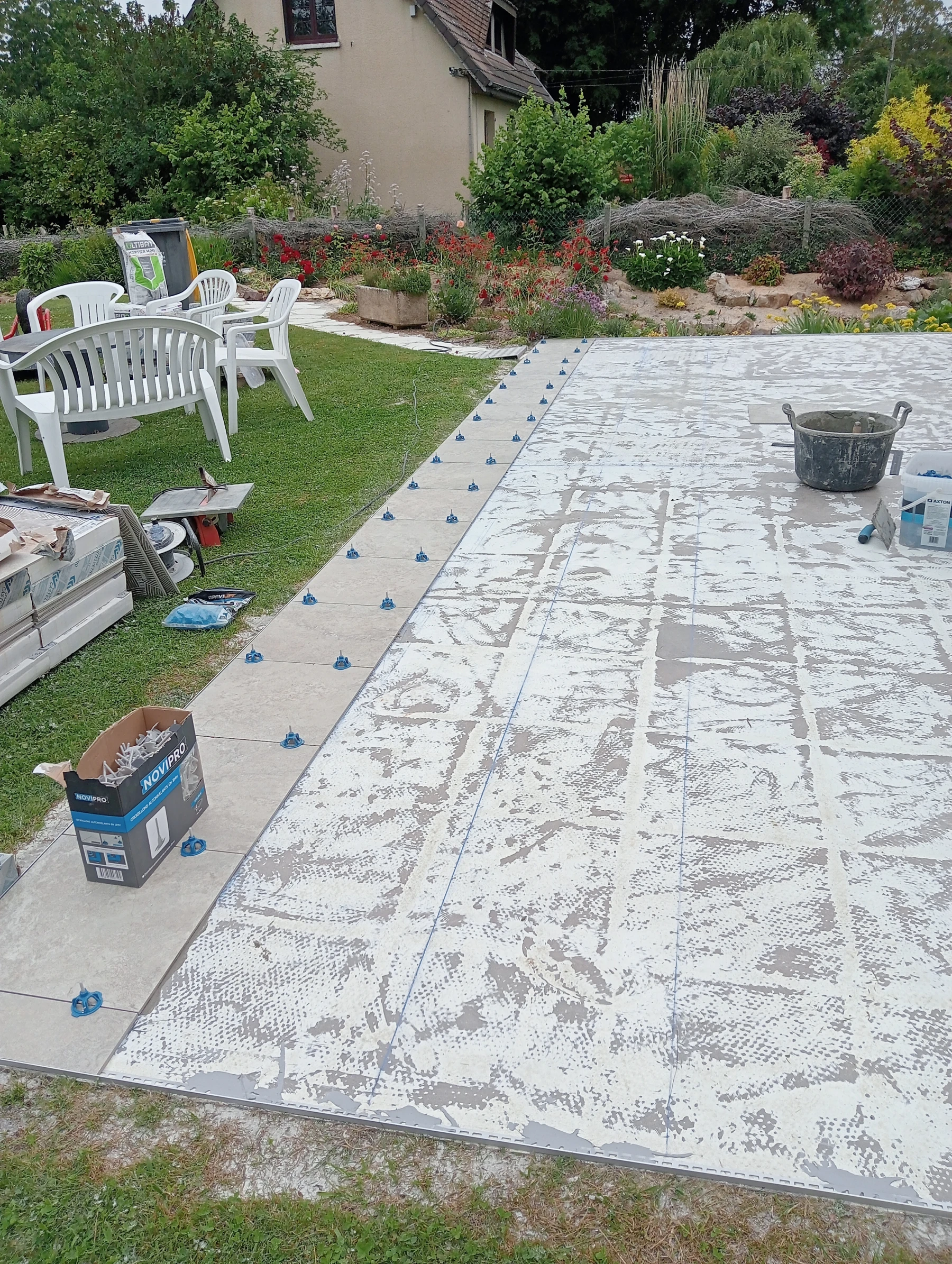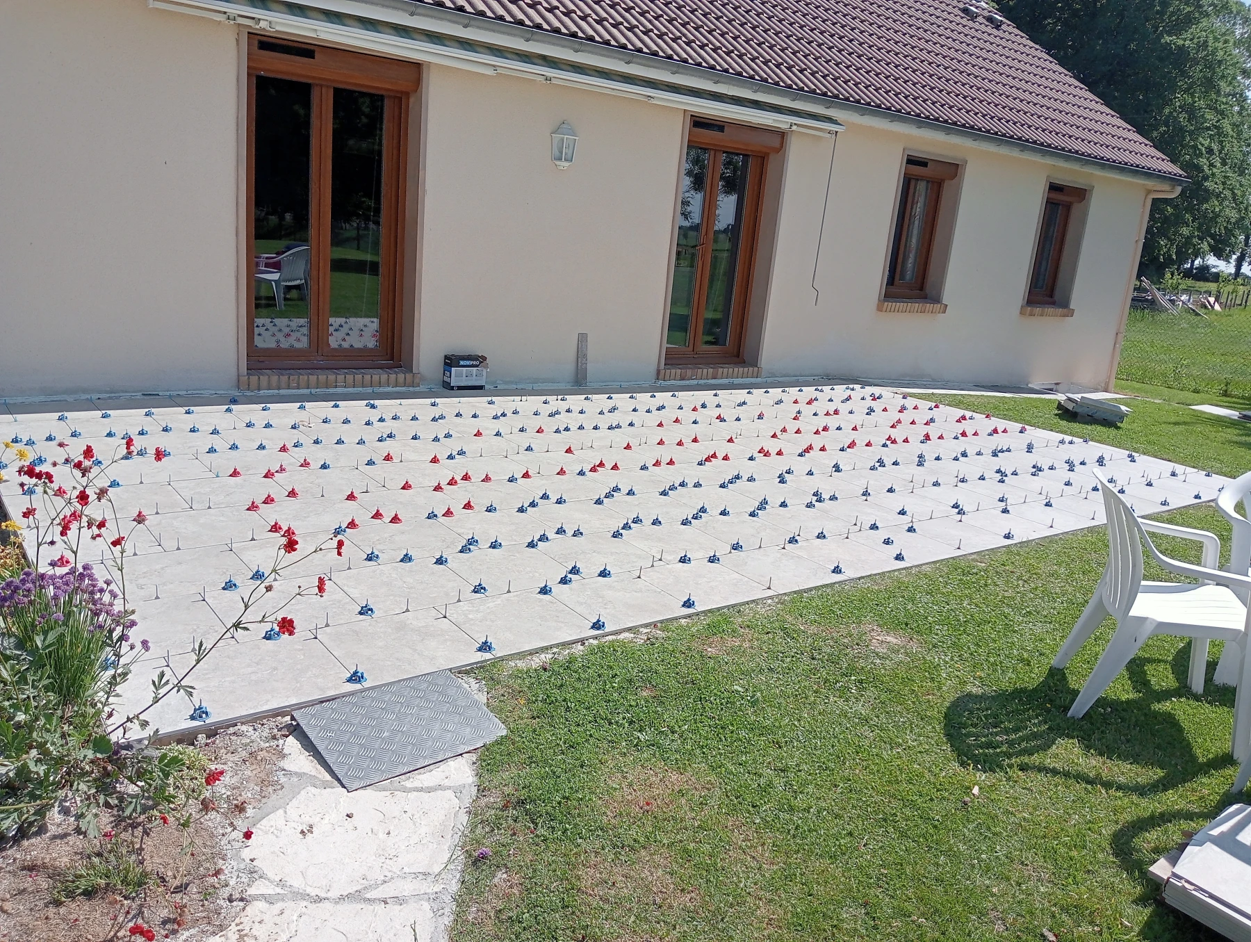 Pose d'un carrelage 60*60 en extérieur Chantier sur MONTMAIN