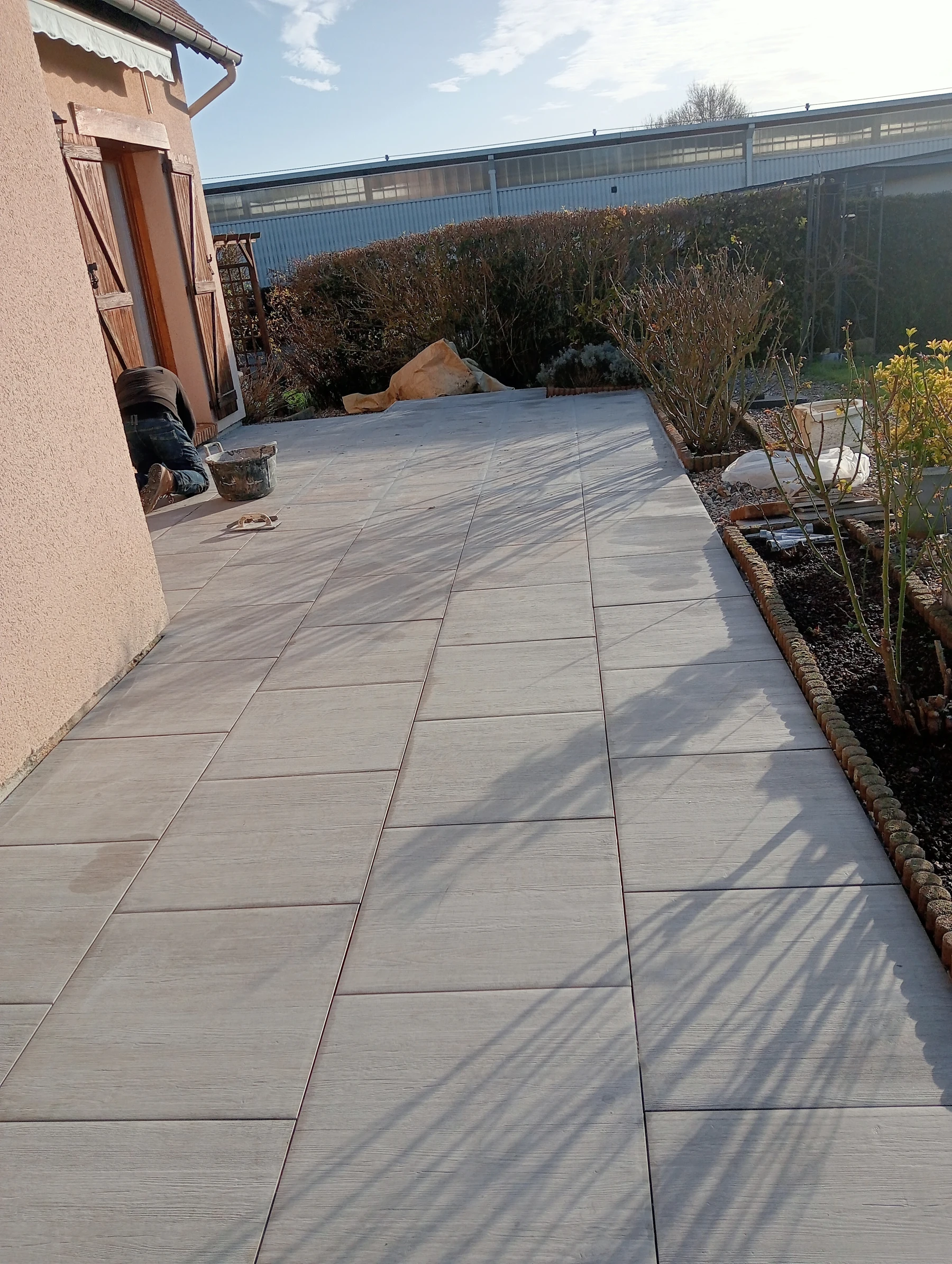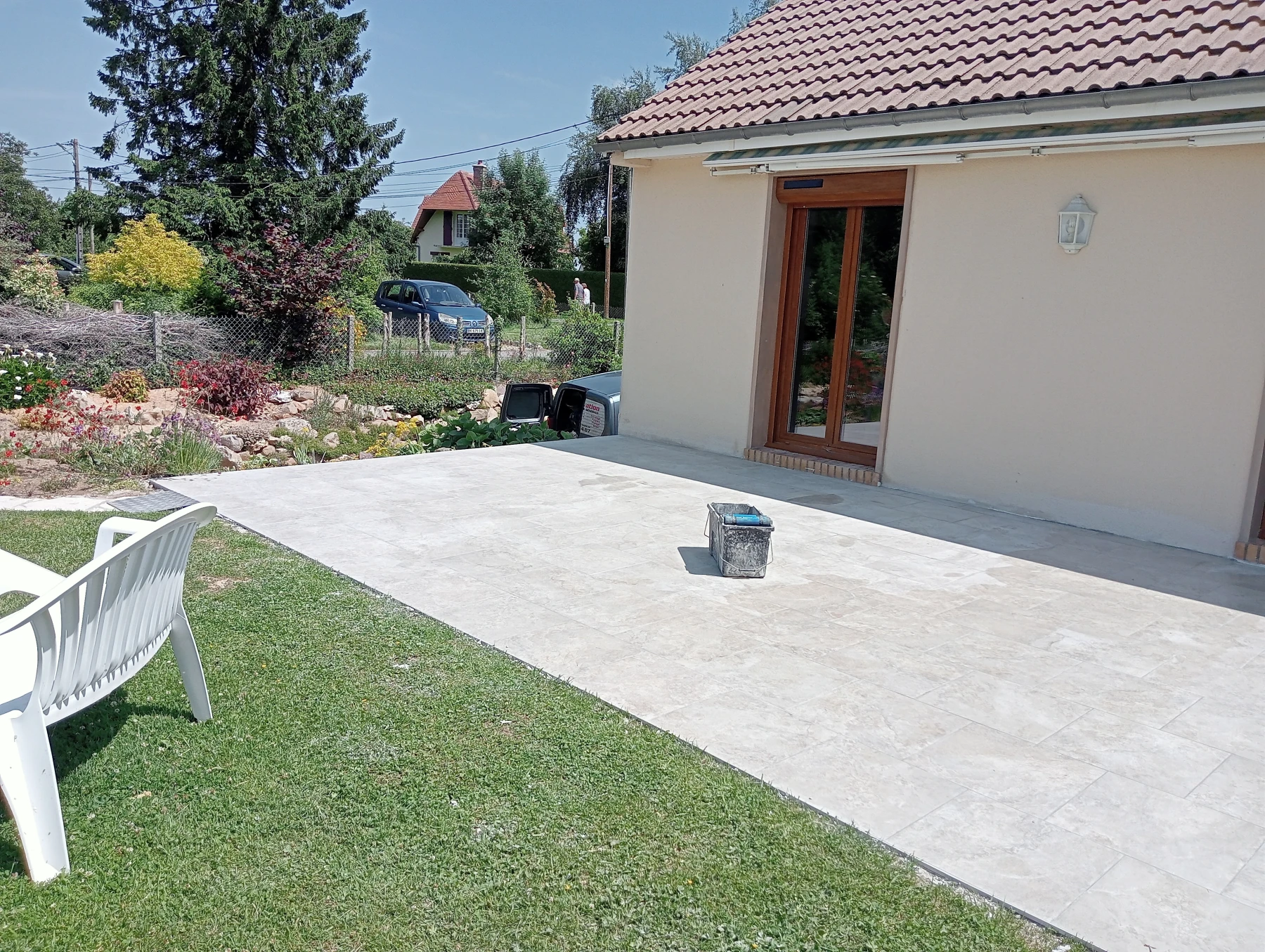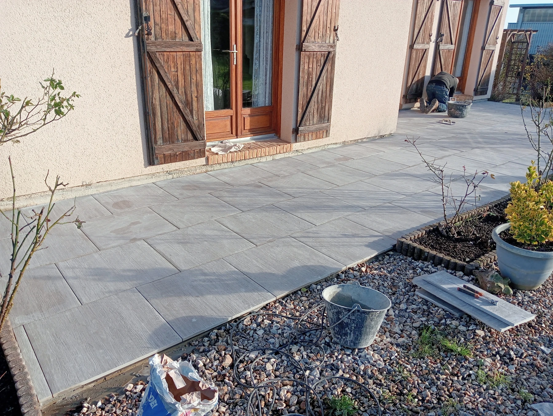 Pose d'un carrelage 60*60 en extérieur Chantier sur MONTMAIN