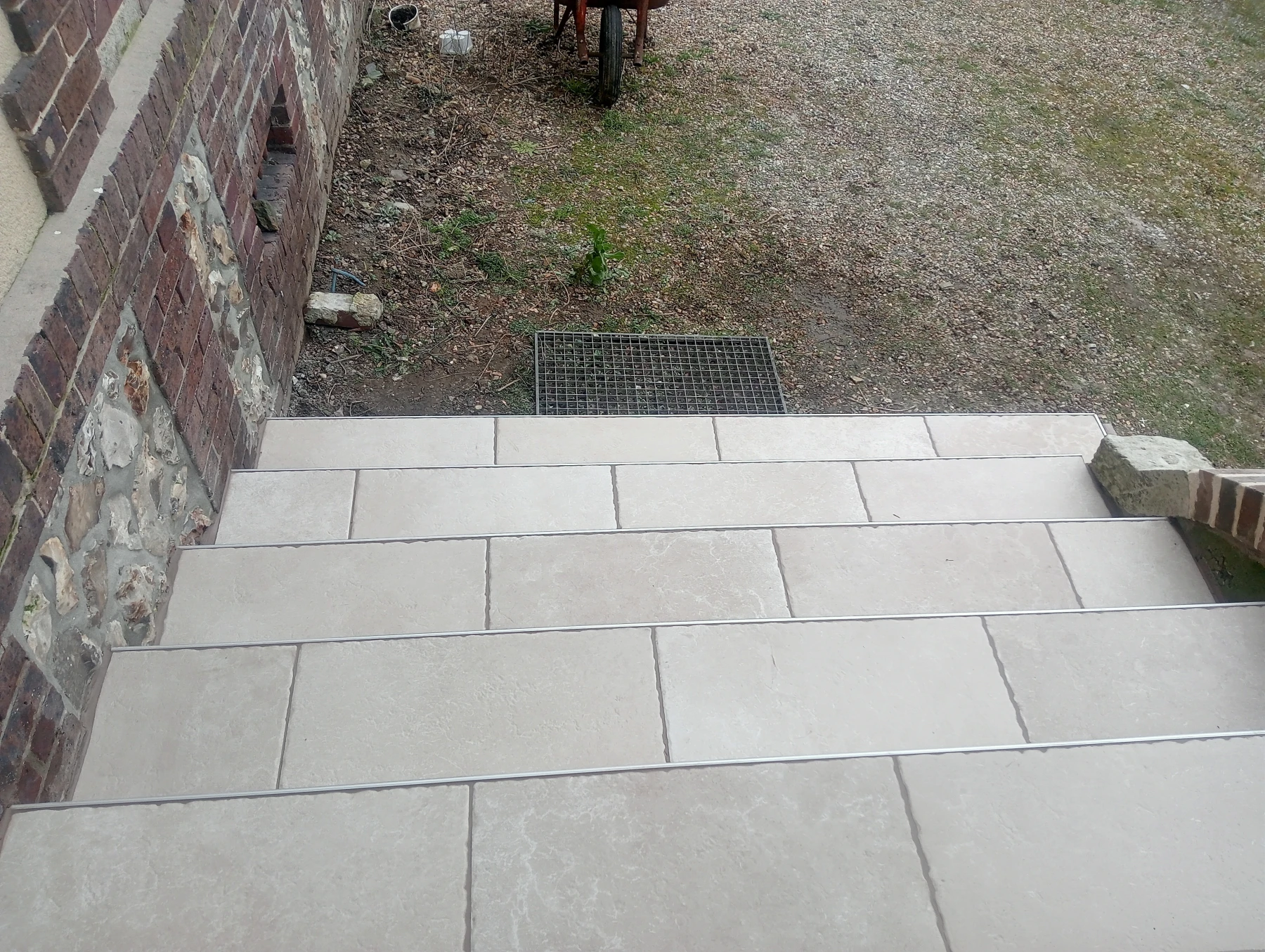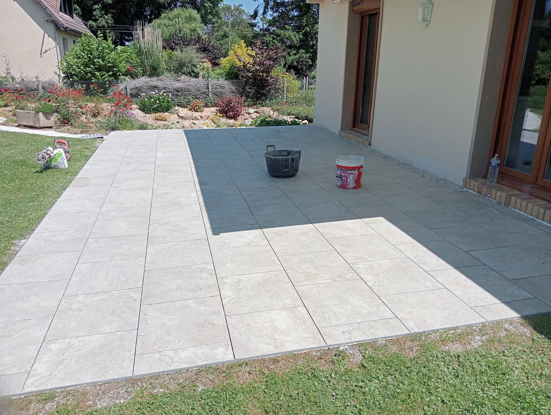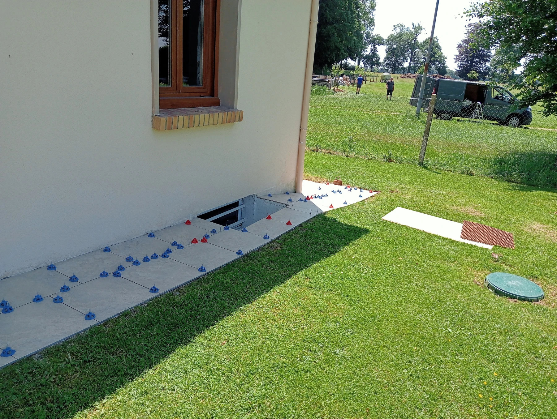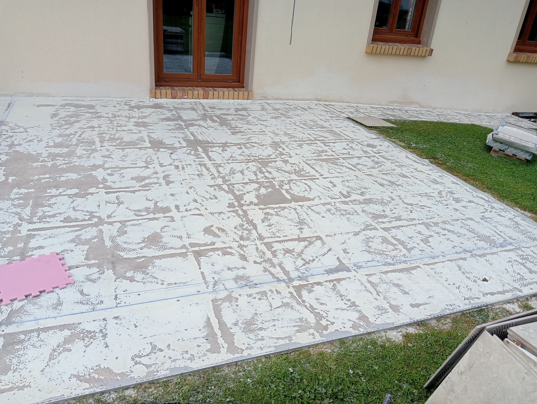 Pose d'un carrelage 60*60 en extérieur Chantier sur MONTMAIN