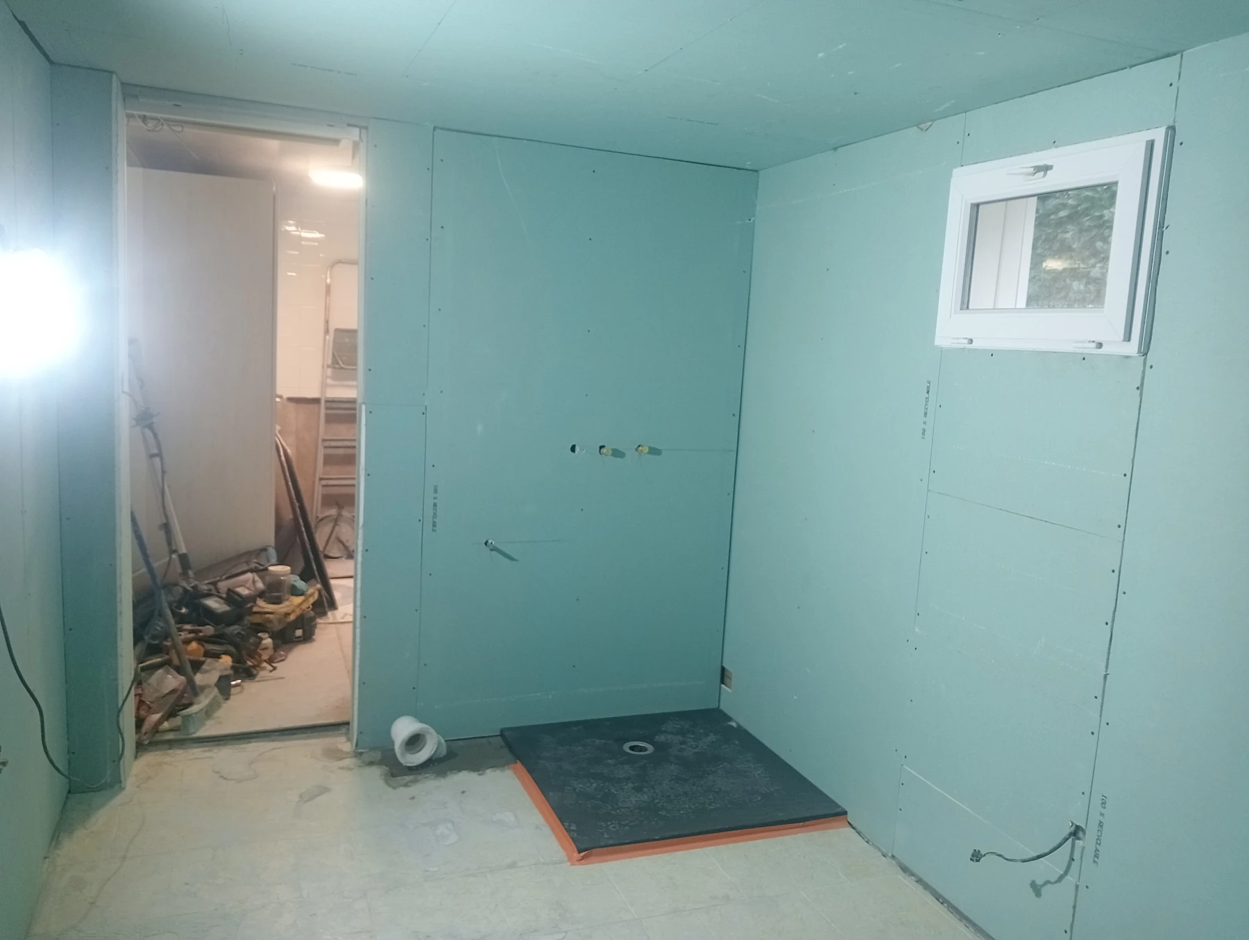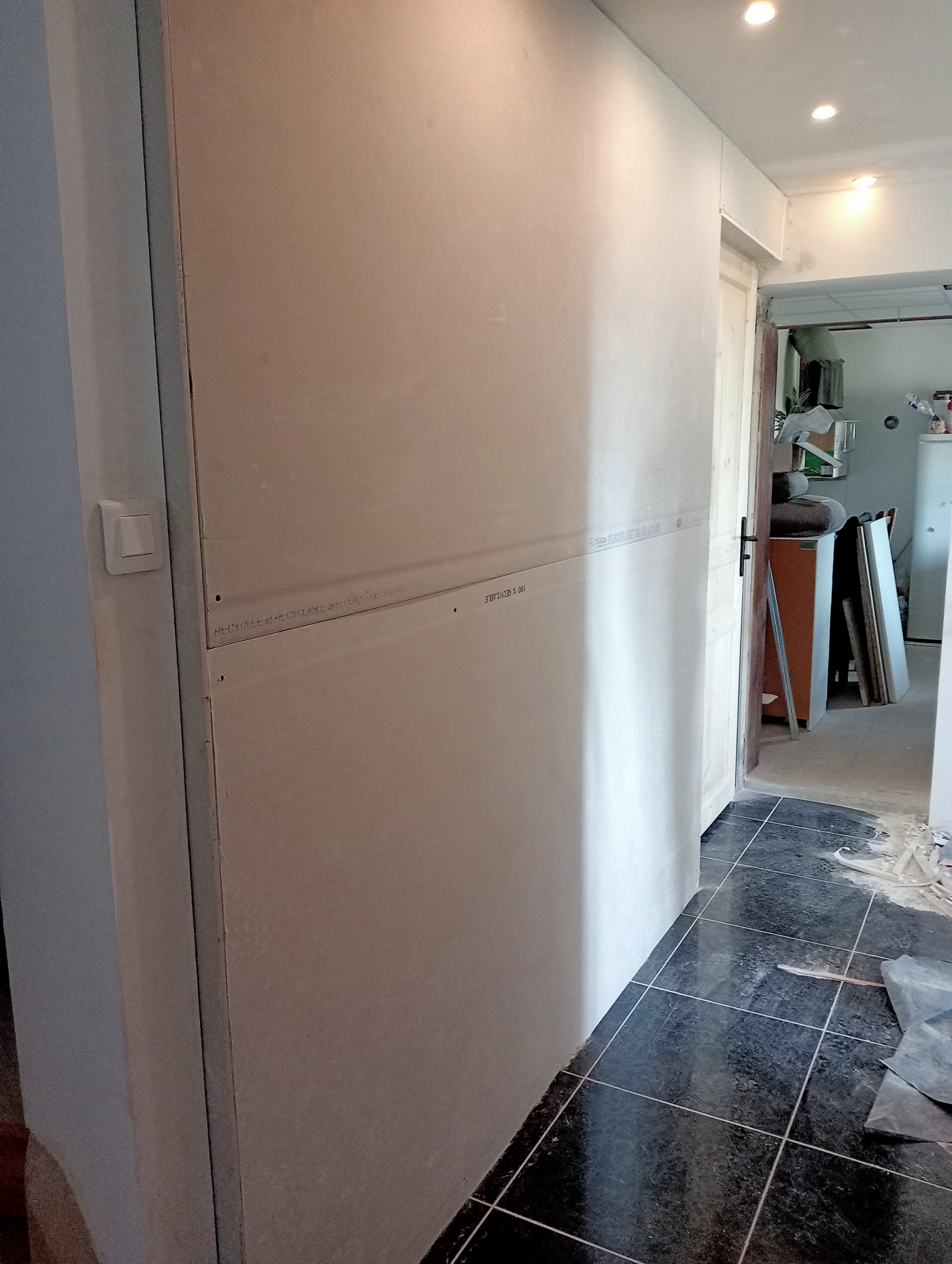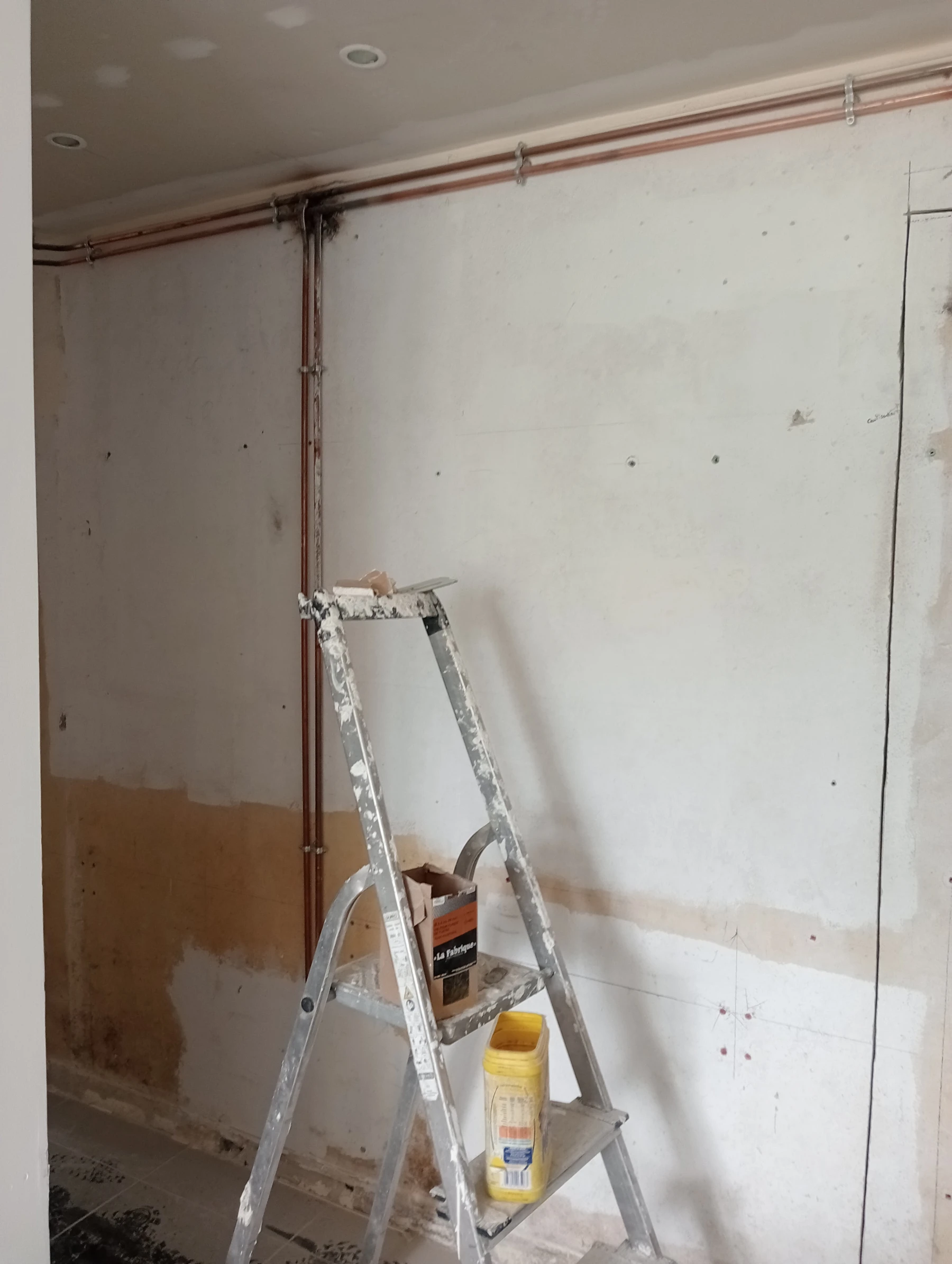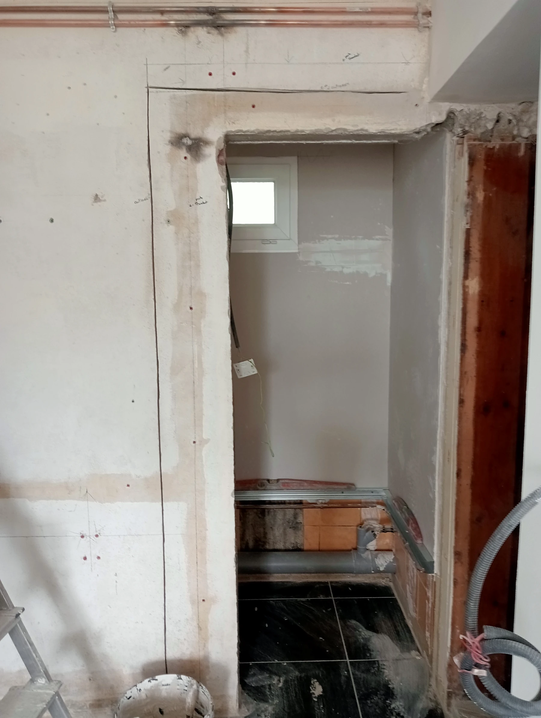 Rénovation dans un toilette et sur un mur coté couloir