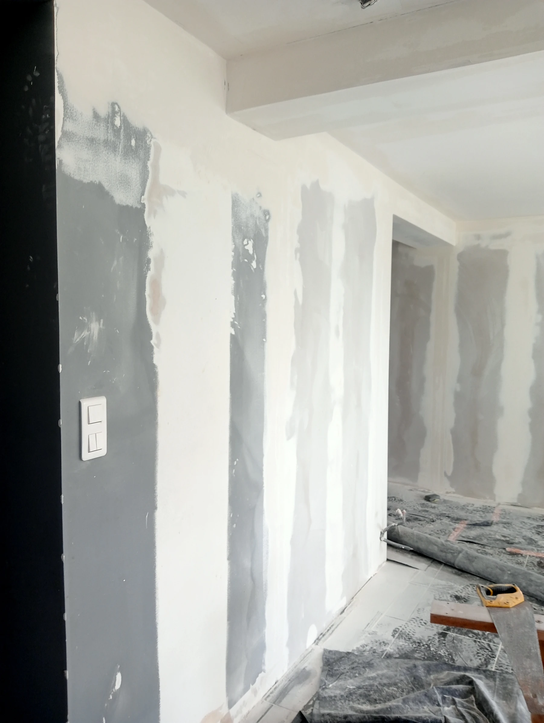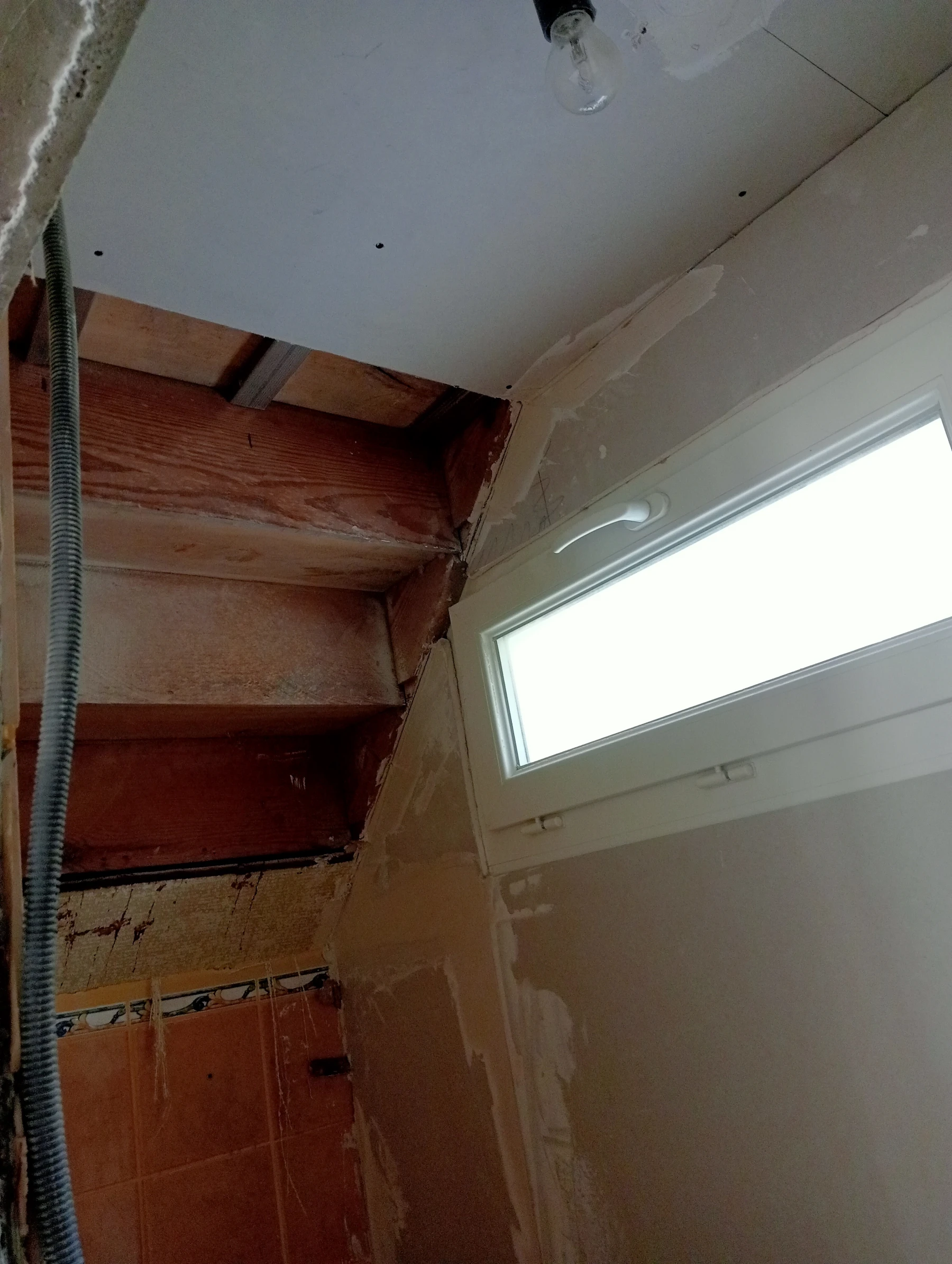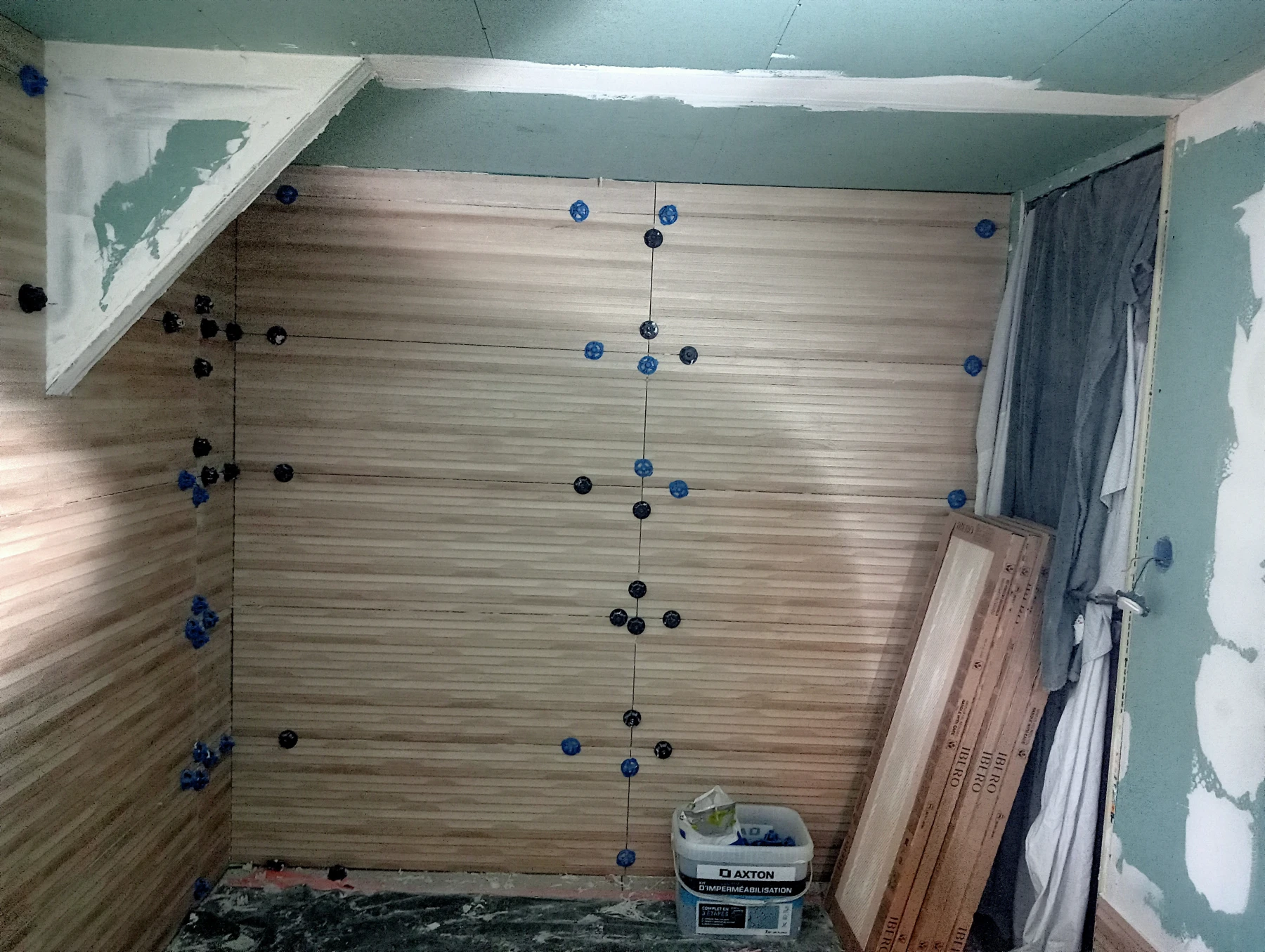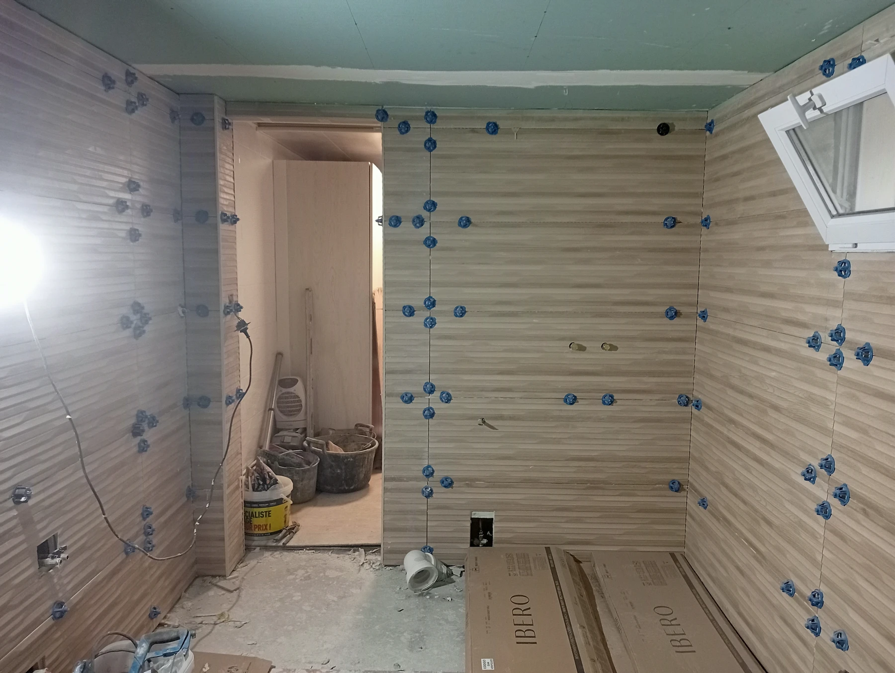 Rénovation dans un toilette et sur un mur coté couloir