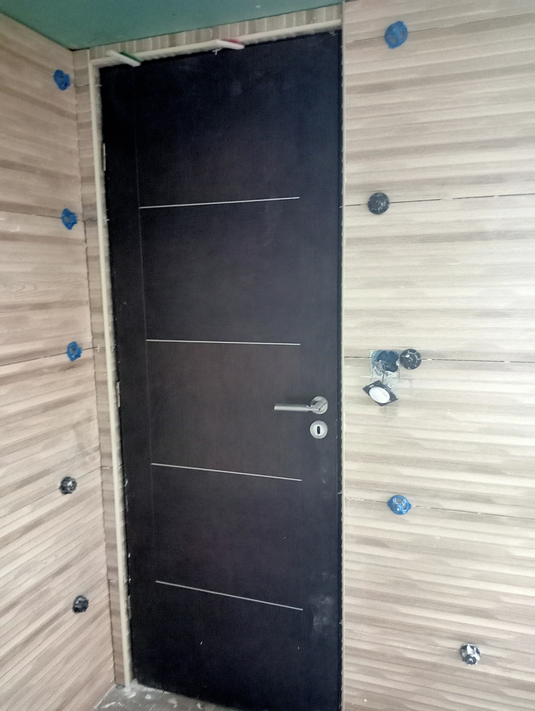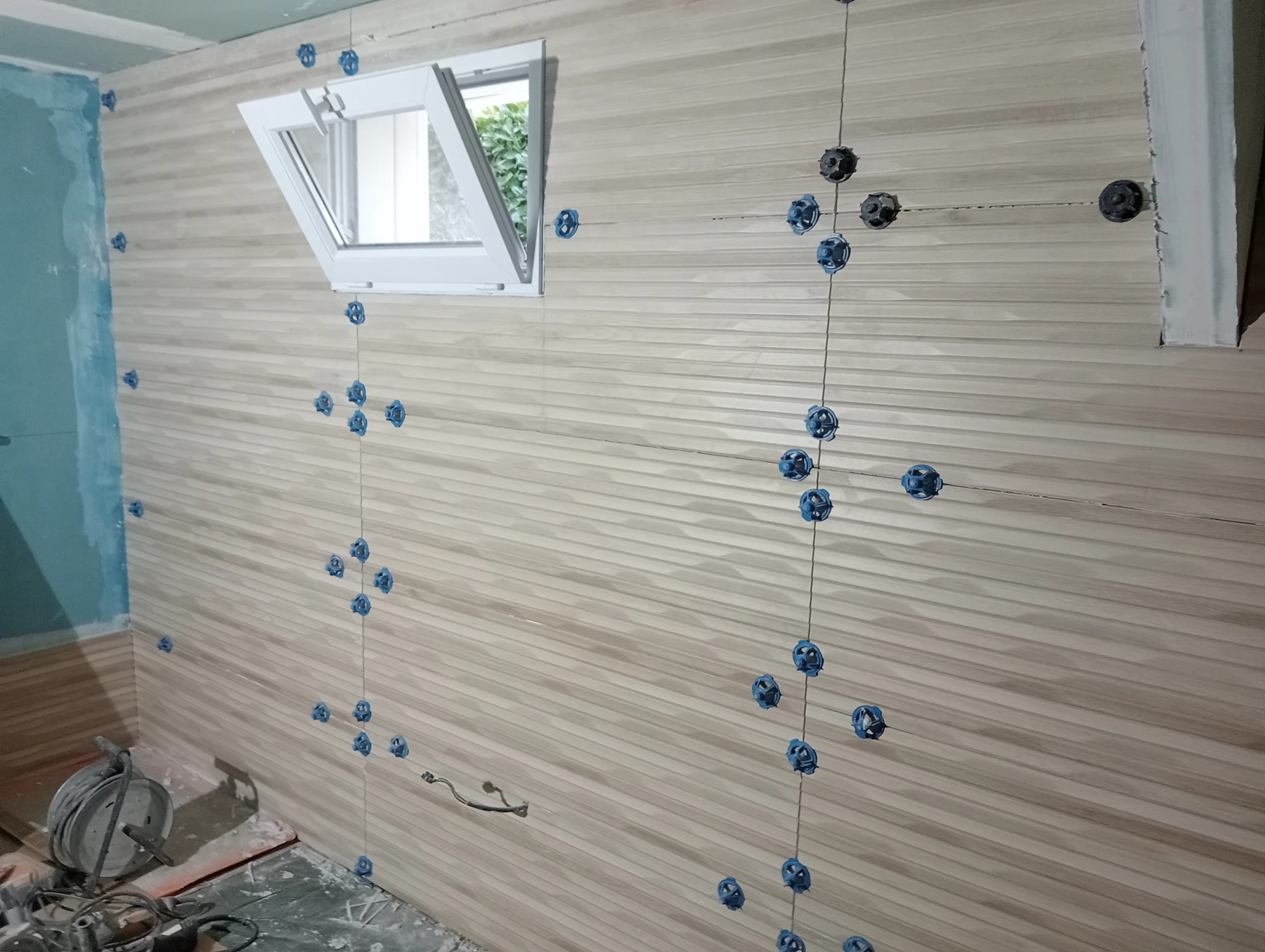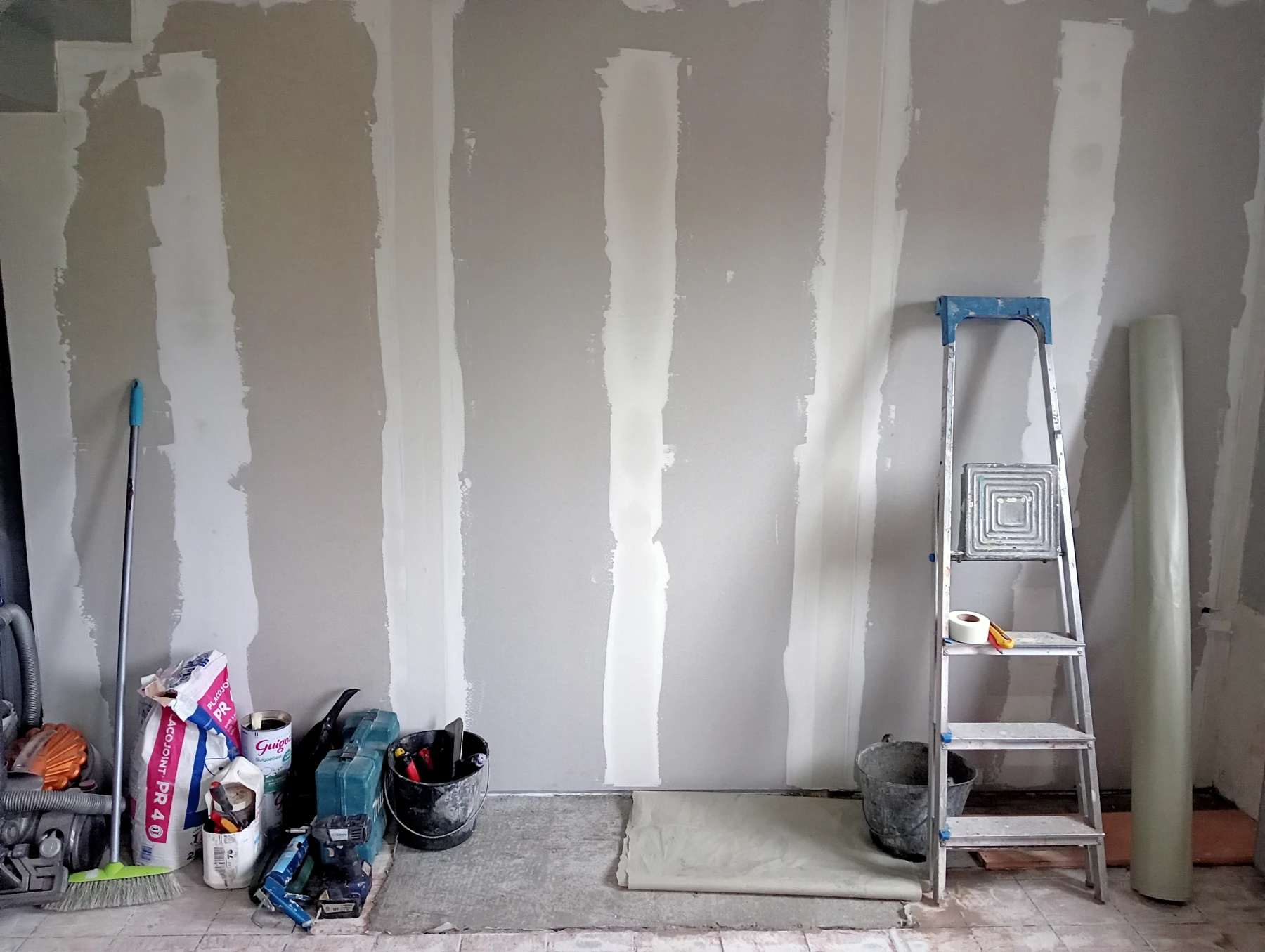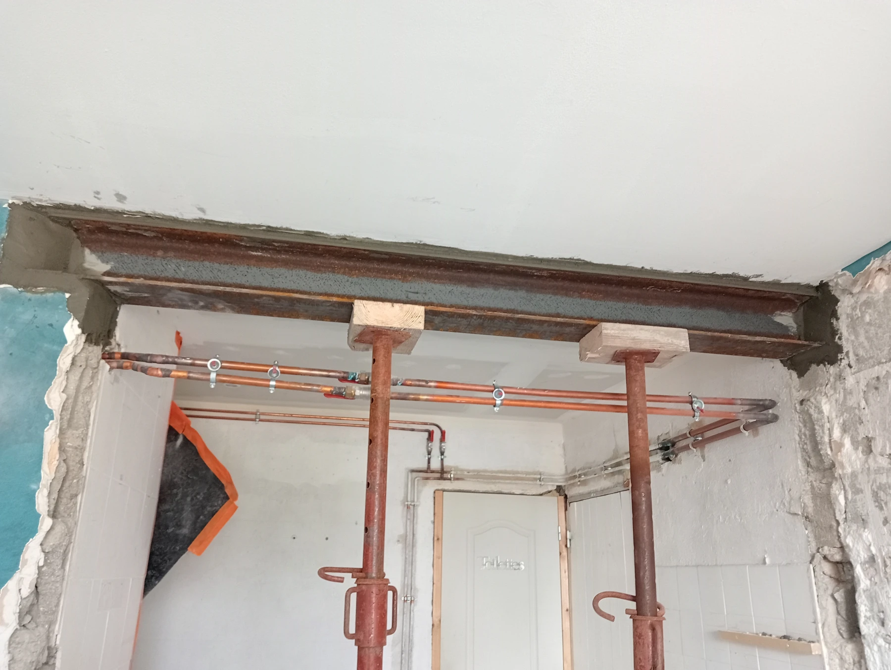 Rénovation dans un toilette et sur un mur coté couloir