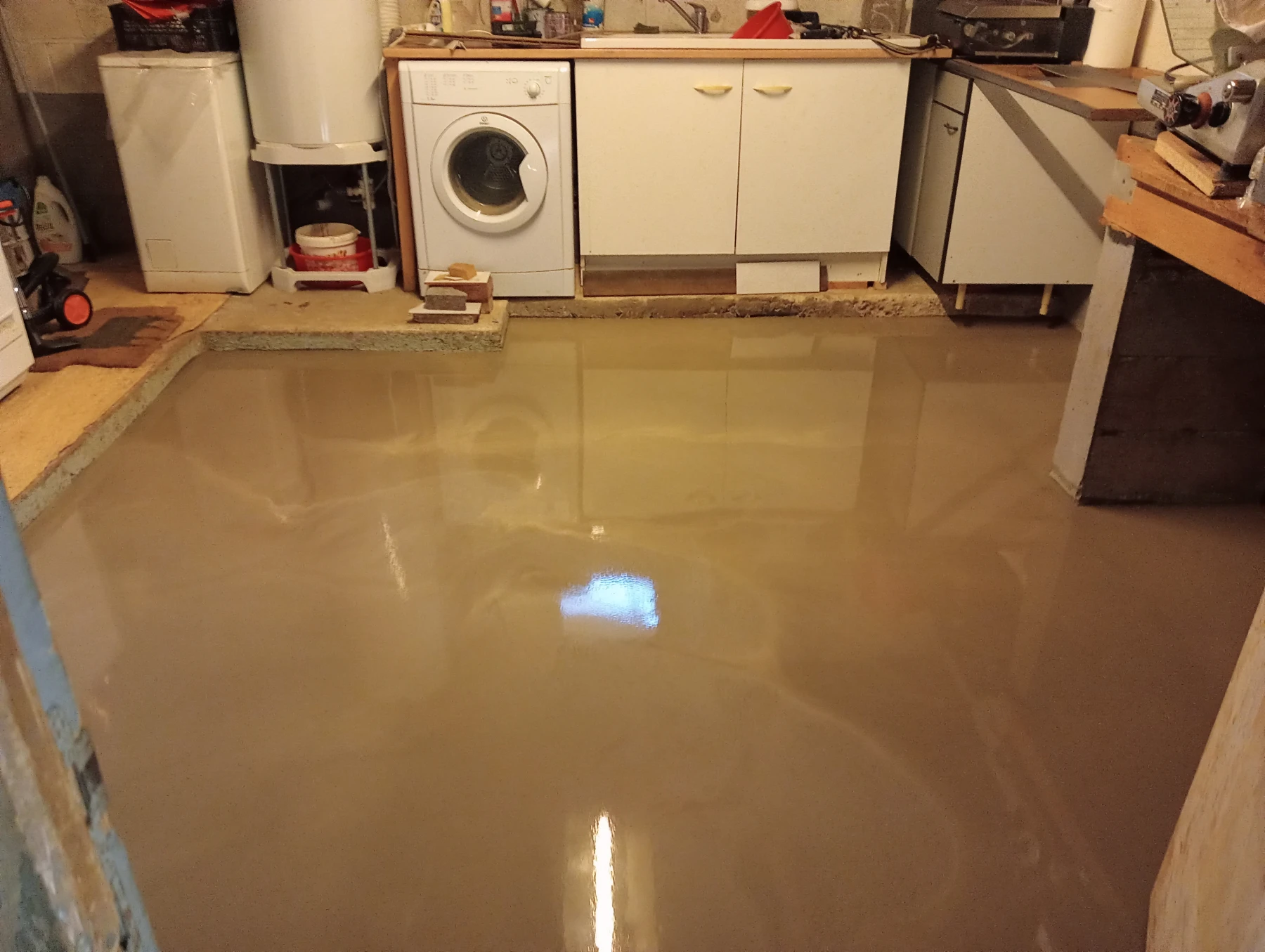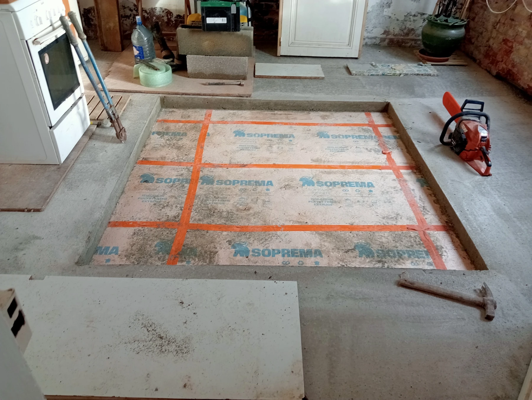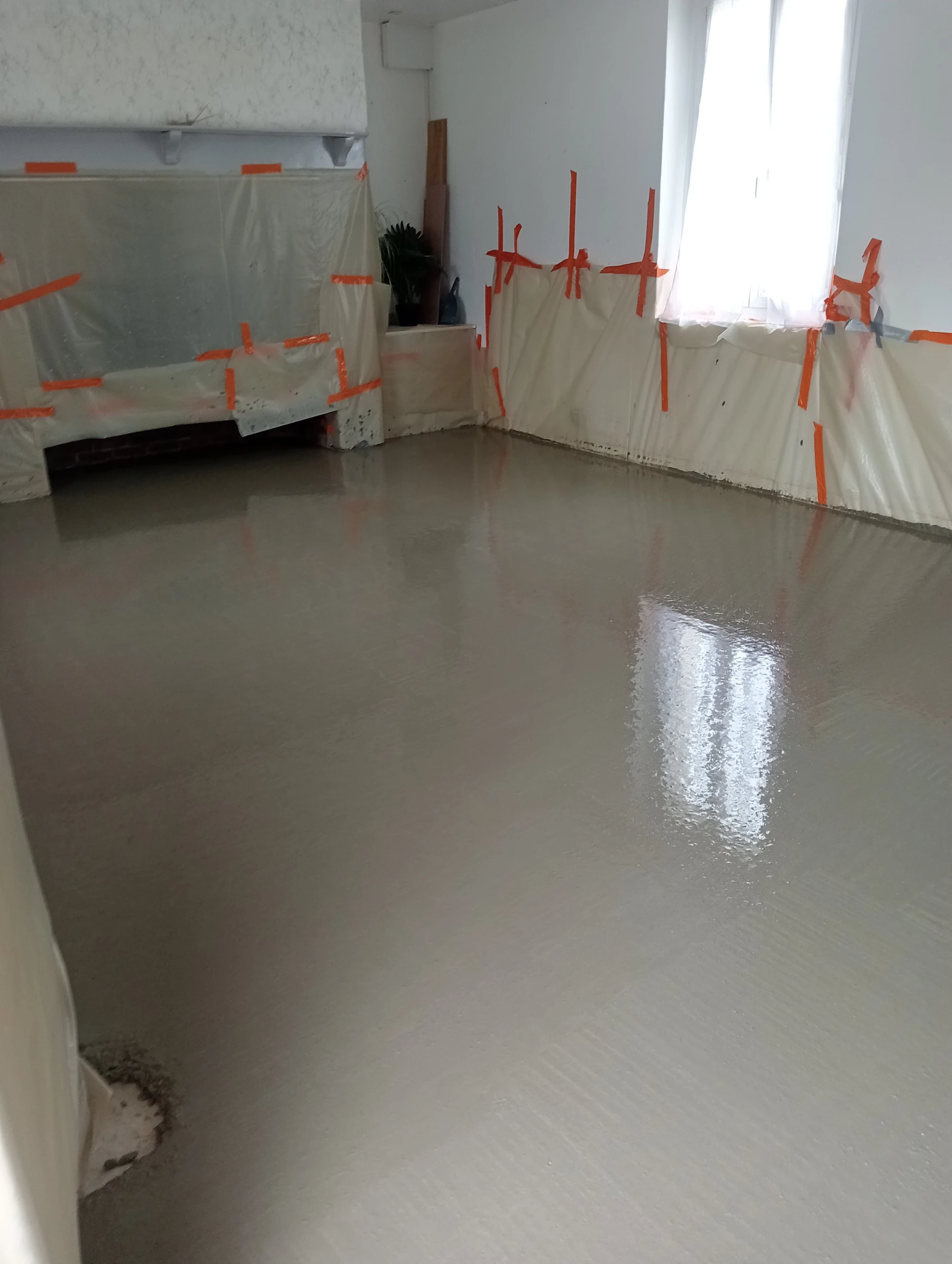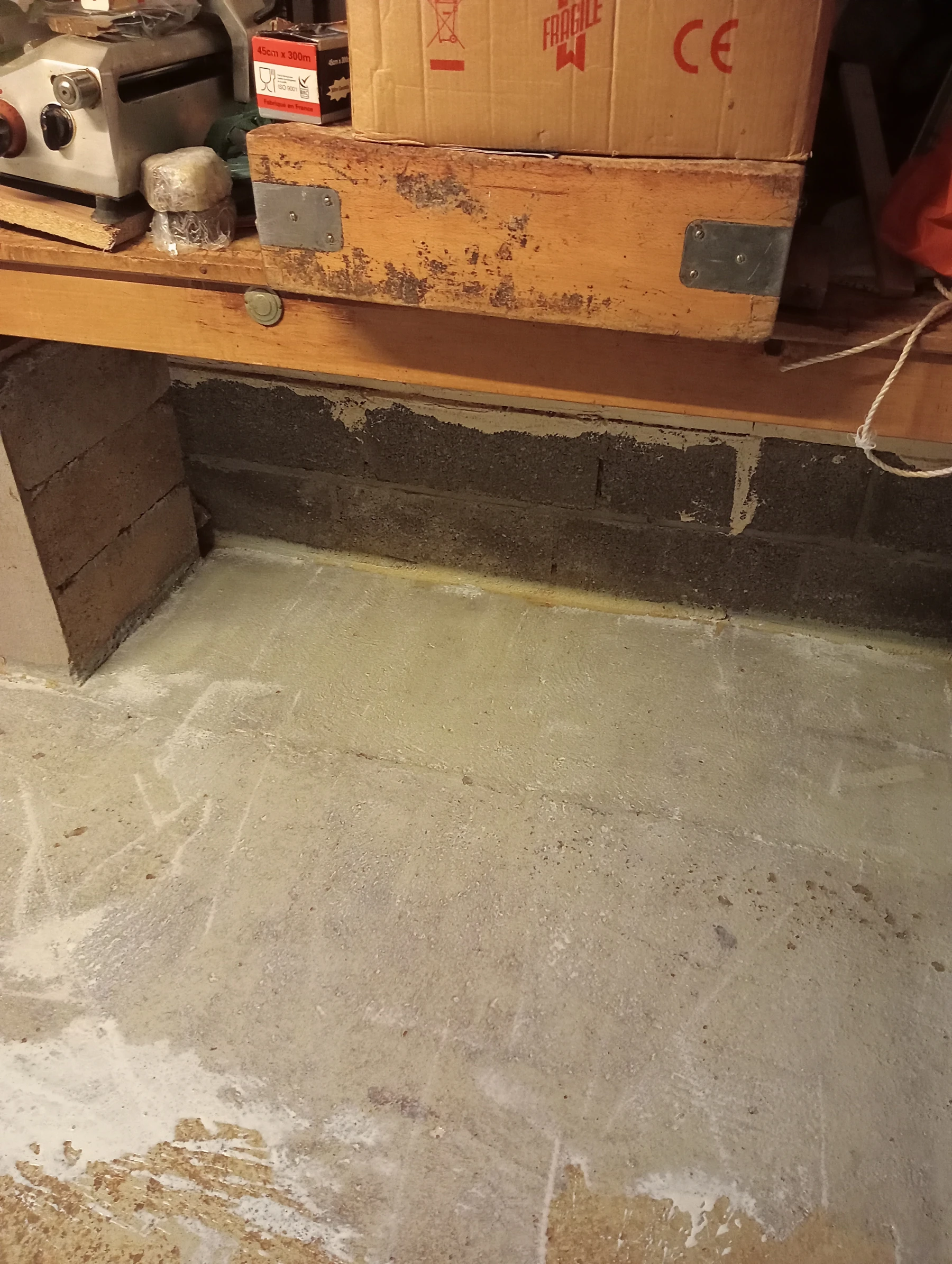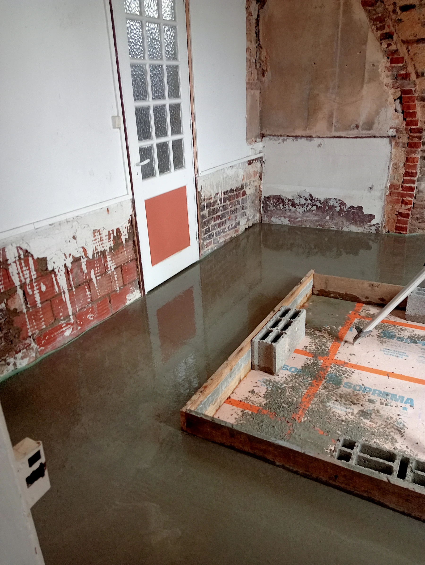 Travaux de mise en place d'un primaire d'accrochage , y compris la mise en place d'un ragréage fibré dans un sous-sol à Montmain 76520