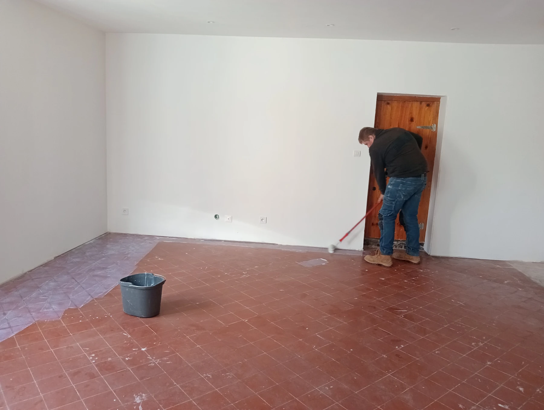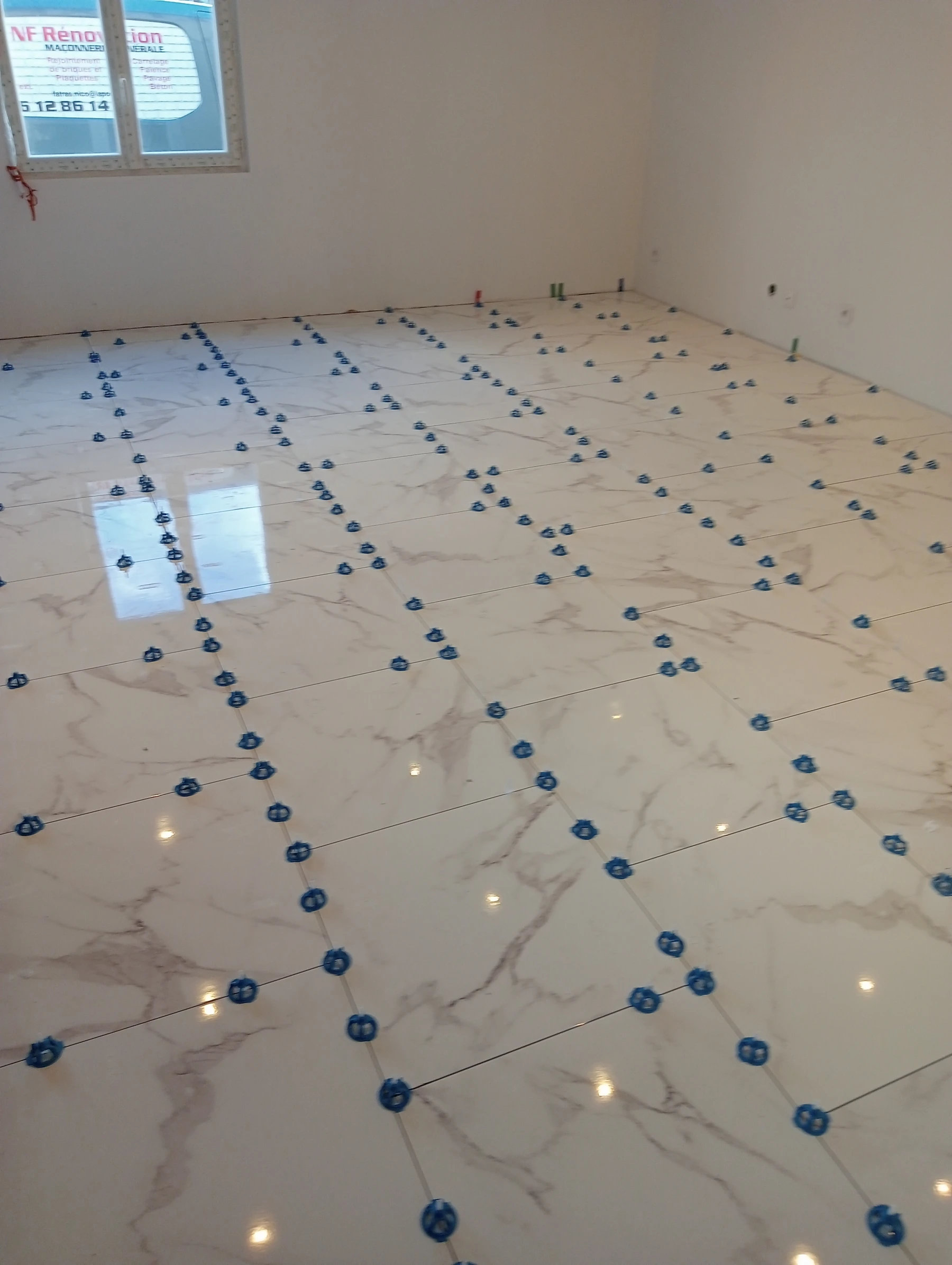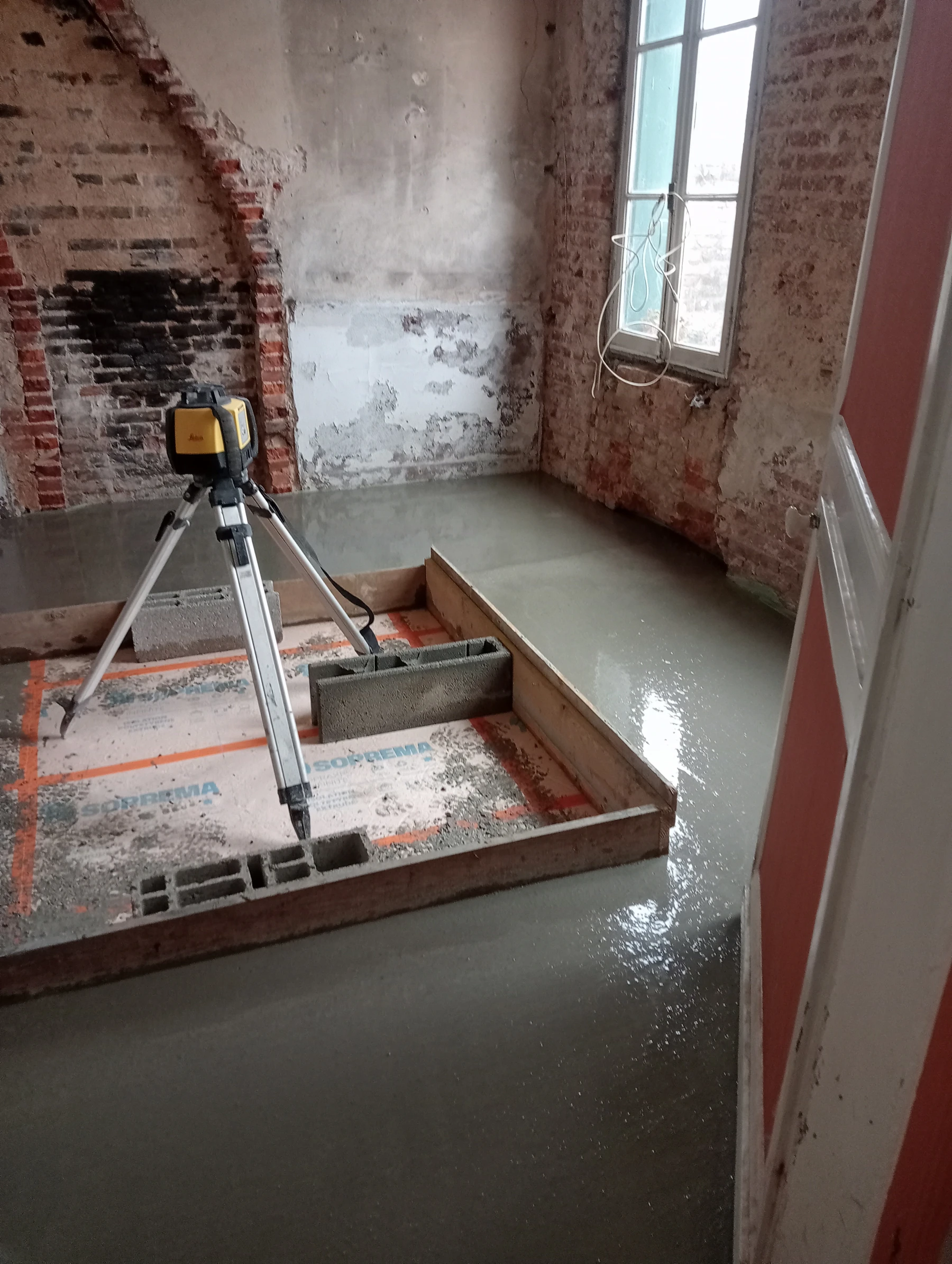 Mise en place d'un ragréage , d'un primaire et d'un carrelage 60*60 effet marbré chantier secteur Bermonville 76640