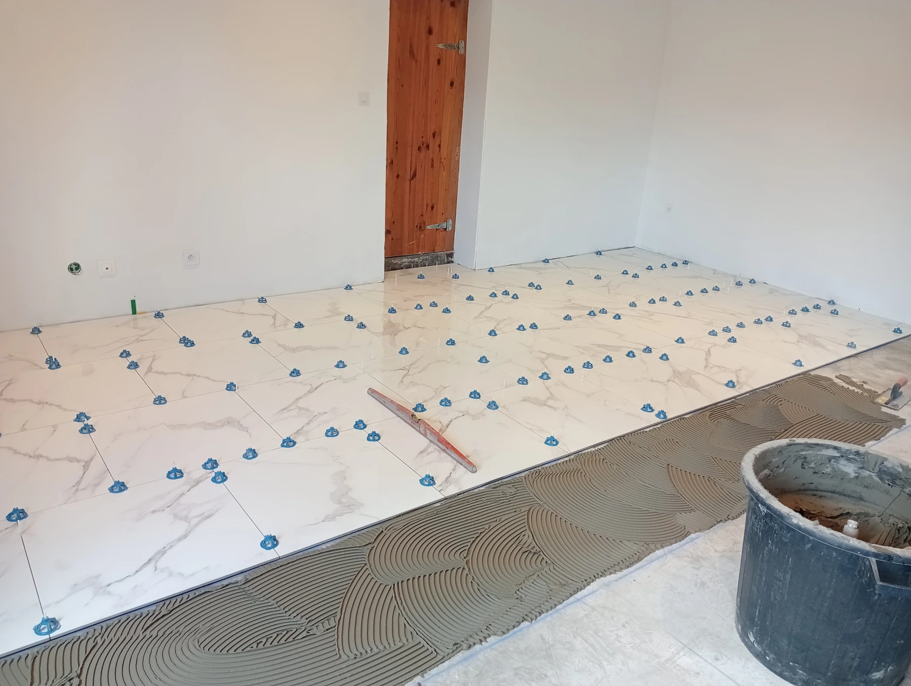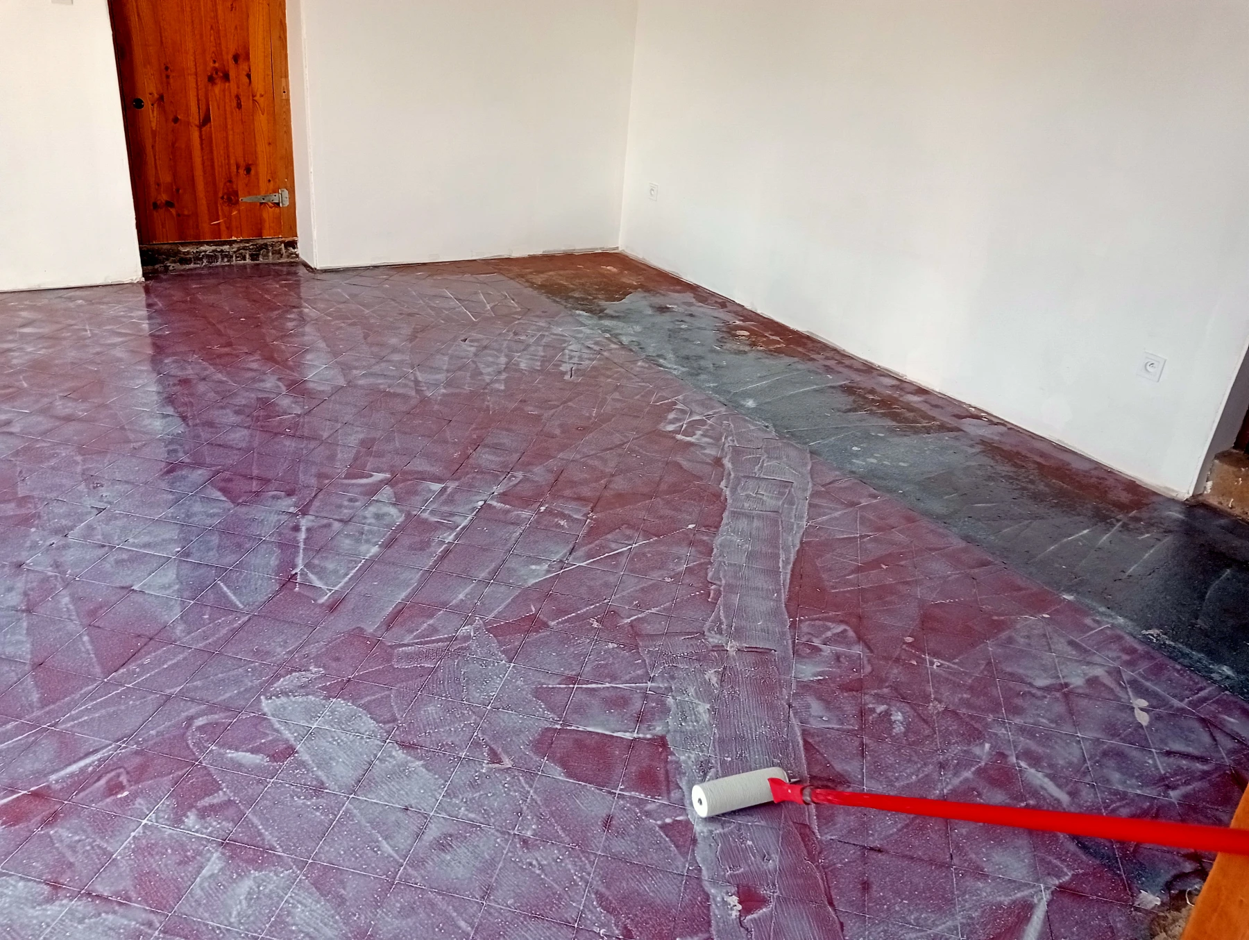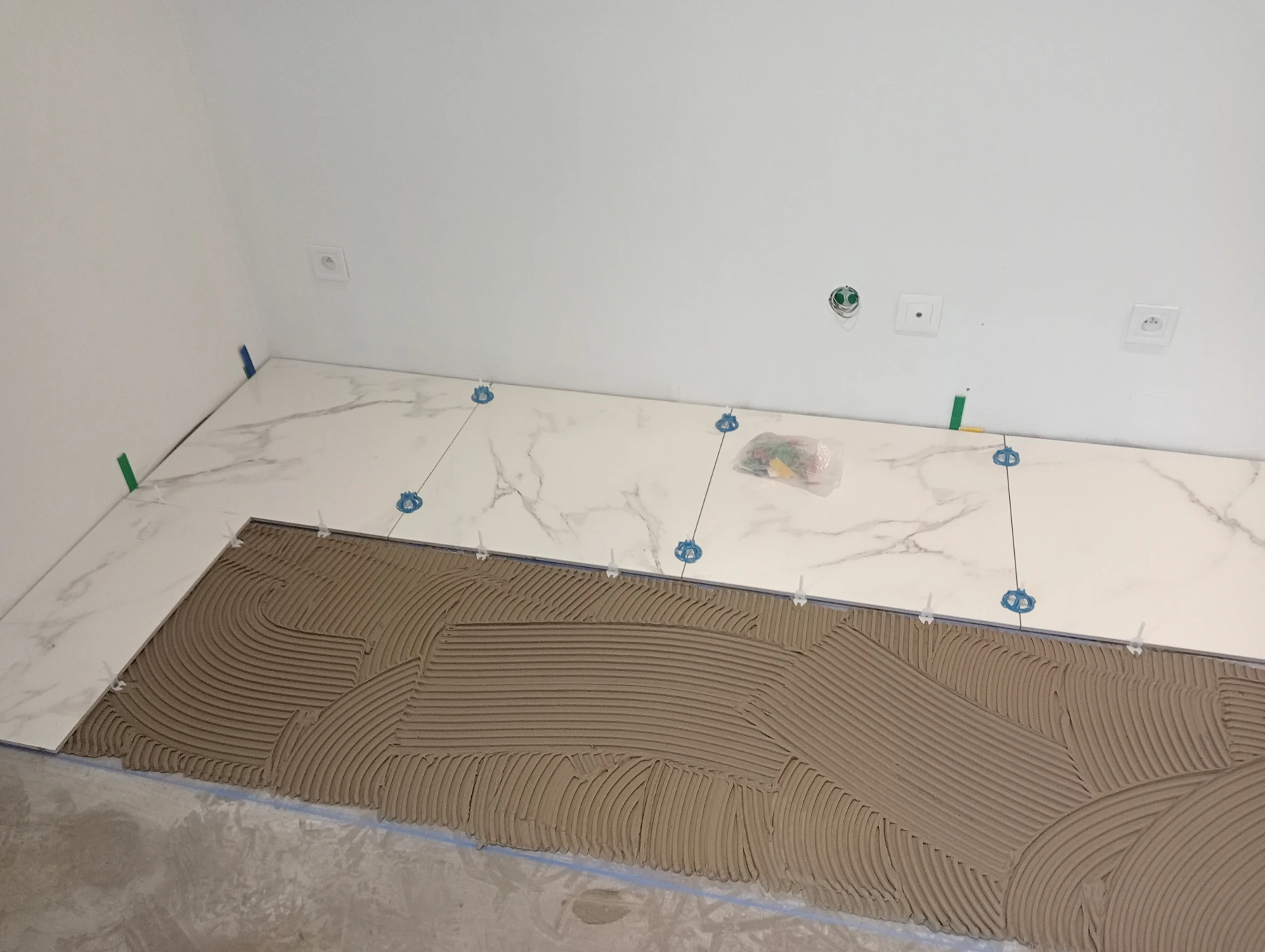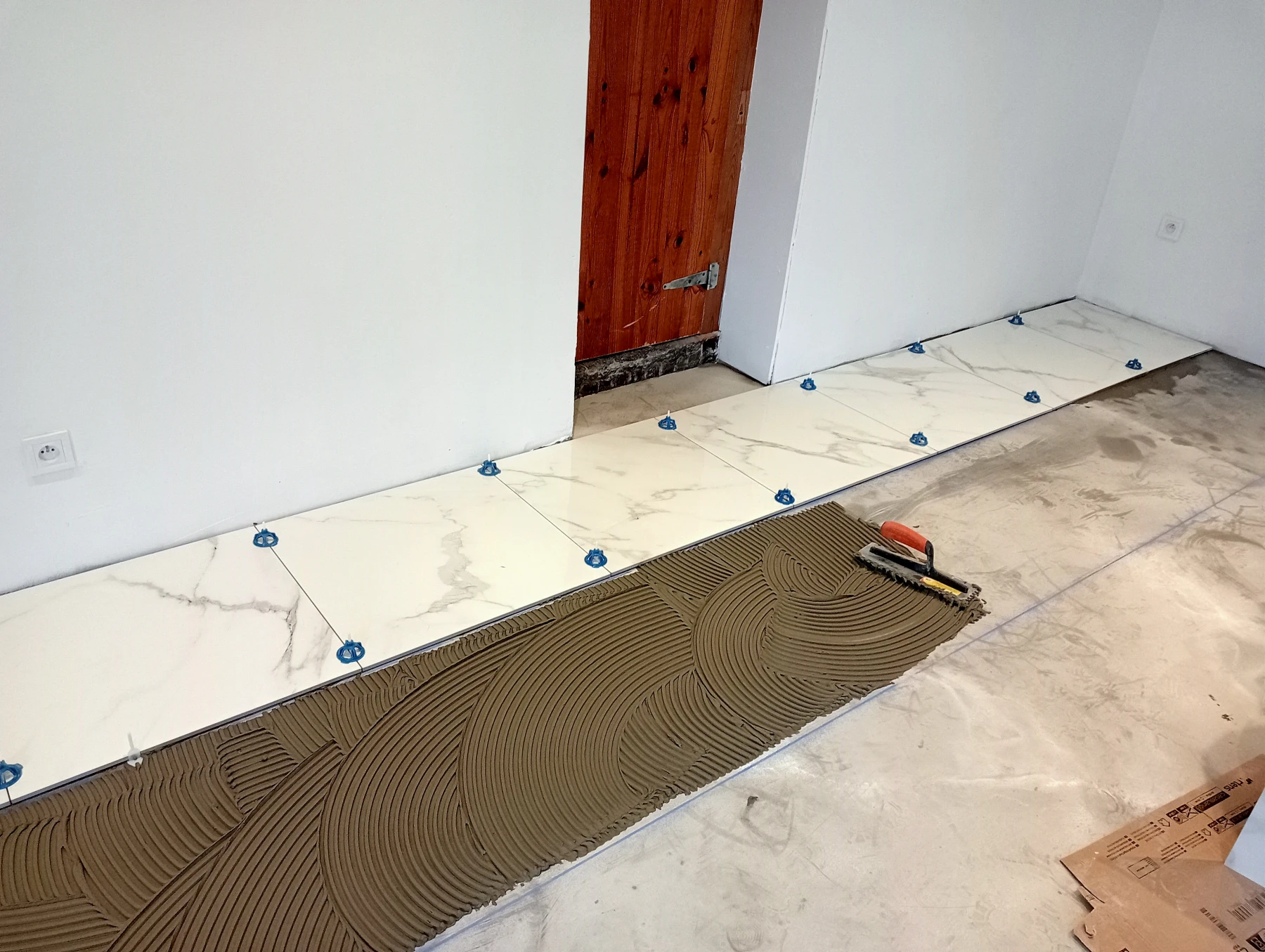 Mise en place d'un ragréage , d'un primaire et d'un carrelage 60*60 effet marbré chantier secteur Bermonville 76640