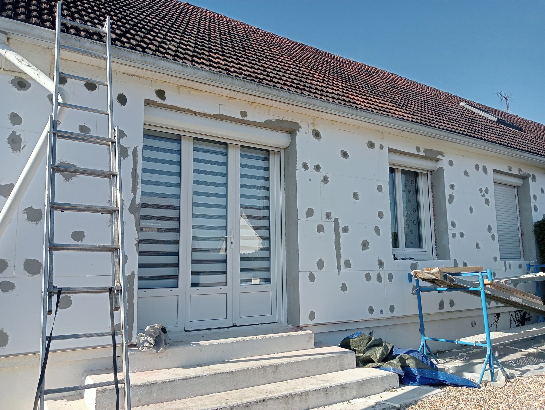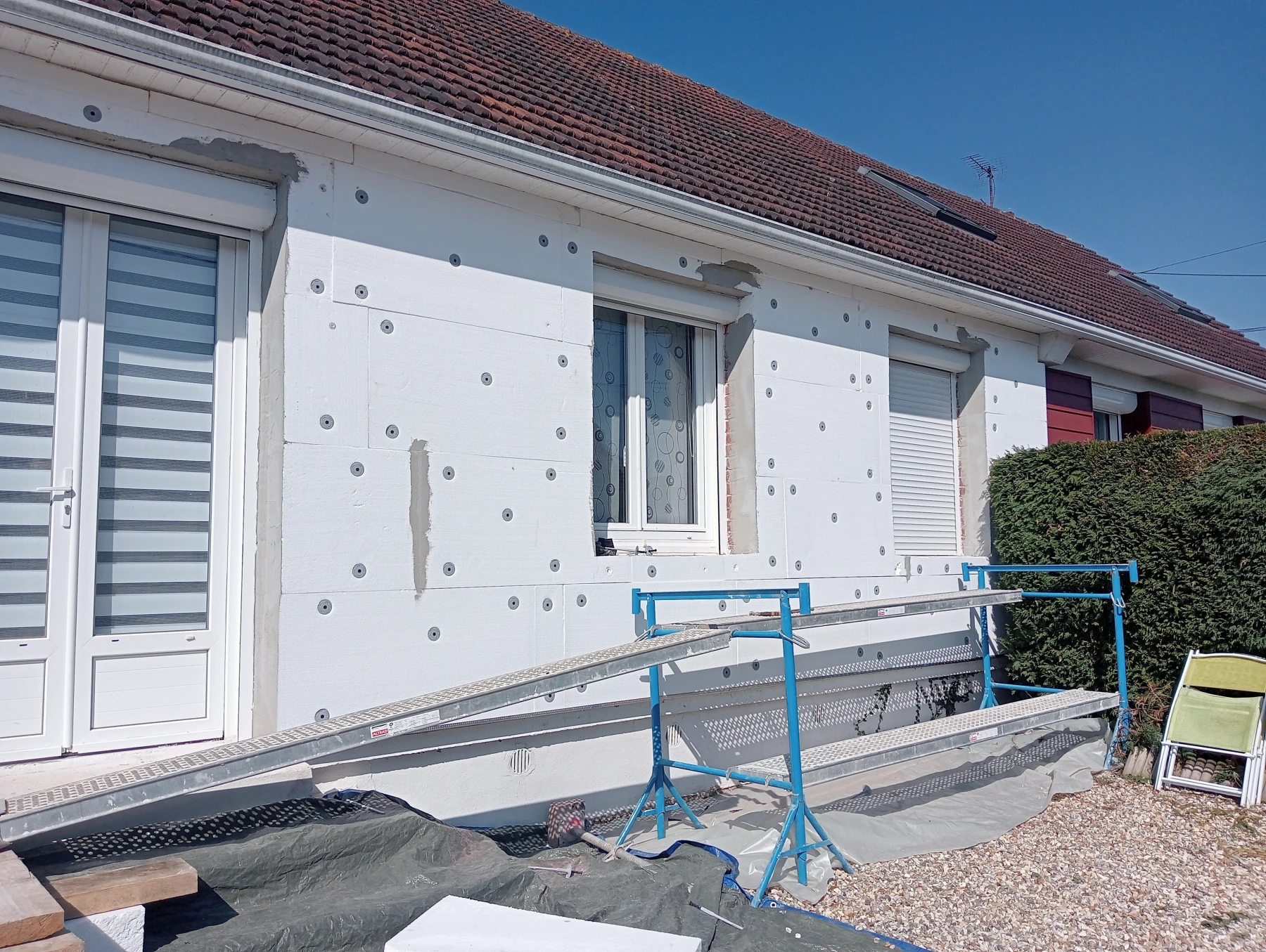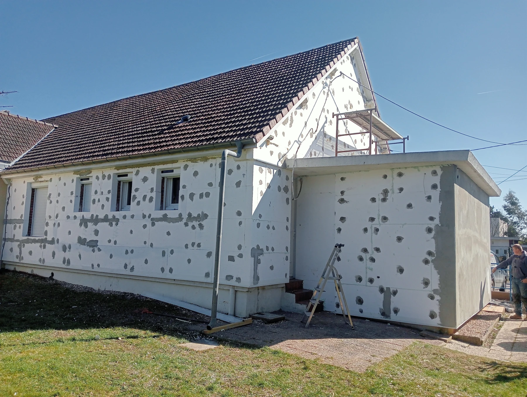 Réalisation d'une ITE par l'extérieur chantier secteur Le Mesnil-Esnard 76240