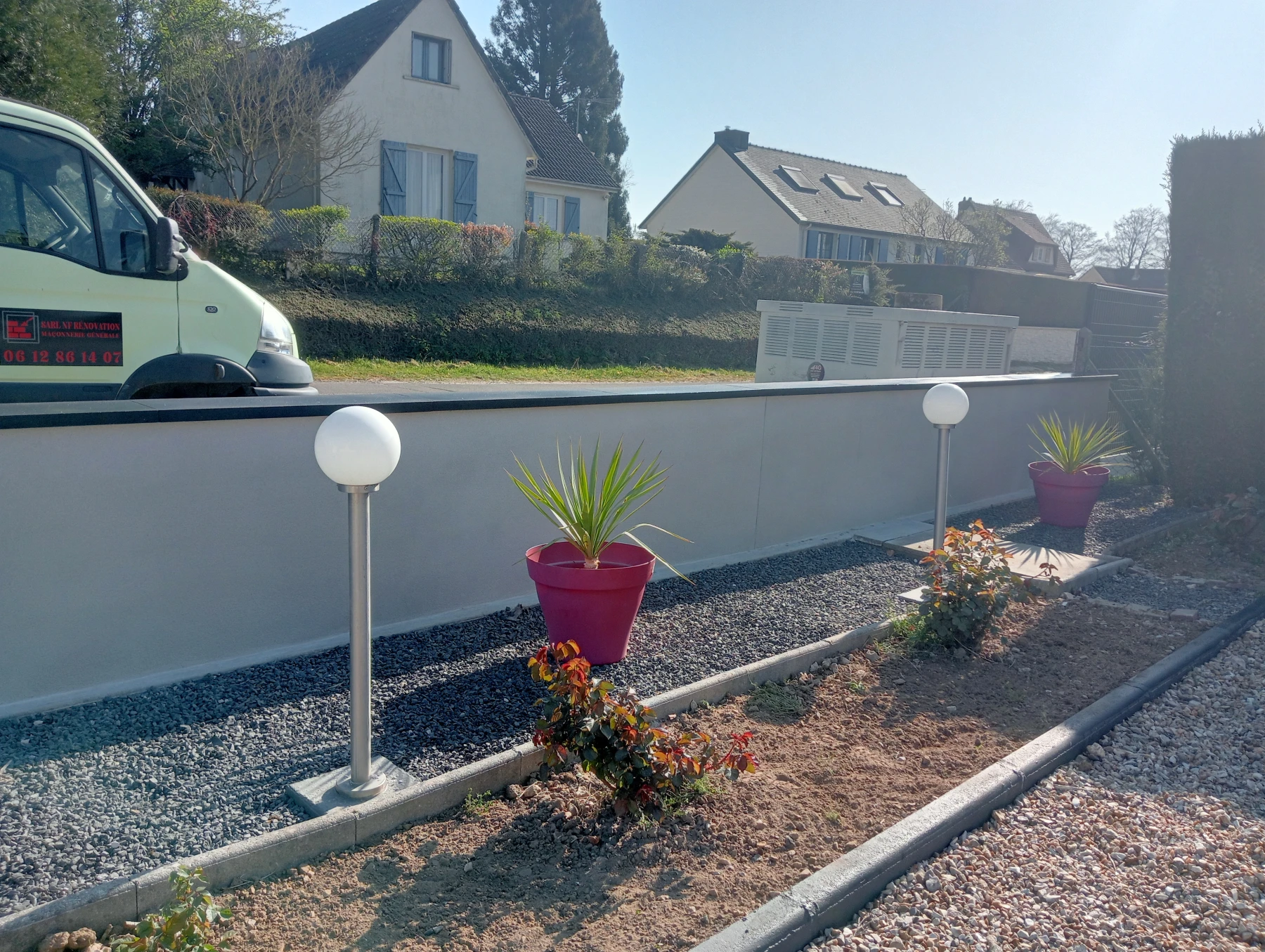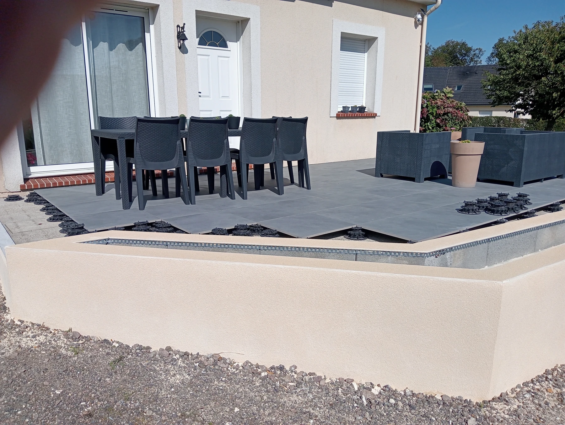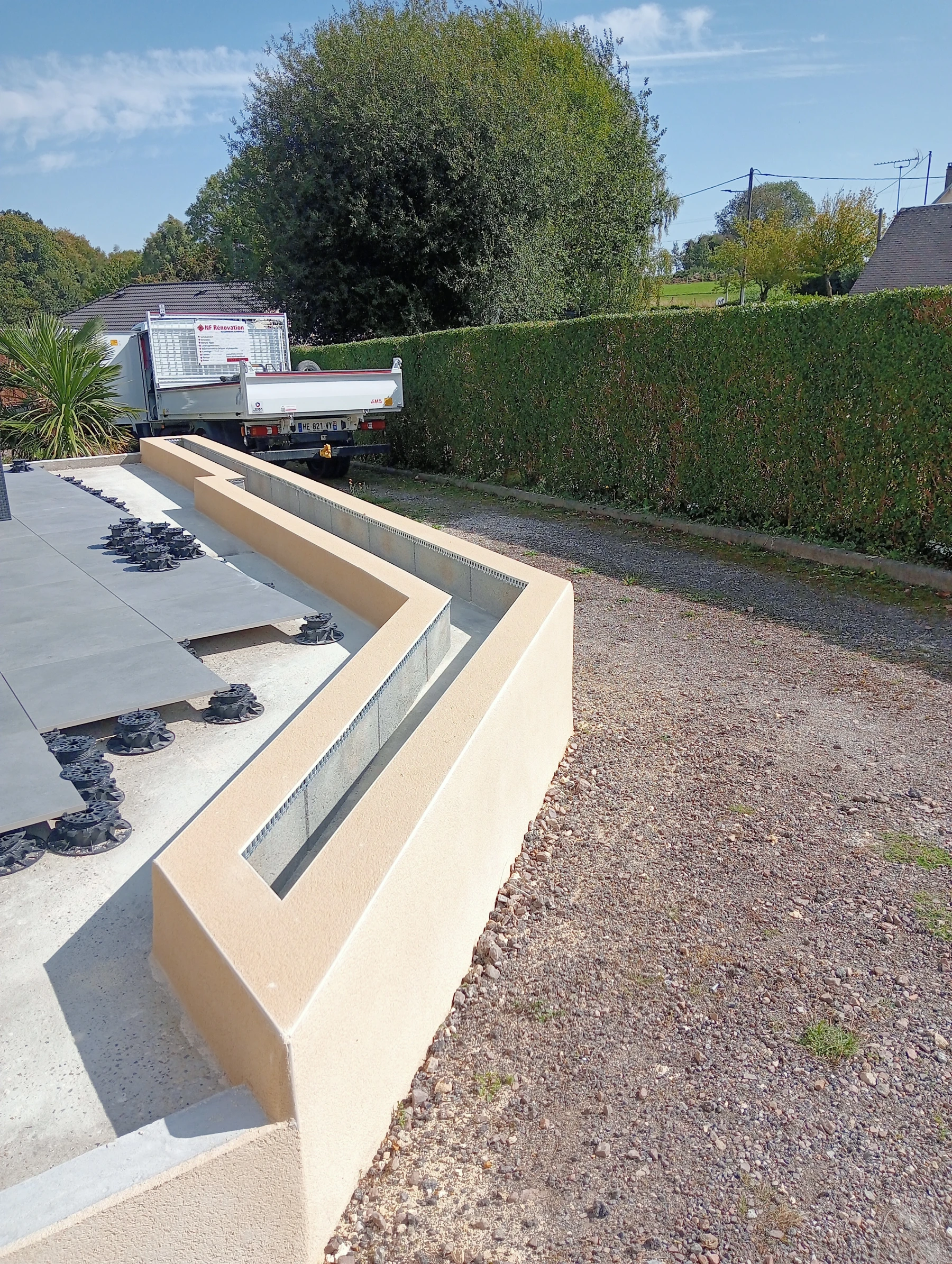 Création d'une jardinière avec enduit gratter ton pierre secteur Bardouville