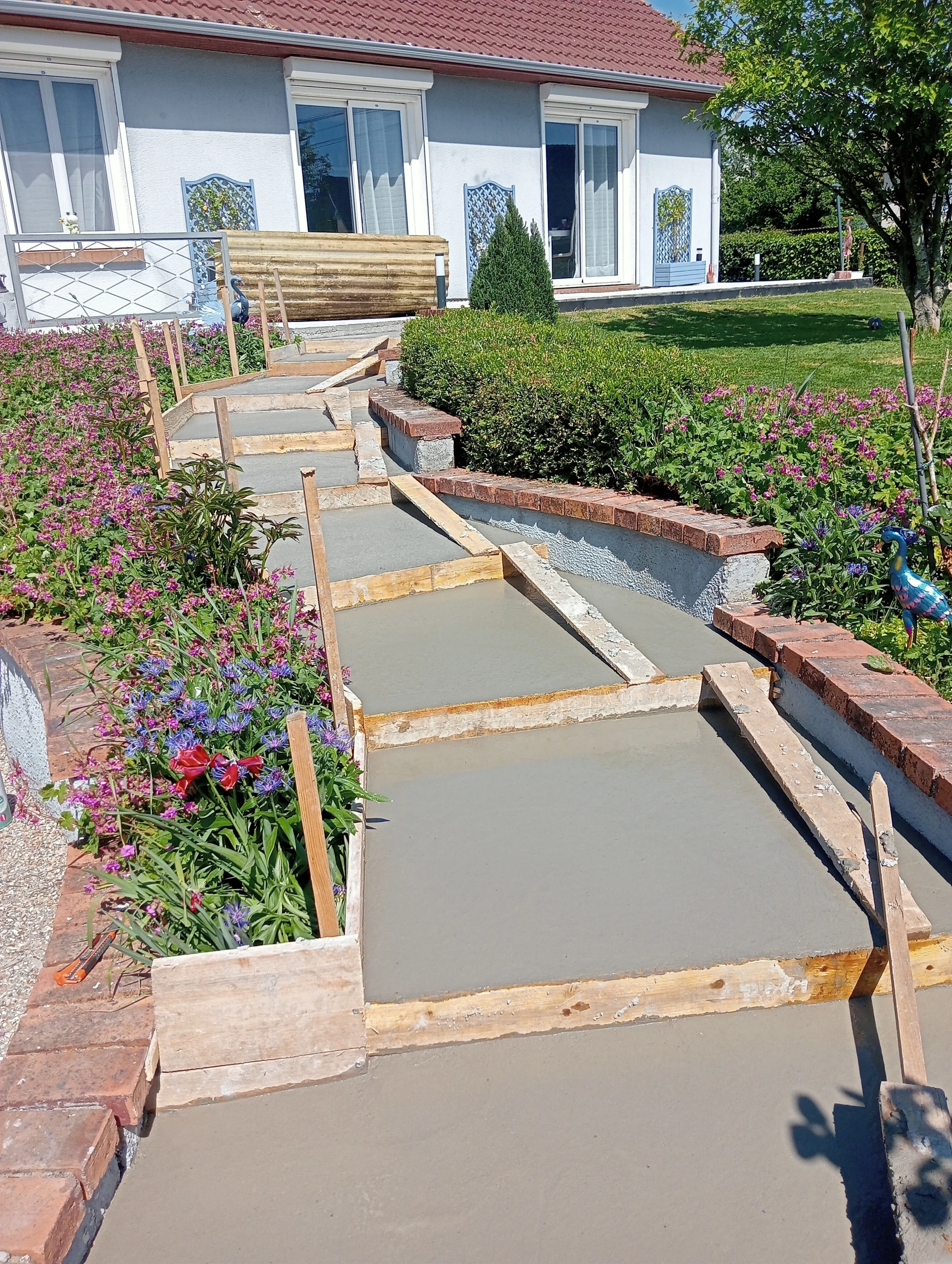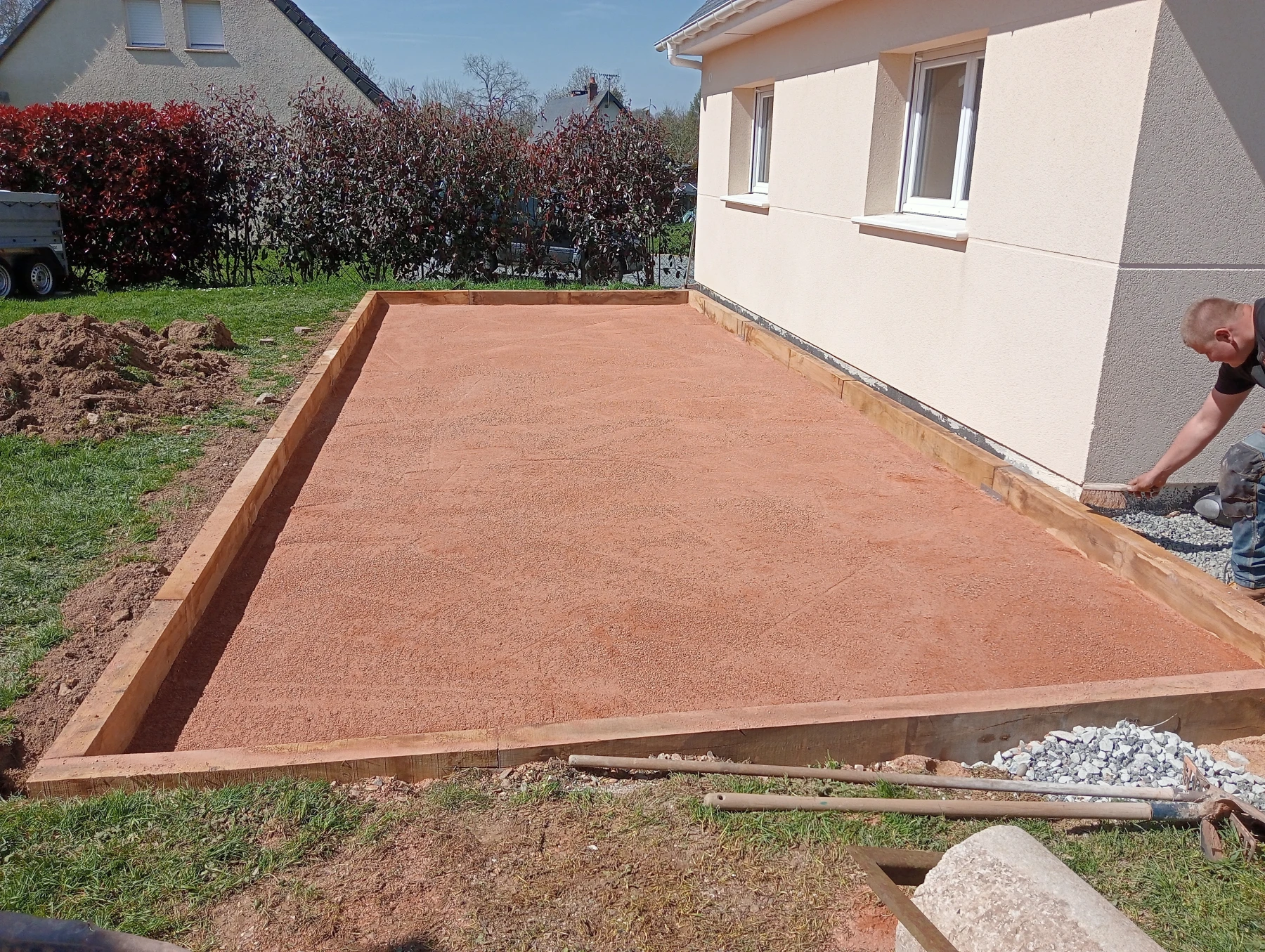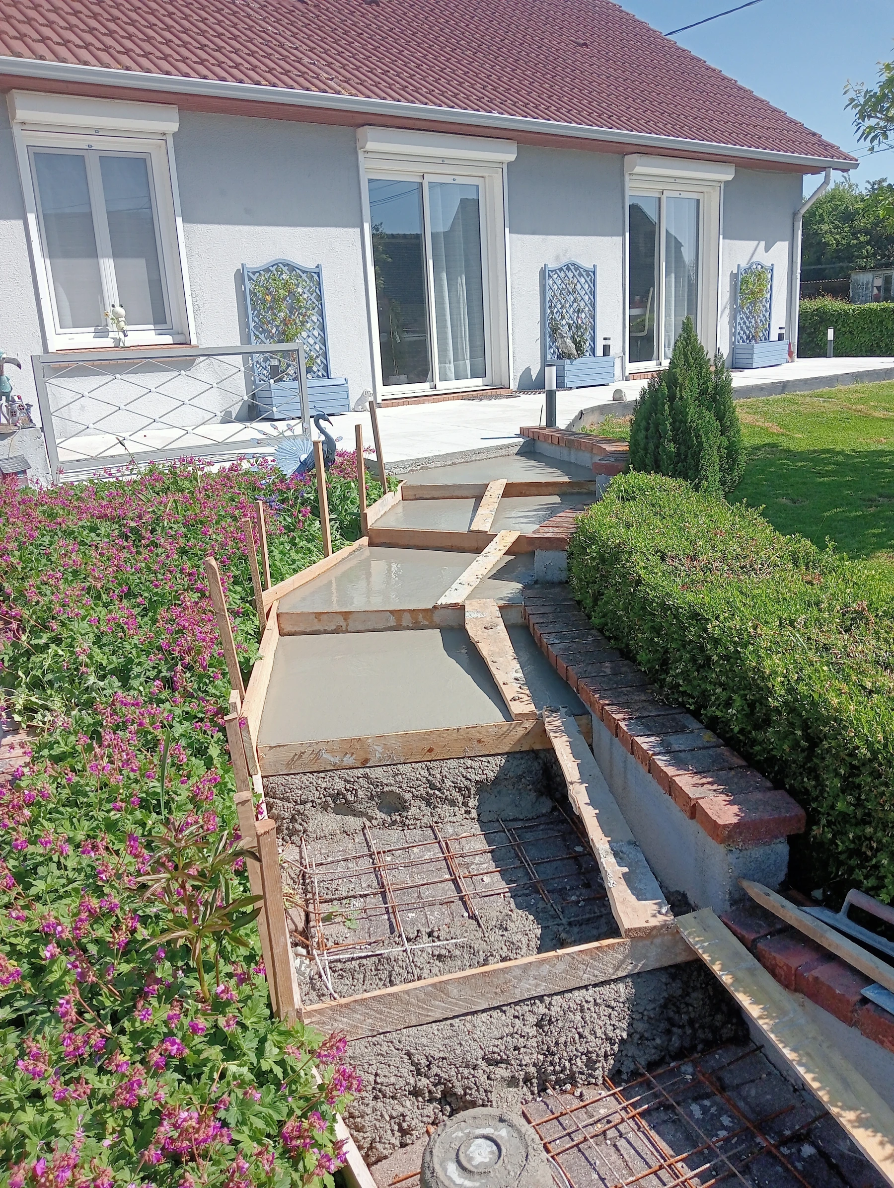 Réalisation d'une allée en béton brut chantier secteur betteville 76190