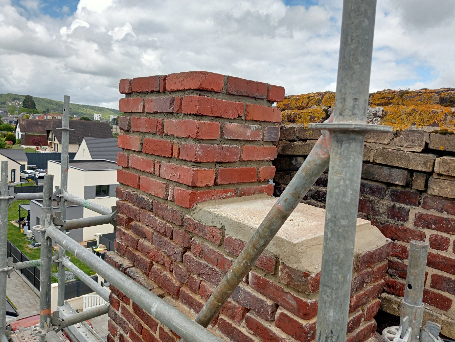 travaux sur cheminée reprise des joints finition brossé chantier secteur pretot-vicquemare 76