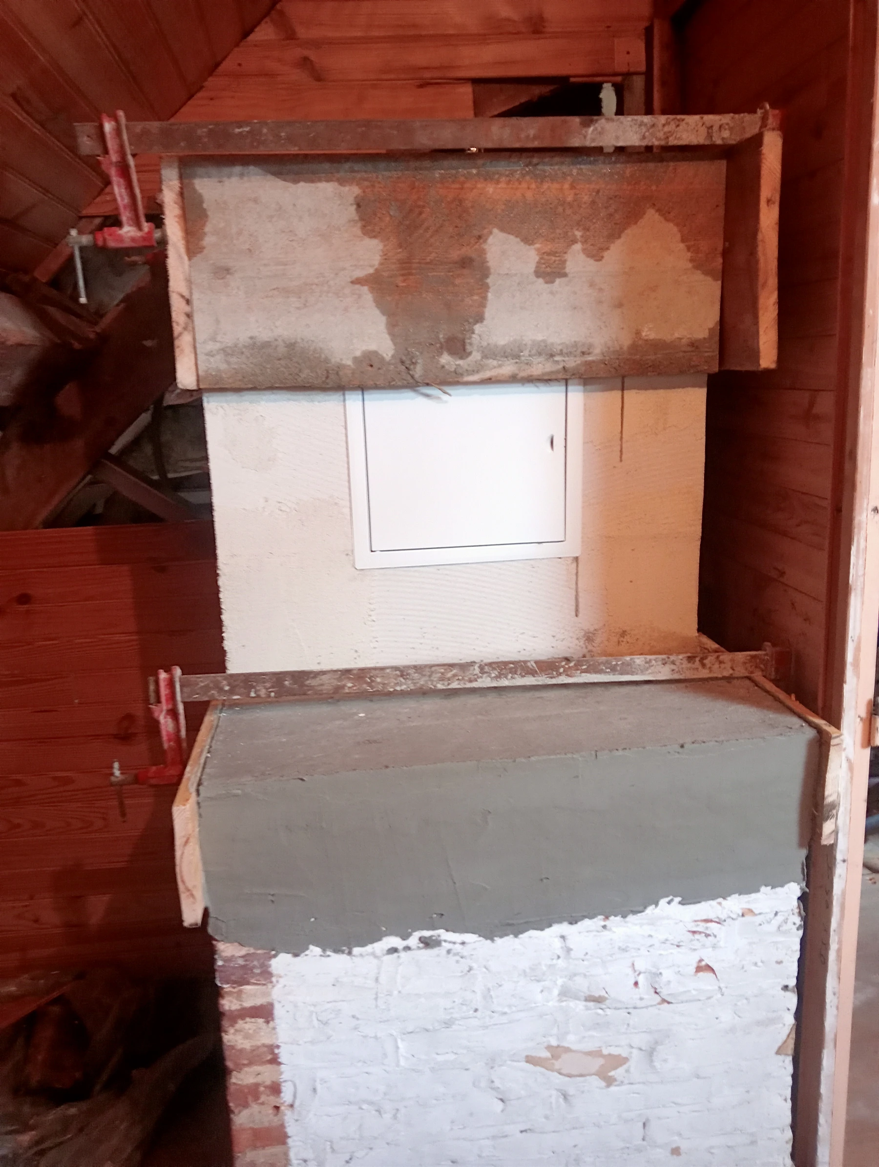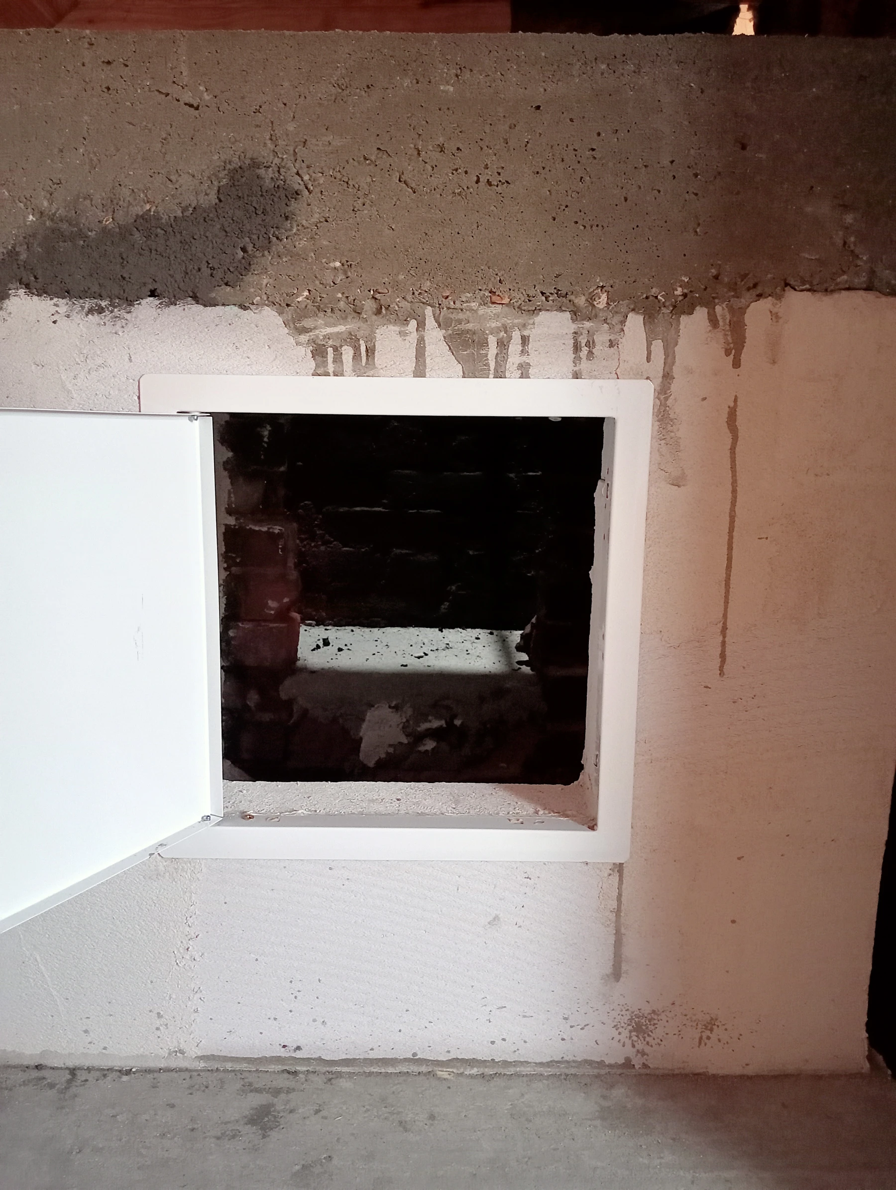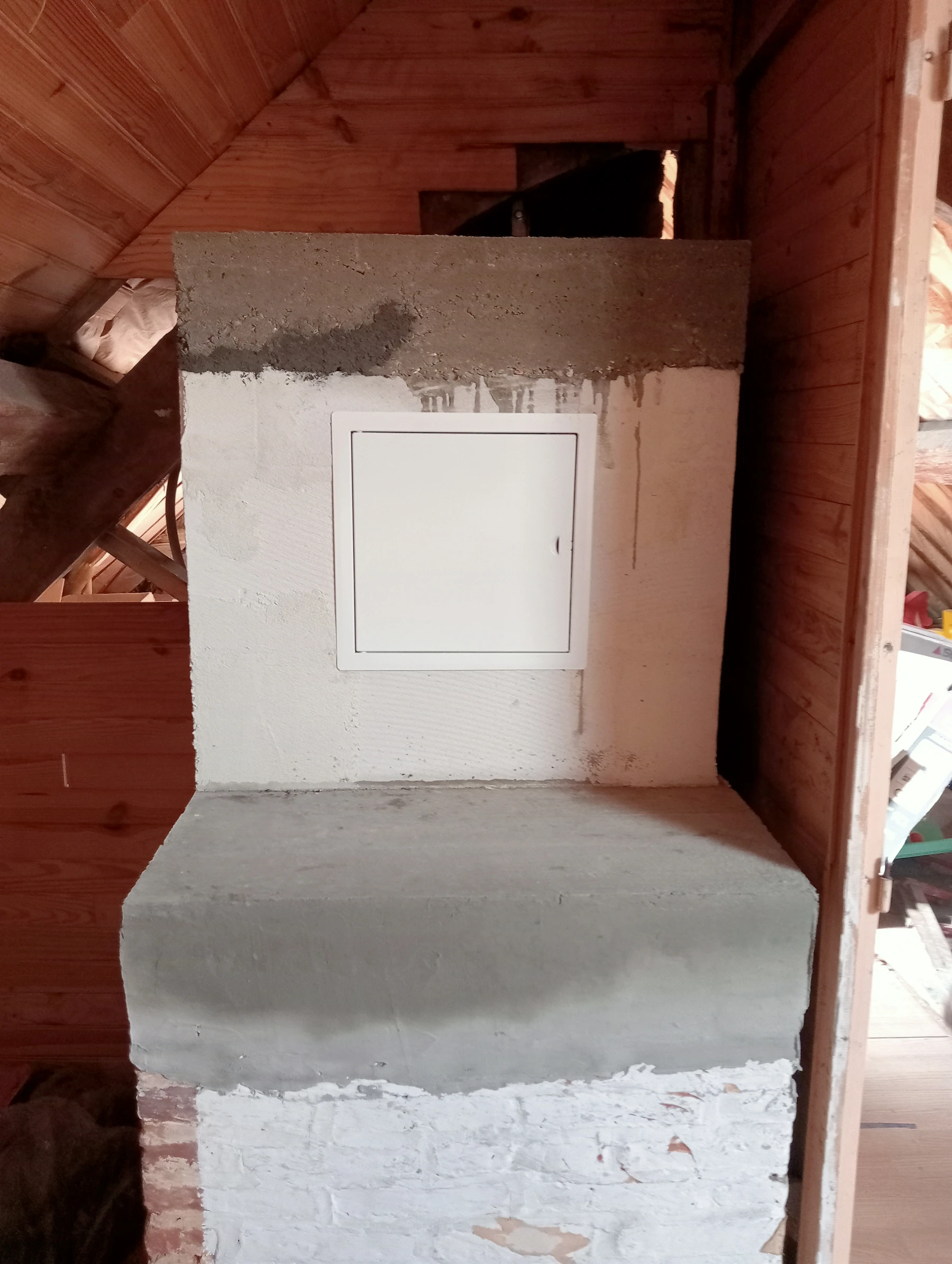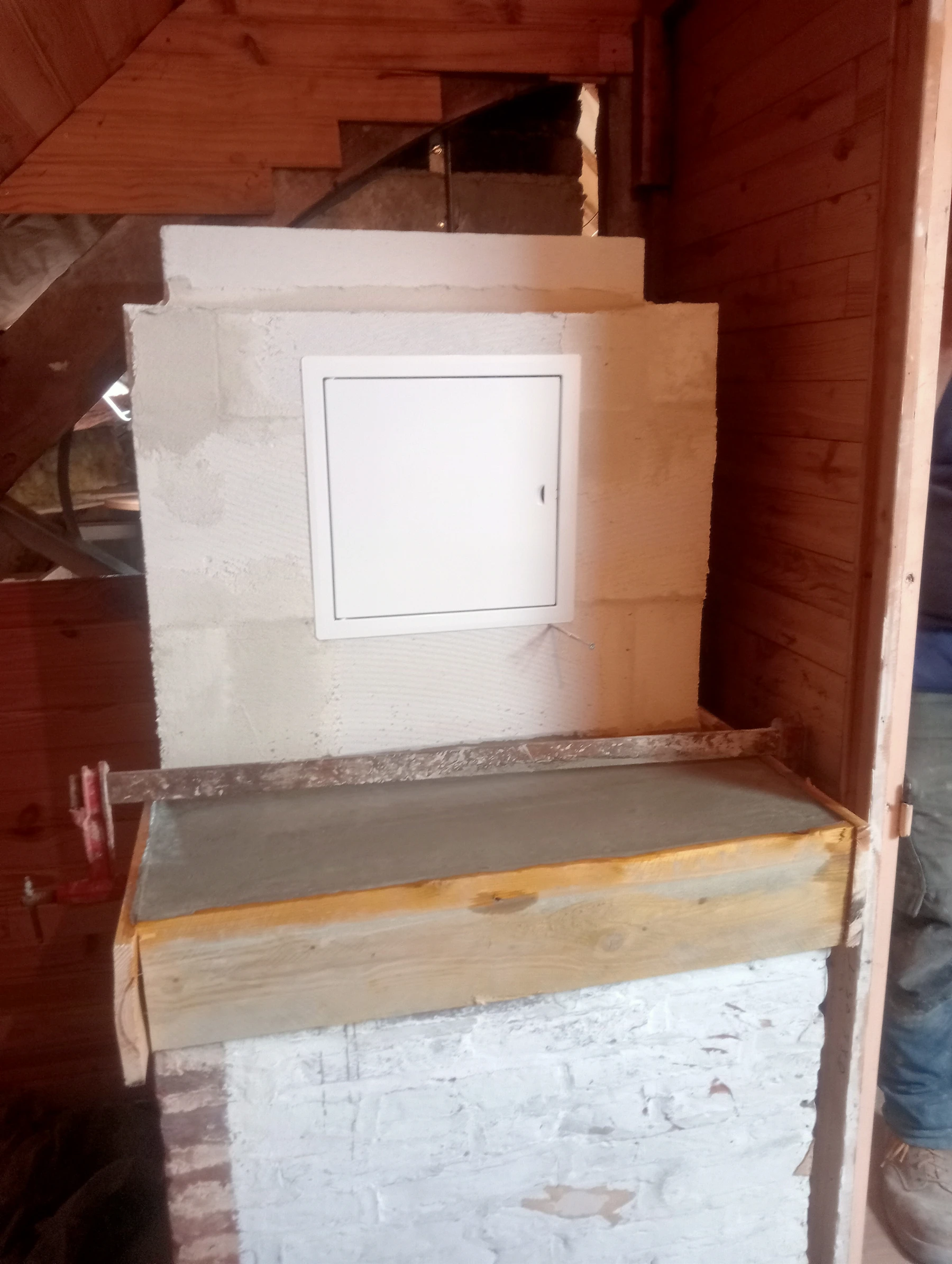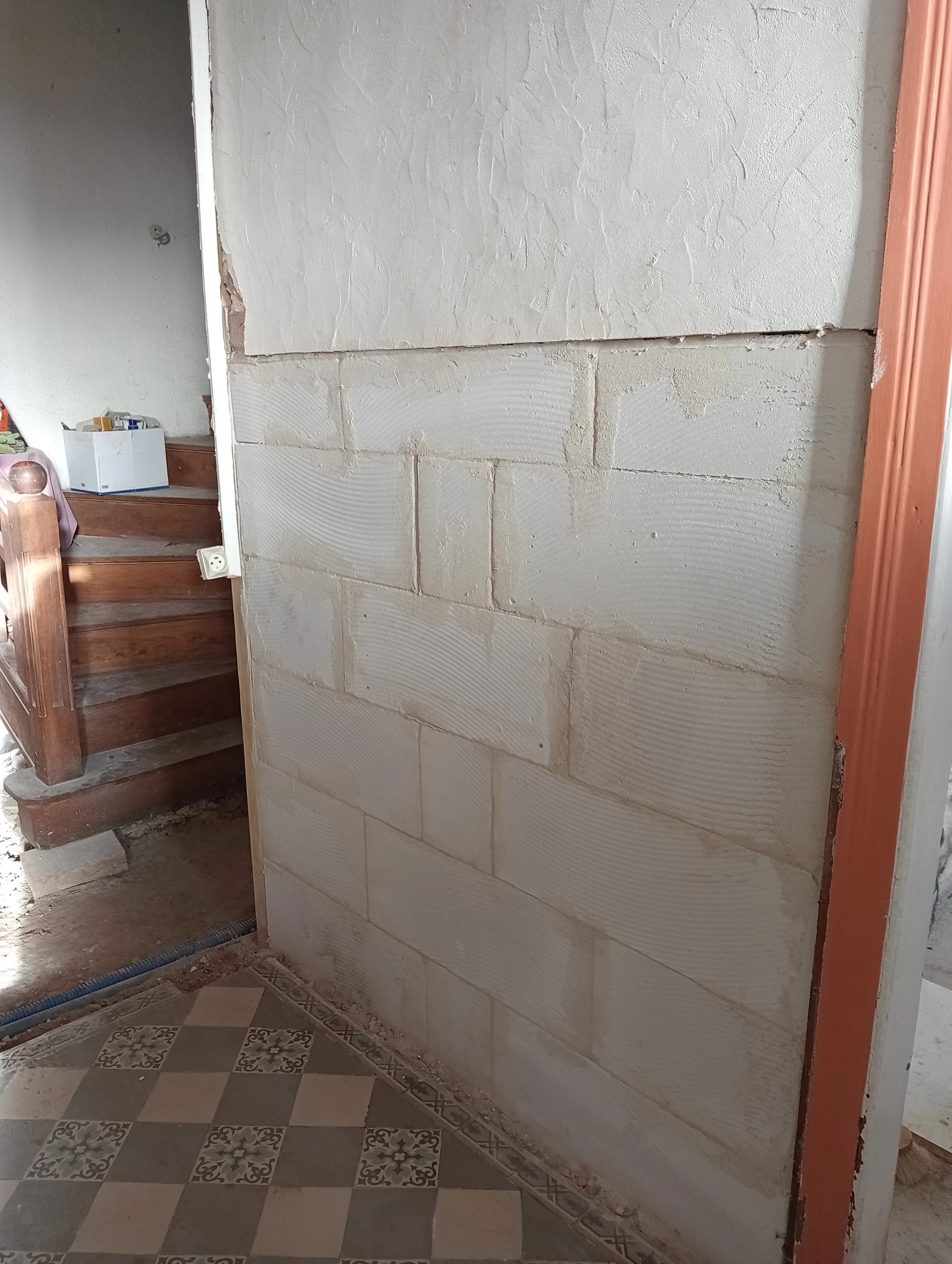 Reprise d'un conduit de cheminée intérieure en bloc cellulaire avec pose d'une trappe de visite