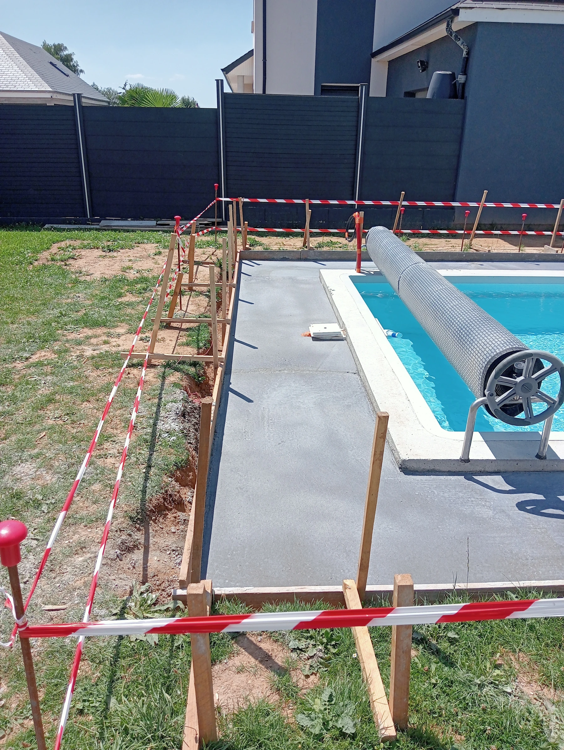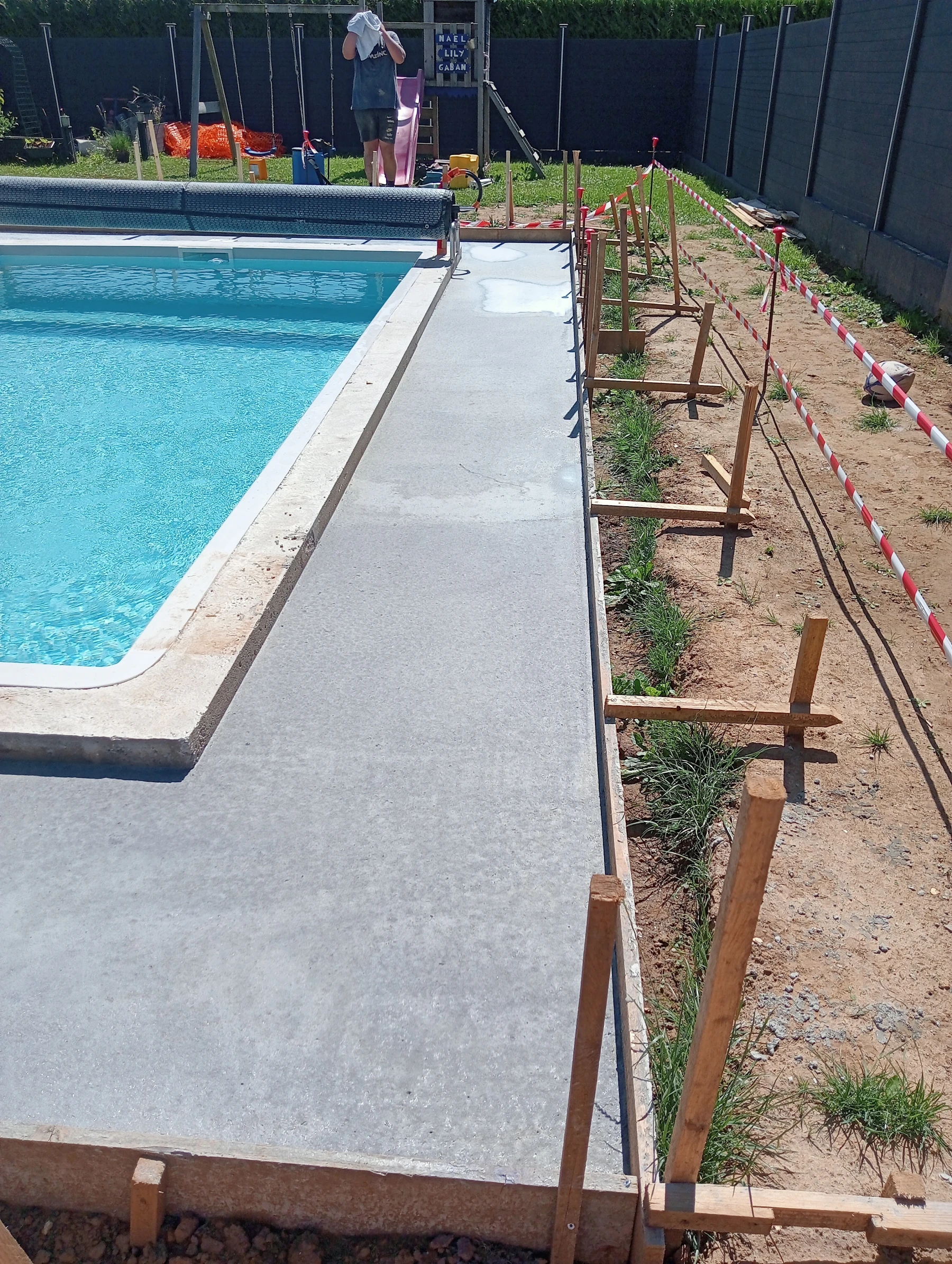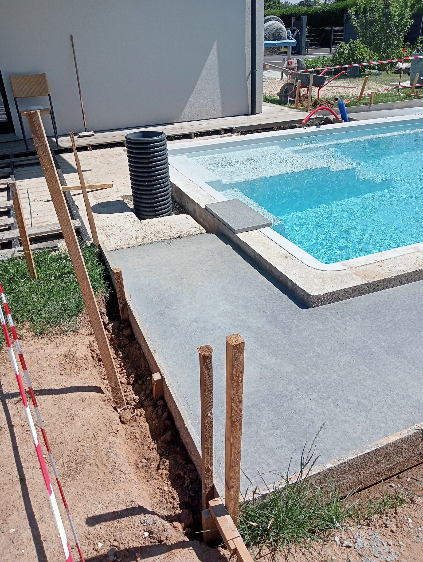 coffrage et coulage d'un béton autour d'une piscine chantier a eslettes