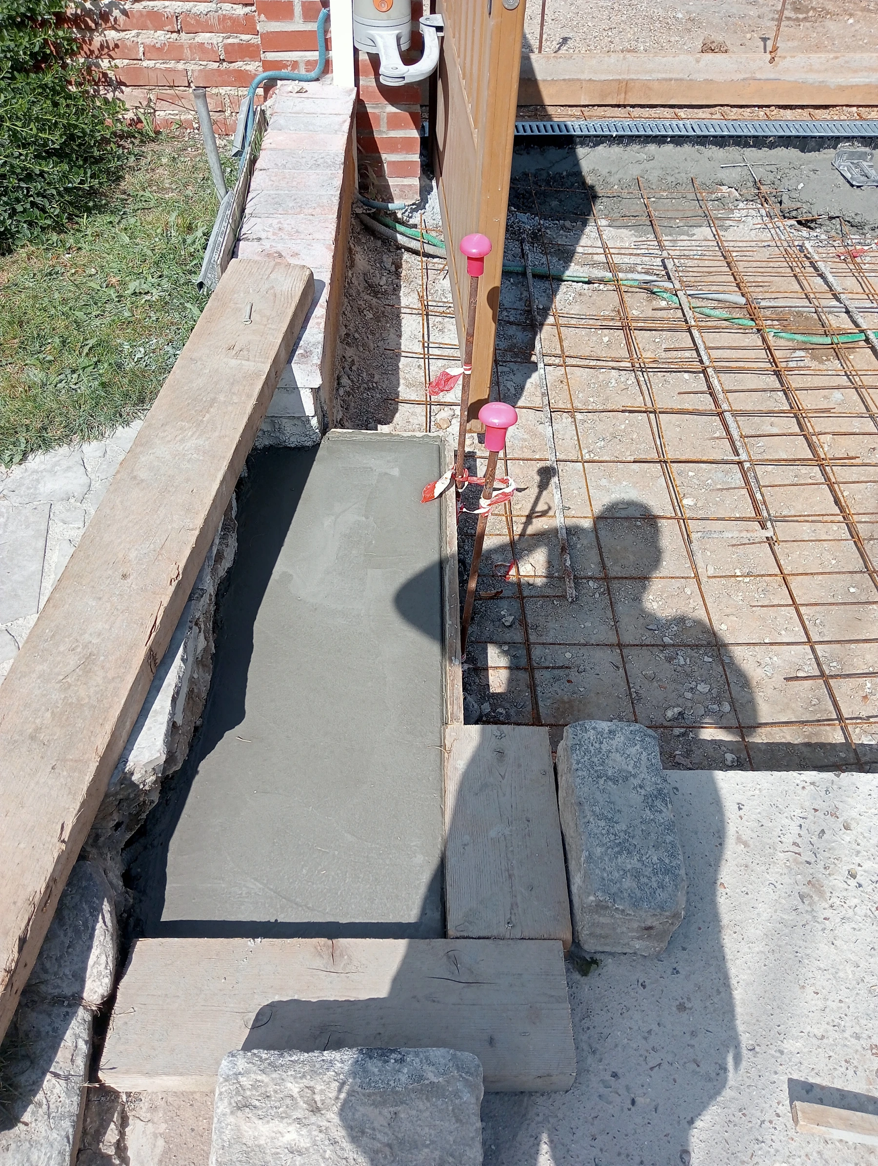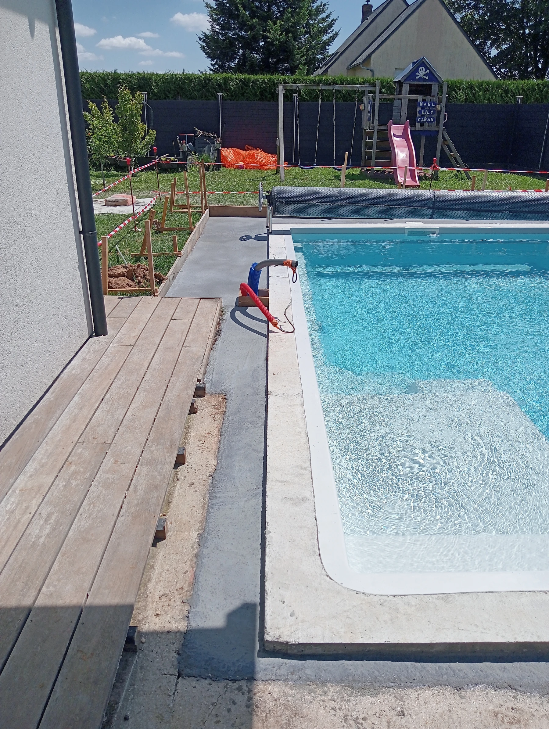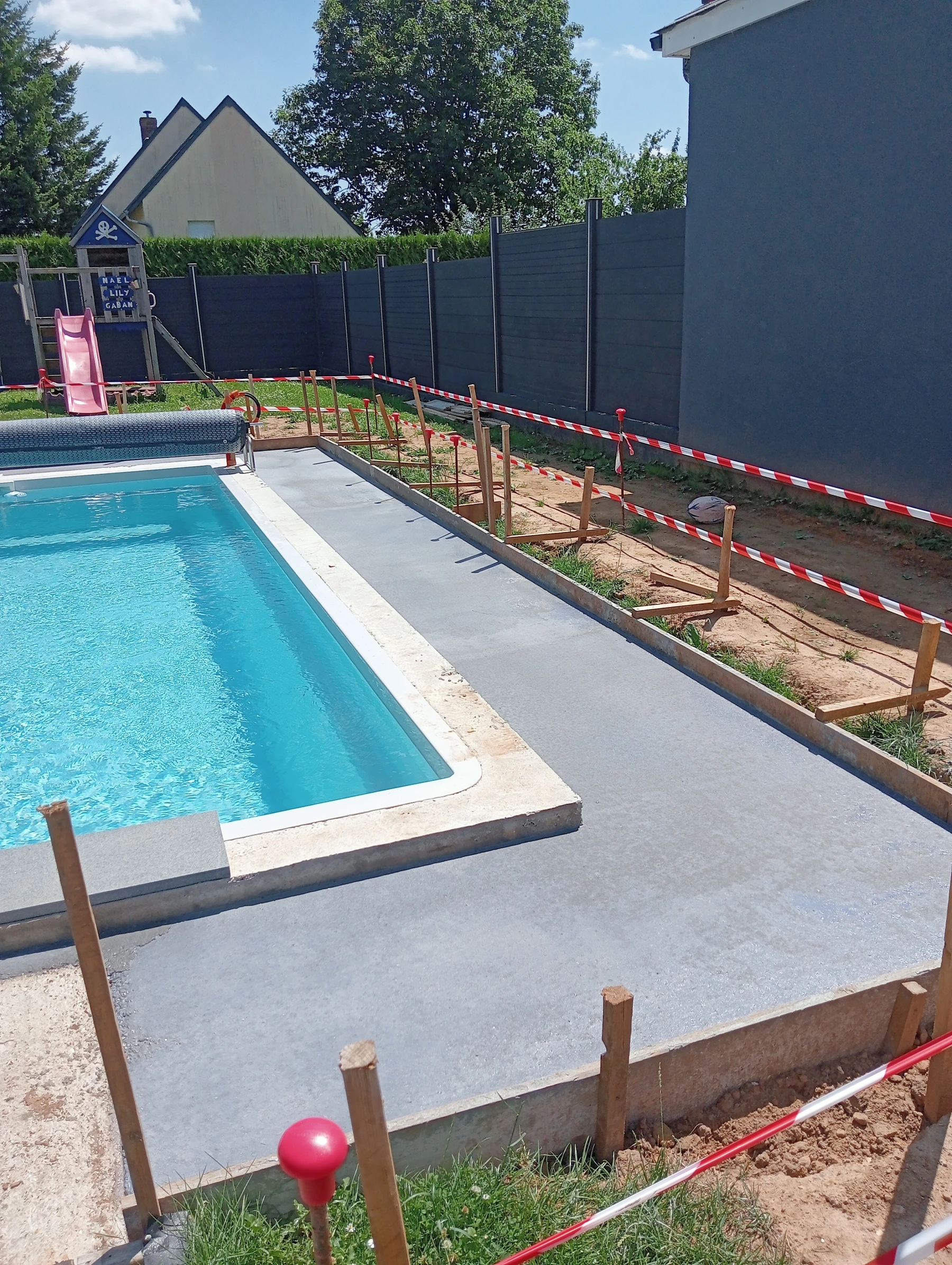 coffrage et coulage d'un béton autour d'une piscine chantier a eslettes