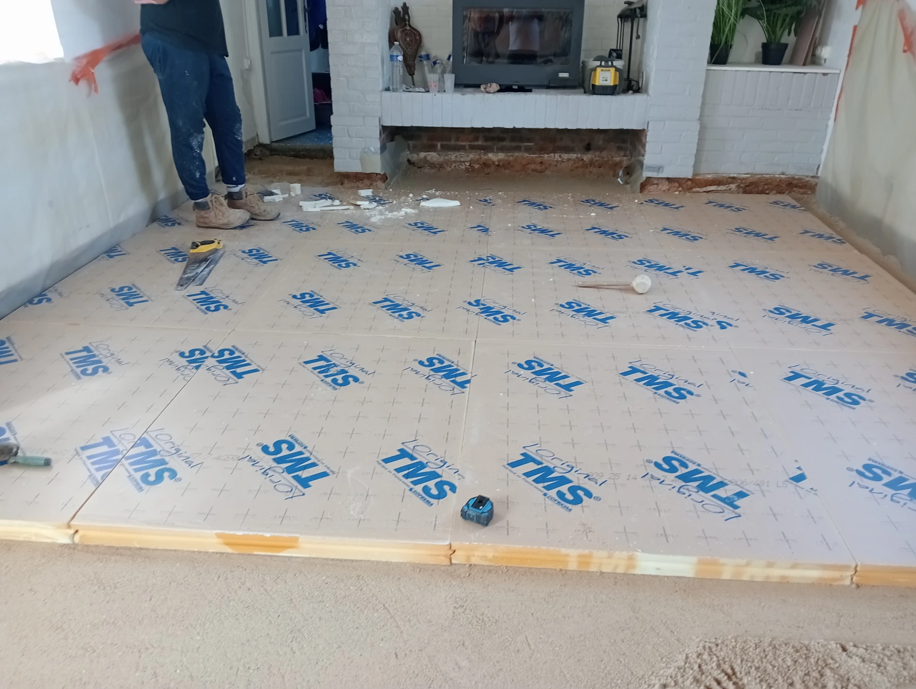 Démontage d'une cheminée et pose de placo isolation et finition