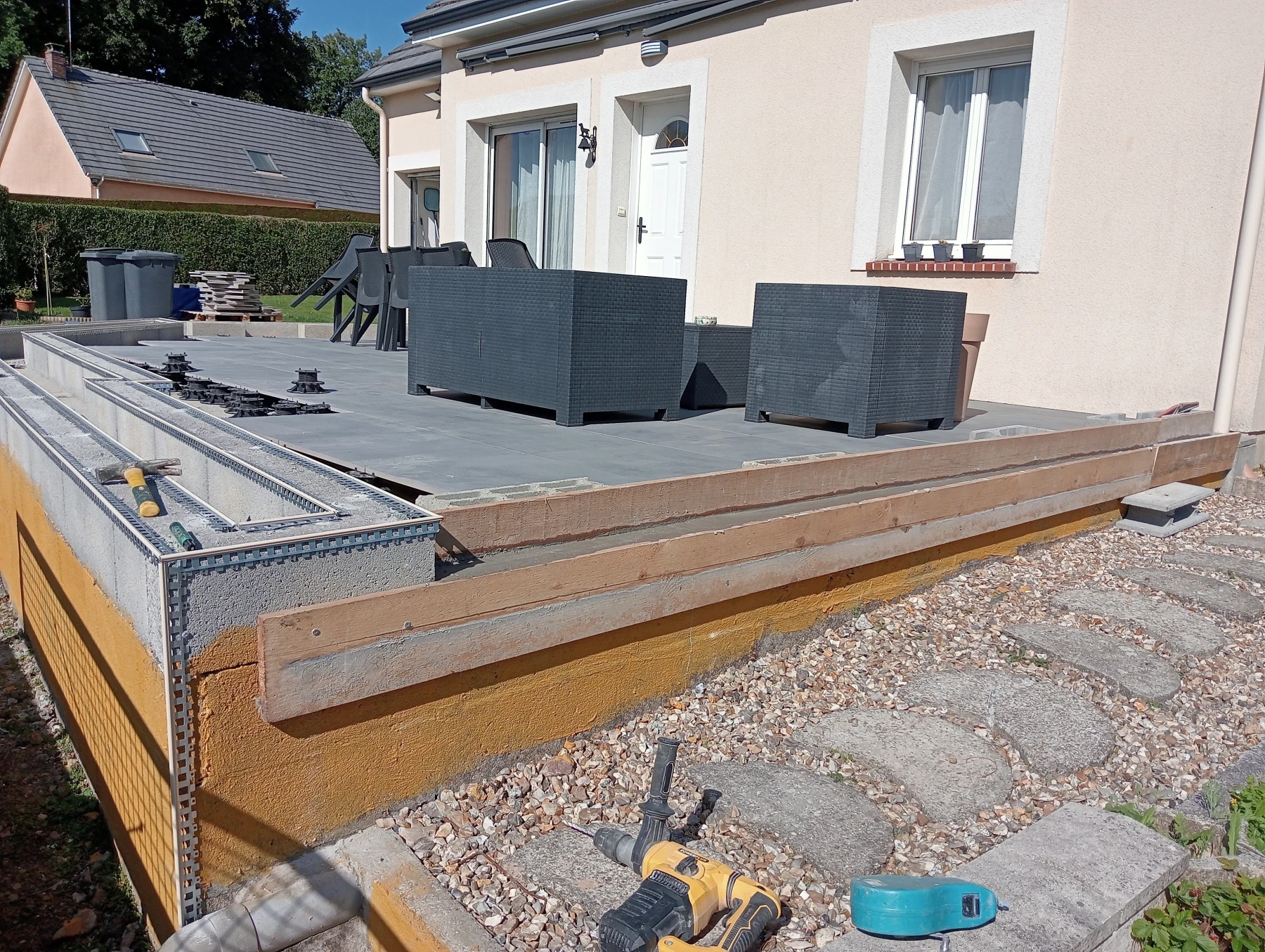 Travaux de prolongement dune terrasse 5*2.50 chantier Limésy