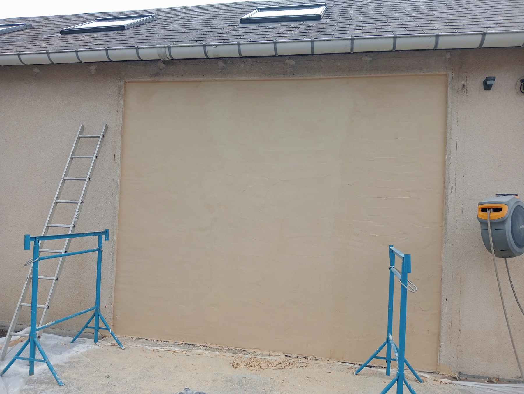 Mise en place d'un accrocheur sur le Siporex avant la mise en place de l'enduit monocouche ton pierre finition gratté